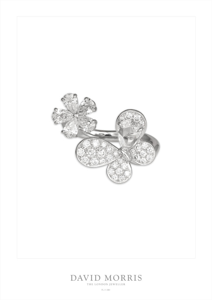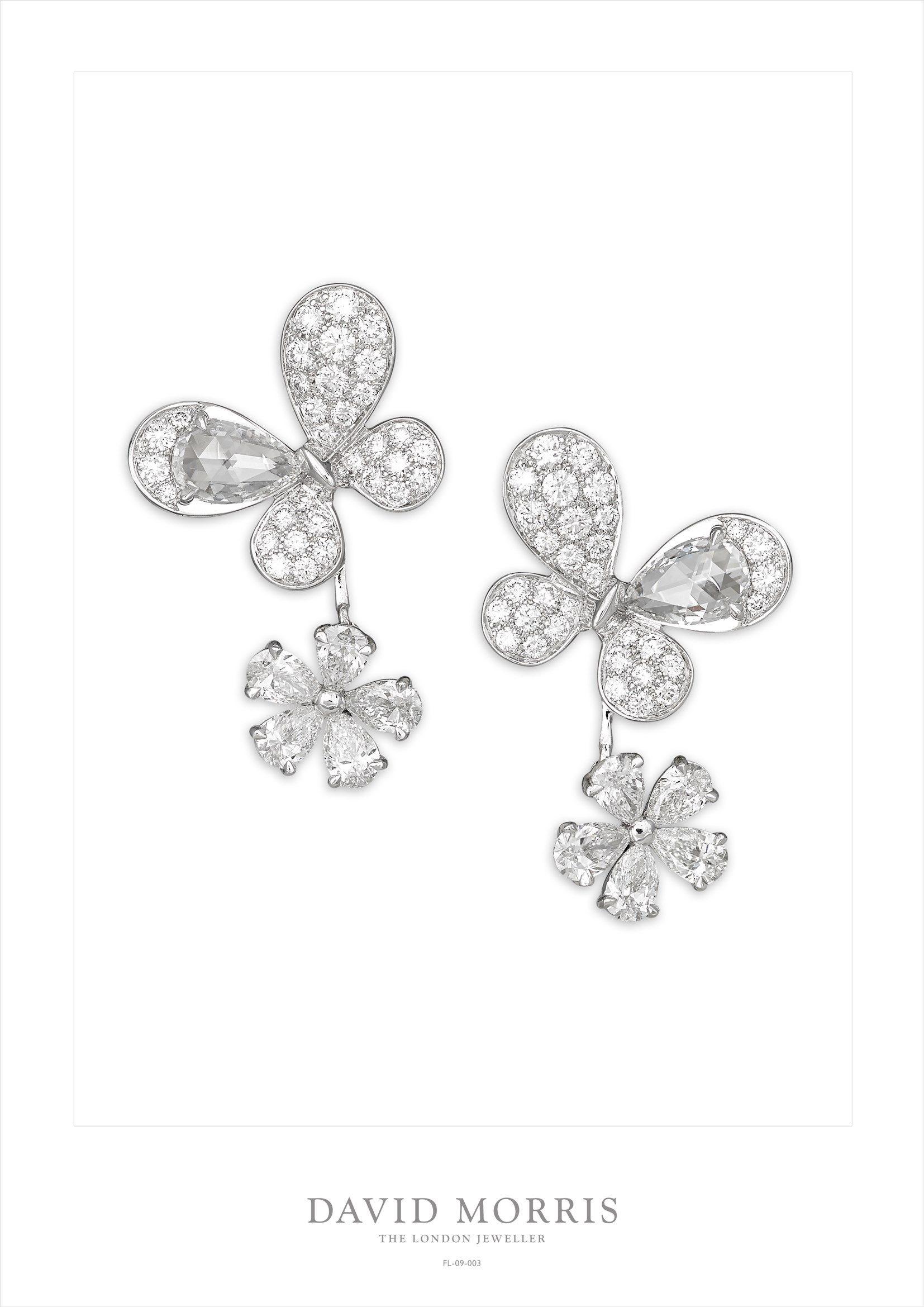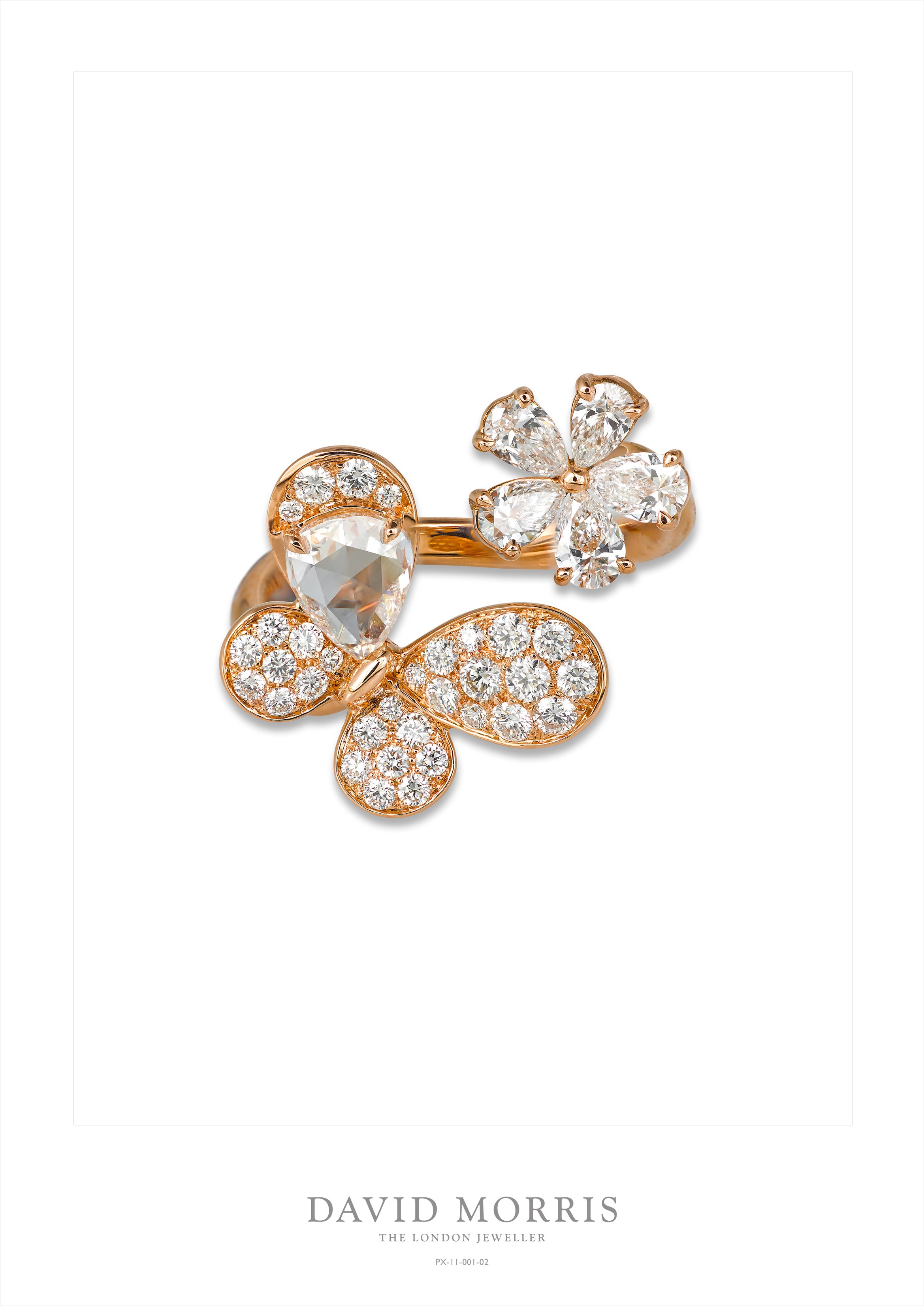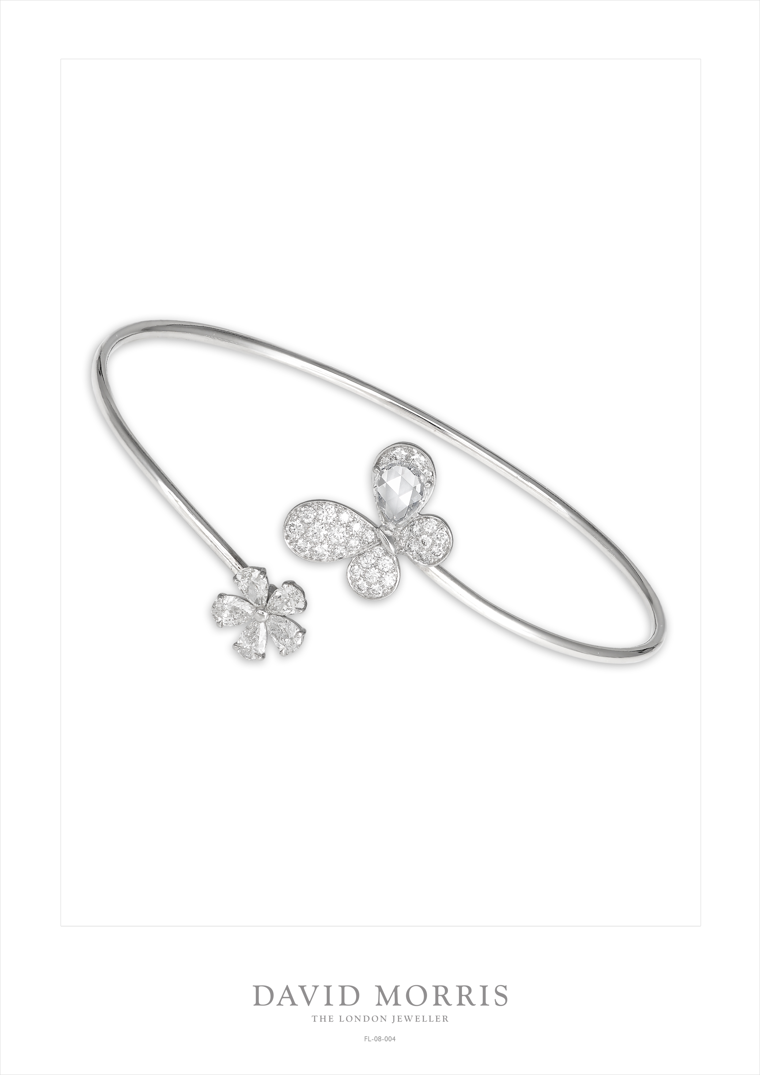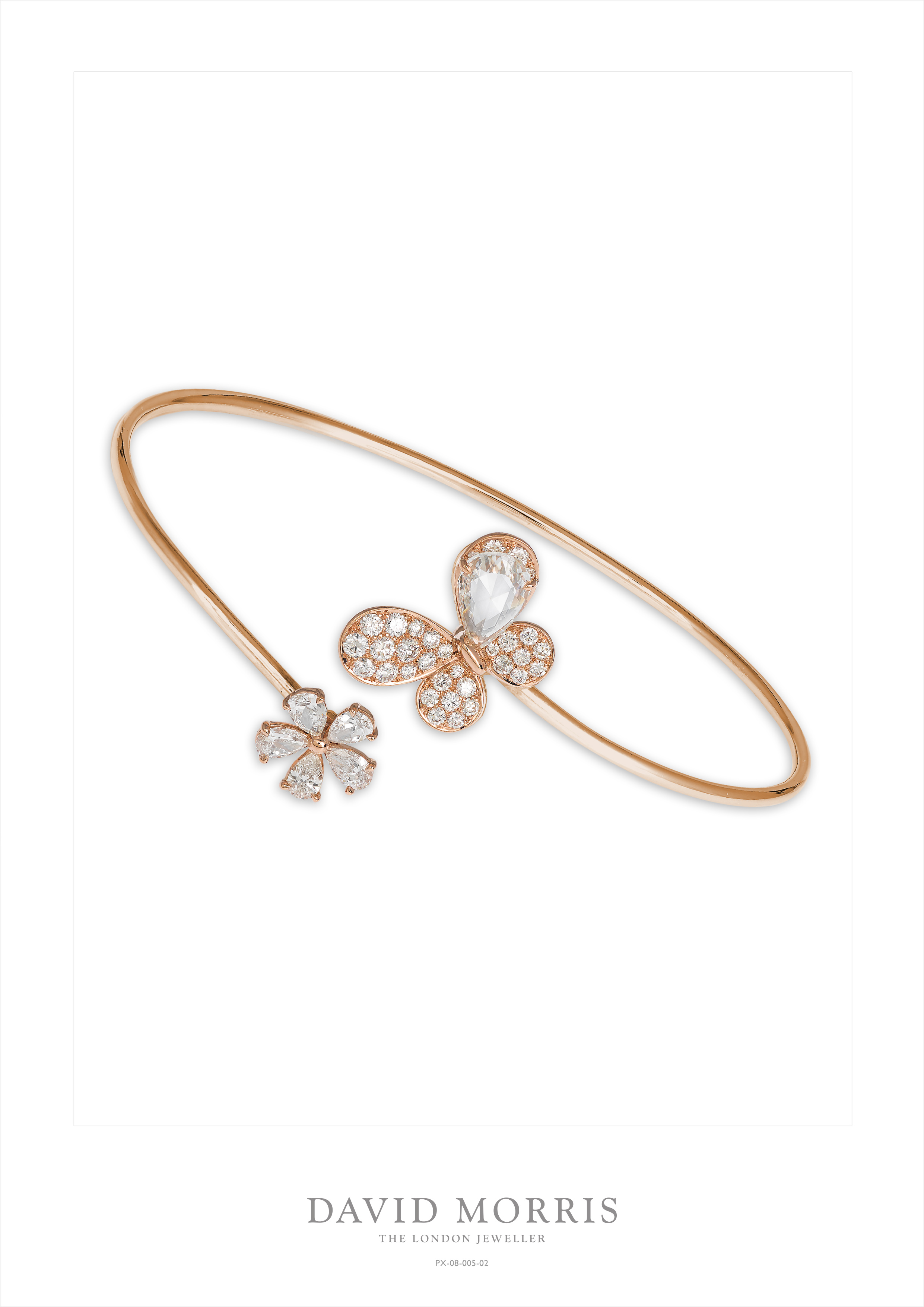 Ainsi, non seulement la collection Pixie sublime-t-elle la forme et les motifs du papillon, mais elle capture aussi son joyeux vire-voltage. Cette vivacité du papillon est l’esprit des quatre pièces de cette collection, qui s’inscrivent très naturellement parmi les créations de David Morris, toujours très féminines et intemporelles.