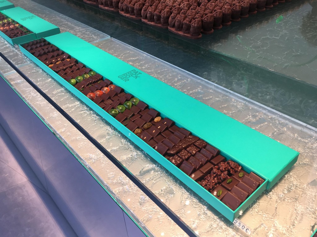 Et pour pousser davantage encore le rituel, nulle possibilité dans ce nouveau temple du chocolat d’acheter ces affolantes miniatures à l’unité et/ou e vrac. Une offre élargie de boîtes et assortiments sont proposés à la vente, compositions choisies et décidées par le Maître des lieux. Ainsi, une fois encore, avec Patrick Roger, il n’y a qu’à ouvrir la boîte… et se laisser faire !