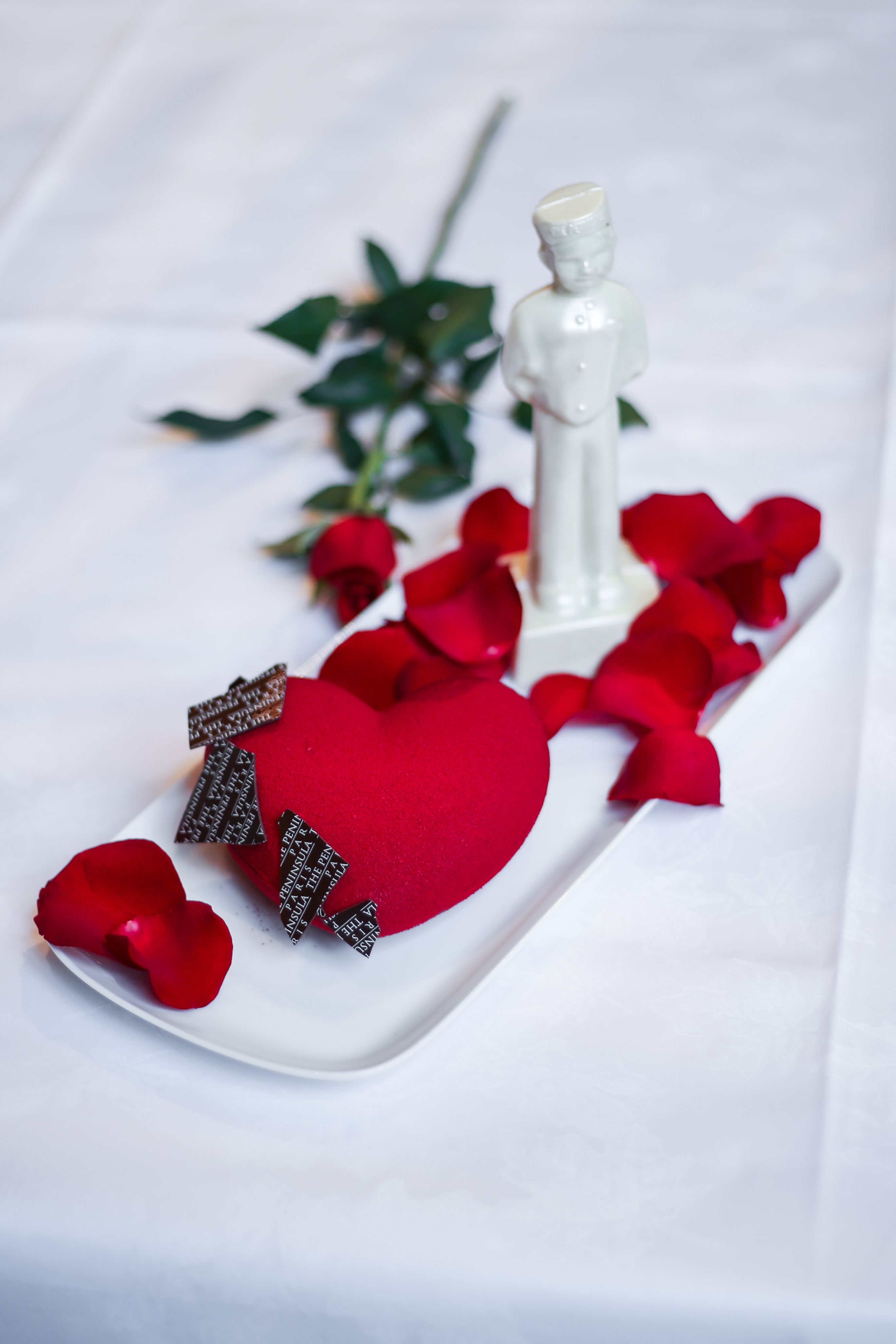 Commander votre création sucrée Saint-Valentin, réalisée par le Chef Pâtissier Dominique Costa, avec un message personnalisé caché à l’intérieur du dessert