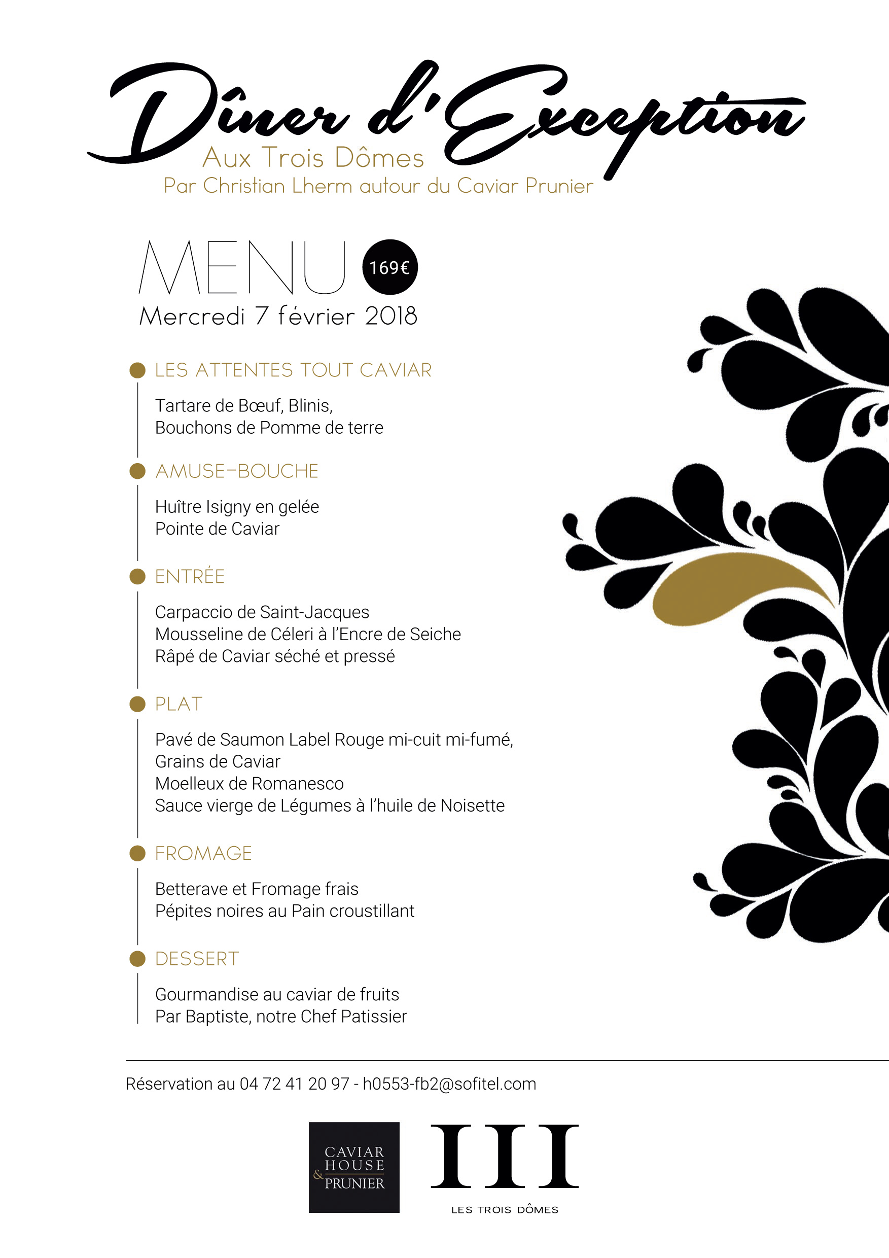 Le premier dîner de la série approche à grands pas ! Christian Lherm aura le plaisir d’accueillir les gastronomes pour un dîner d’exception autour du Caviar le 7 février au restaurant Les Trois Dômes.
