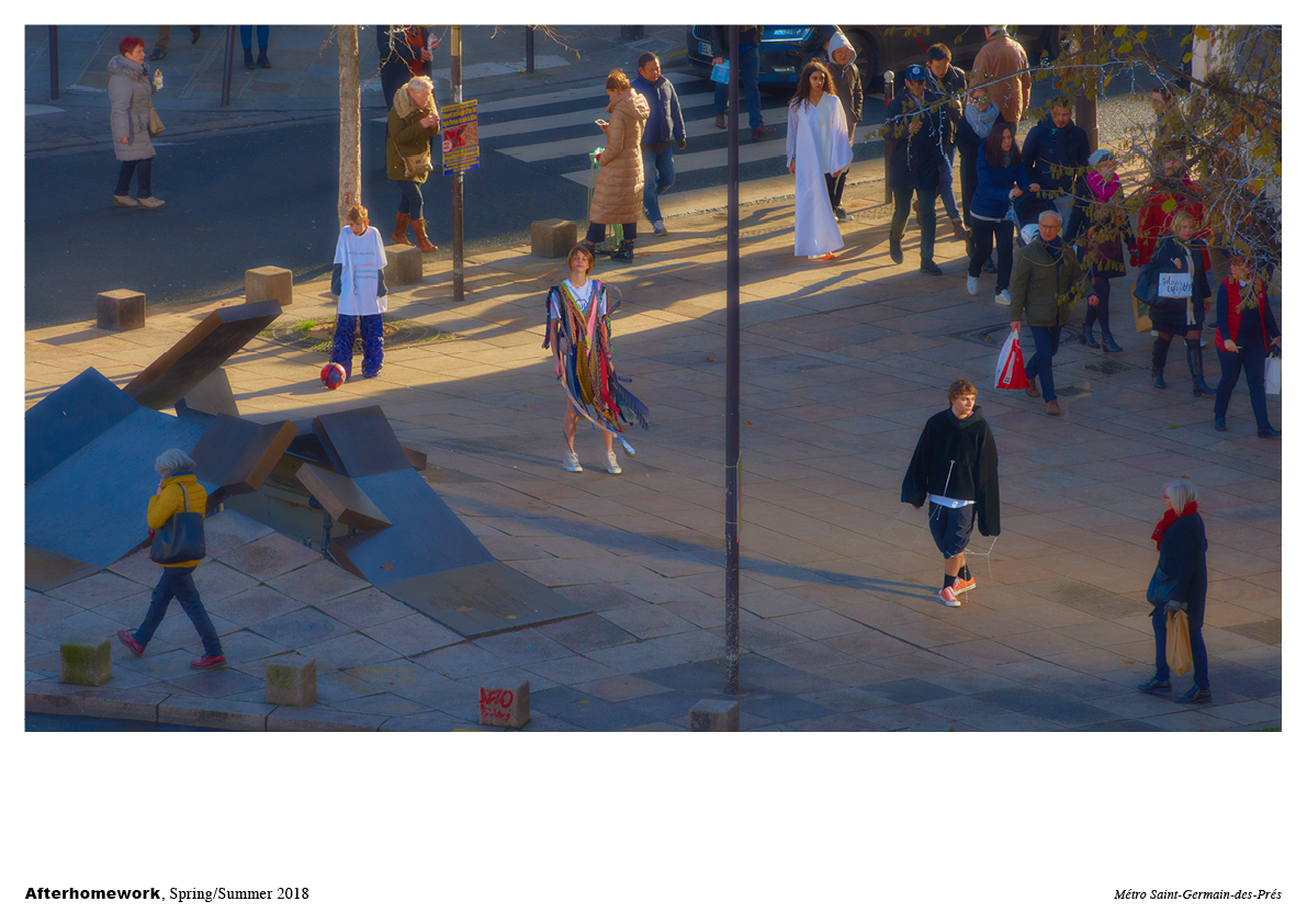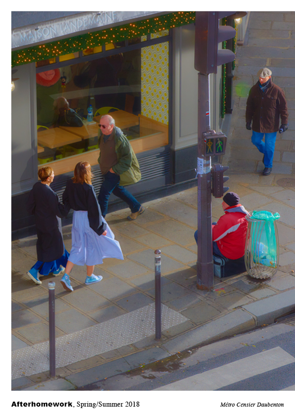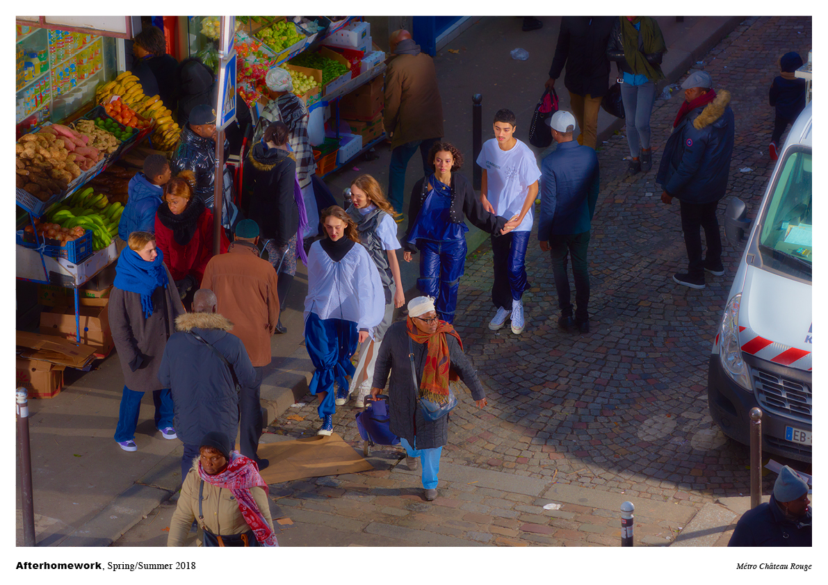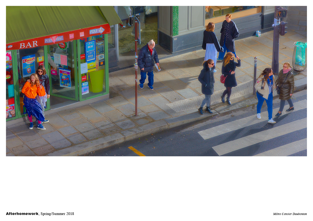 L’idée est née de la volonté d’Afterhomework de confronter ses créations à la réalité de la rue: les visages de la campagne sont un mélanges de modèles et d’amis de la marque, shootés depuis les fenêtres des immeubles qui surplombent les lieux, offrant des plans larges diamétralement opposés aux plans serrées et angles parfaits.