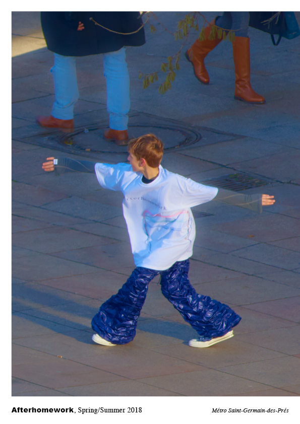 Lancée en 2014 par Pierre Kaczmarek (alors âgé de 15 ans), Afterhomework devient rapidement un duo créatif avec l’arrivée d’Elena Mottola. Depuis son premier défilé à la Fashion Week de Paris en 2016, Afterhomework continue d’intriguer avec ses créations déstructurées. Photos de Boris Camaca