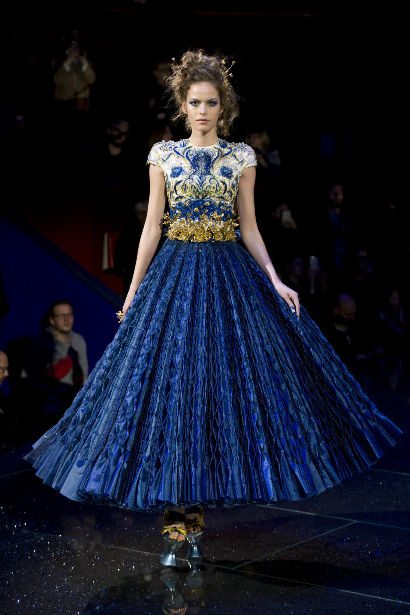 Bleu, blanc, et or sont les principales tonalités de cette collection. Le défilé mystérieux et romantique commence avec le bleu, comme un océan profond ou un ciel étoilé. Puis vient l’or, comme le soleil levant dissipe les brumes matinales, comme l’étoile filante fend le ciel de la nuit, La couleur de l’or est chaleureuse et enveloppante, elle illustre la source de joie infinie d’Elysium. Enfin, le blanc incarne l’âme. Il évoque la pureté absolue, la beauté parfaite. L’âme en liberté s’invite dans toute la collection.