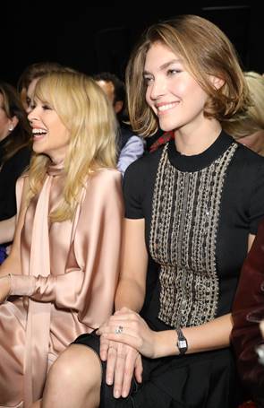 Natalia Vodionova, Olivia Palermo and Arizona Muse sit front row alongside Hollywood star, Kylie Minogue, at the Ralph & Russo Spring/Summer 2018 Couture show at the Grand Palais this evening in Paris.