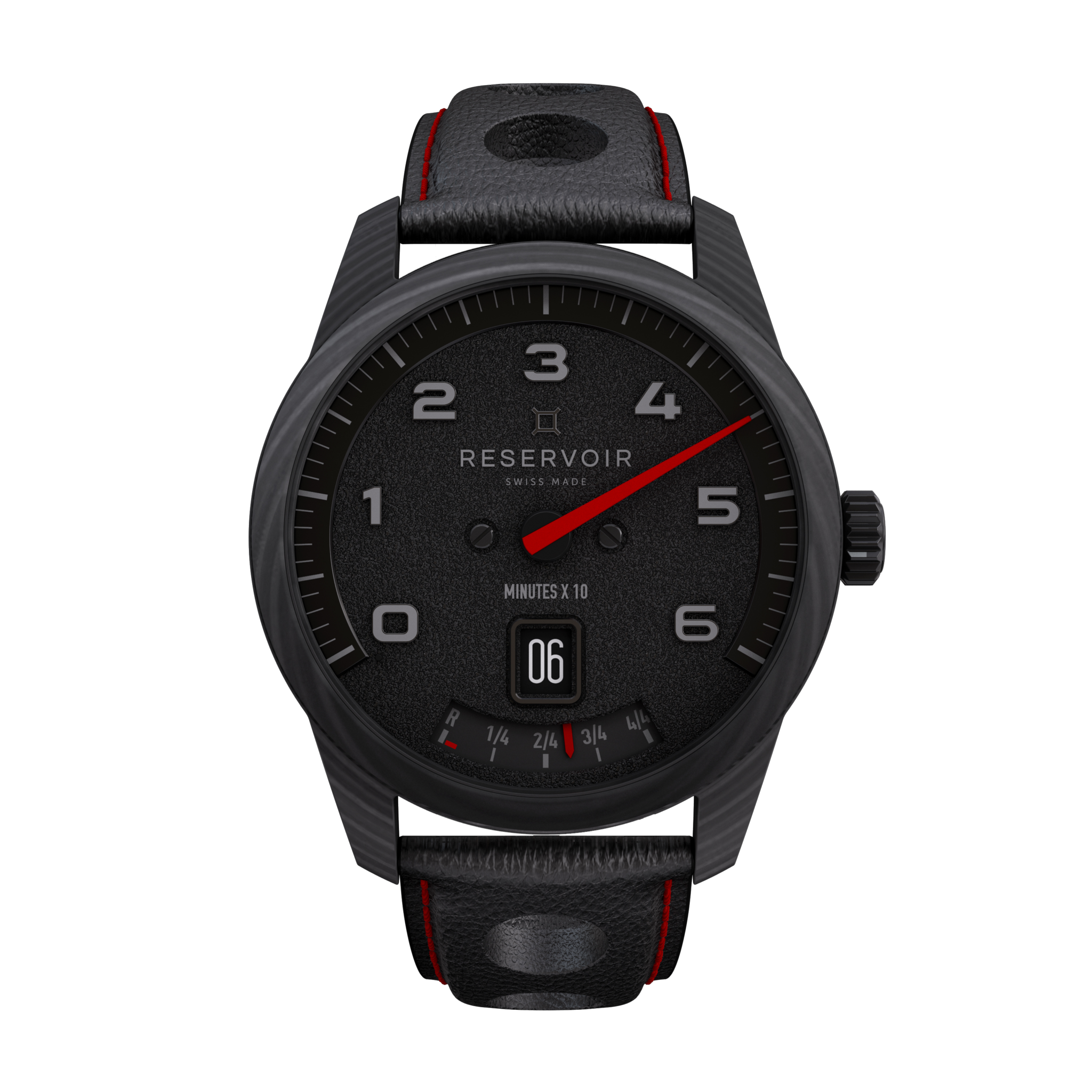 Ainsi, le cadran noir mat, l’aiguille rouge et les index gris reproduisent l’effet de contraste