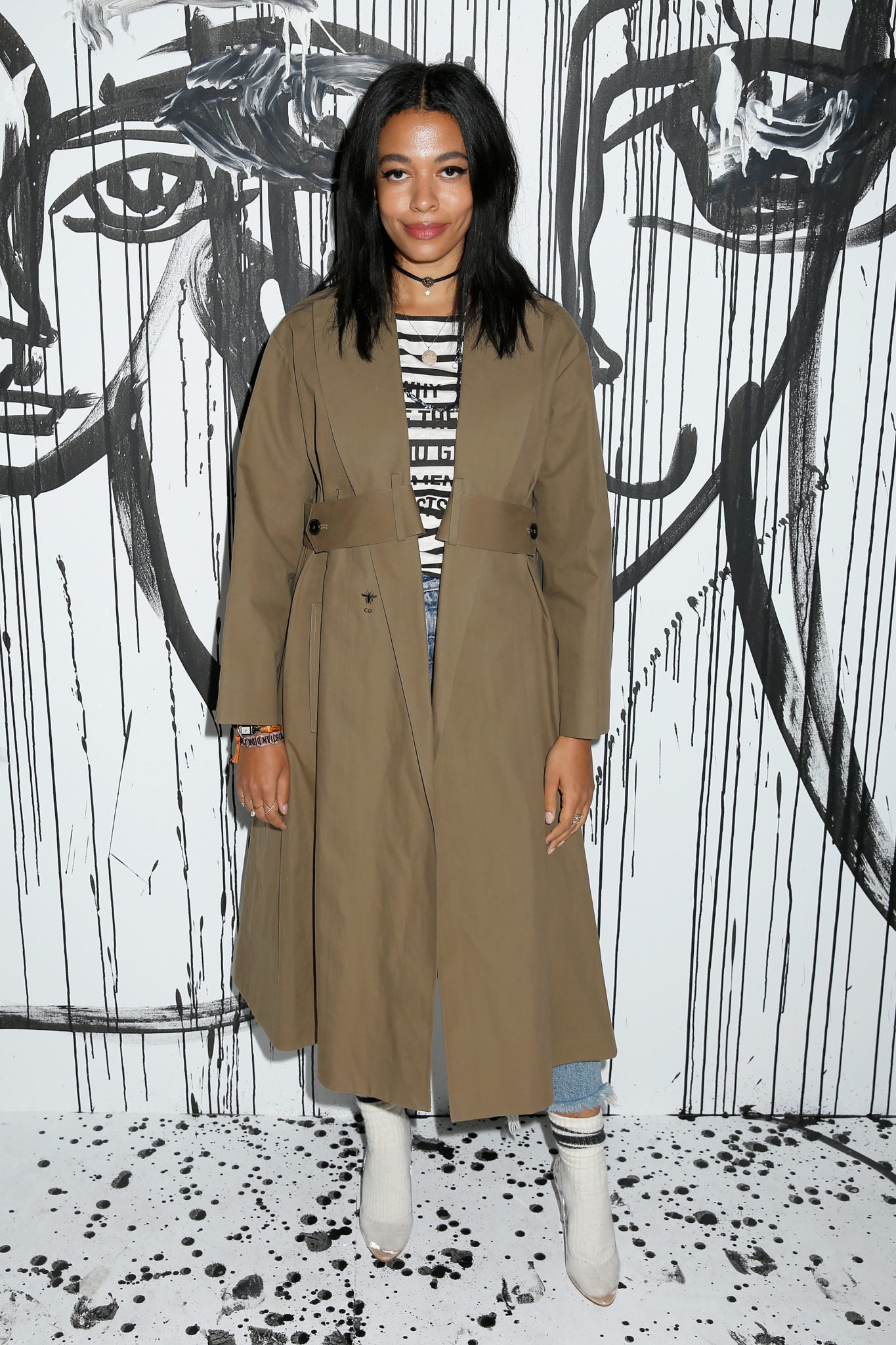 - Ellen Rosa portait un trench-coat en coton beige Dior. Elle portait également des bottines Dior.