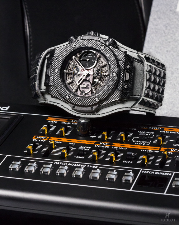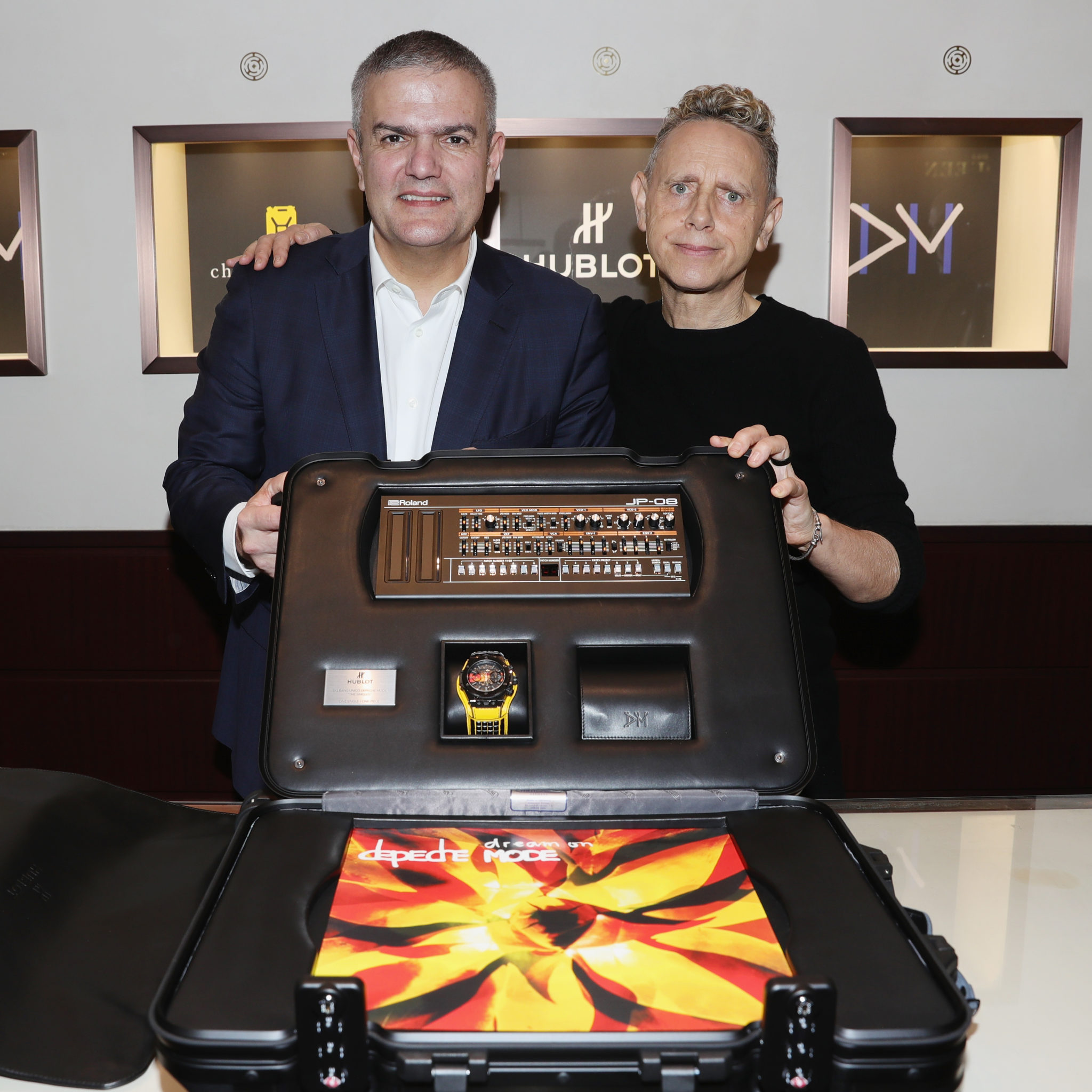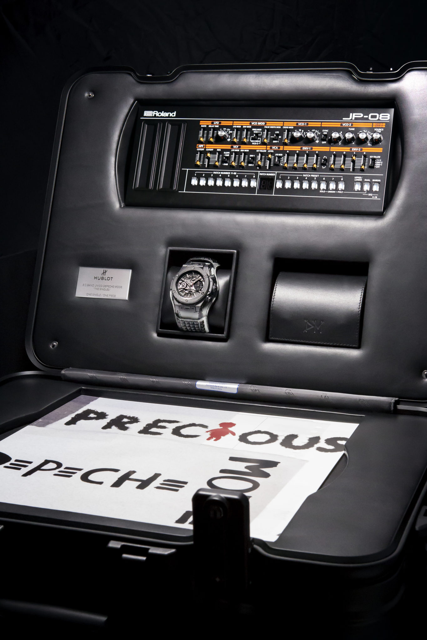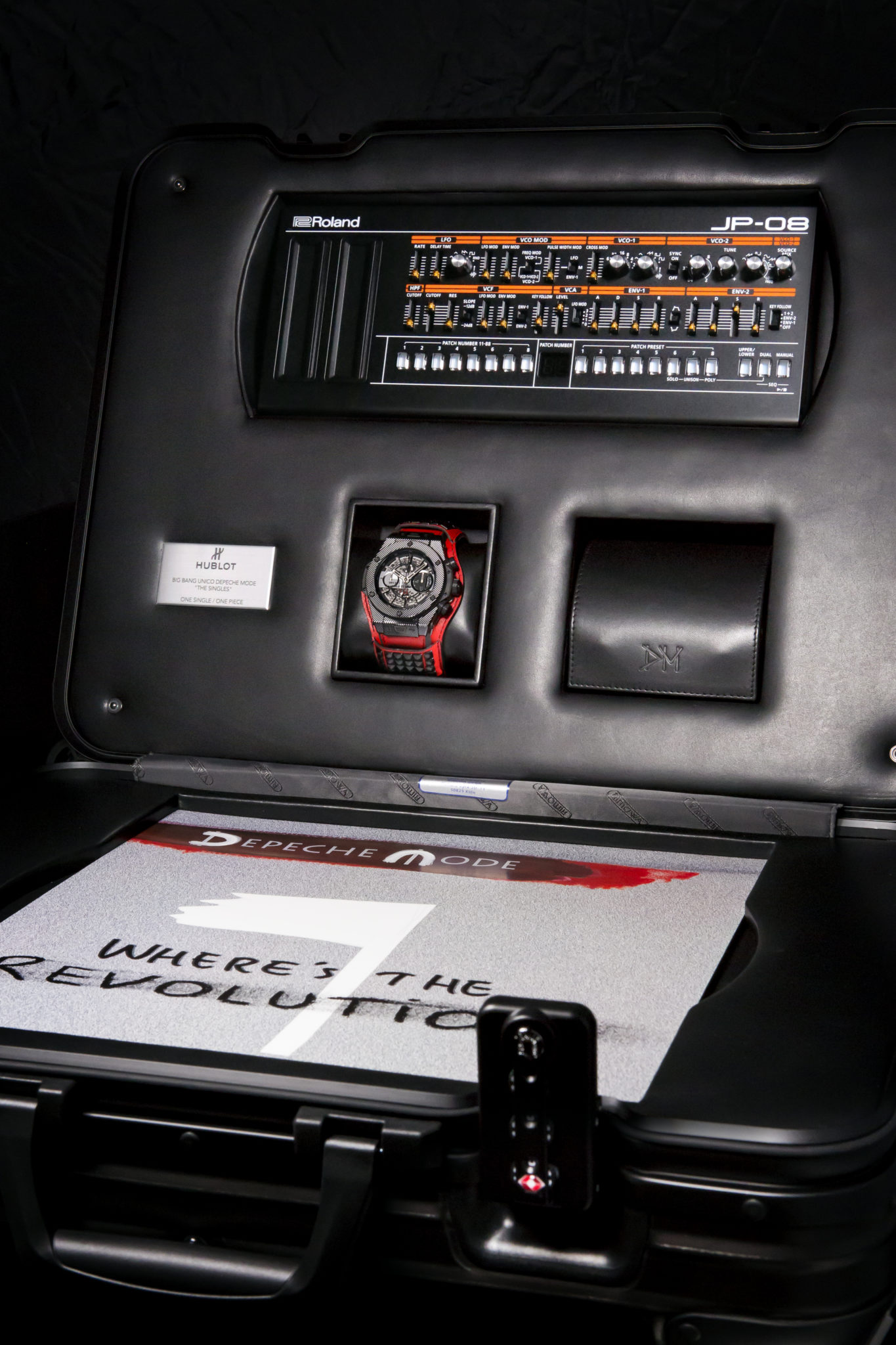 Dernier détail rendant la collection Big Bang Depeche Mode « The Singles » Limited Edition encore plus exclusive : chaque pièce unique sera accompagnée d’un synthétiseur Roland JP- 08, une édition limitée rendant hommage en recréant les sons du légendaire modèle Jupiter 8 utilisé par Depeche Mode au fil des ans. Le fabricant légendaire de bagages RIMOWA a créé une valise Topas Stealth de taille cabine en aluminium anodisé noir afin de servir d’écrin et transporter chaque montre Hublot Big Bang Depeche Mode « The Singles », avec le synthétiseur Roland JP-08, le disque vinyle correspondant et le certificat d’authenticité signé par le groupe. Le kit rock star est donc complet !