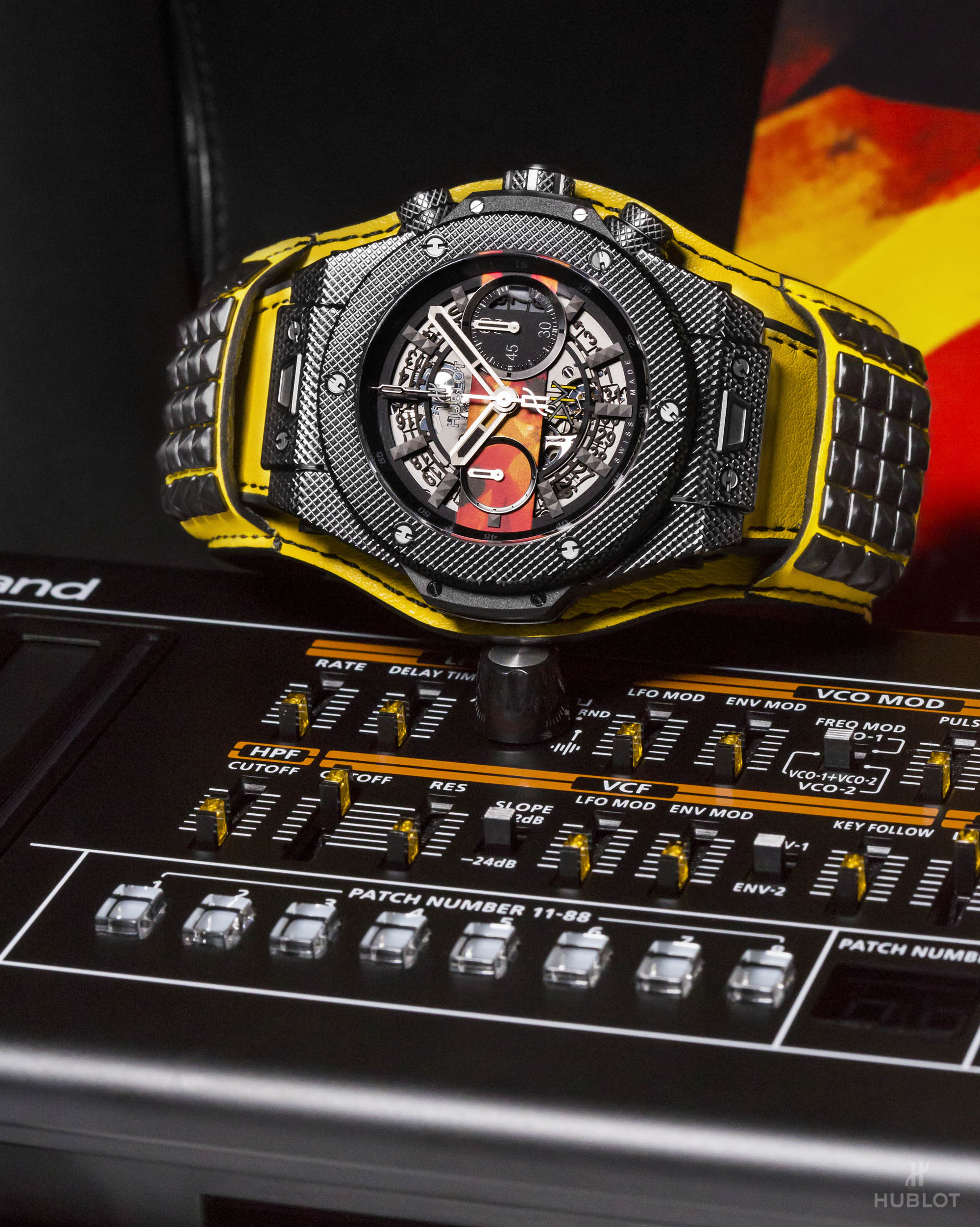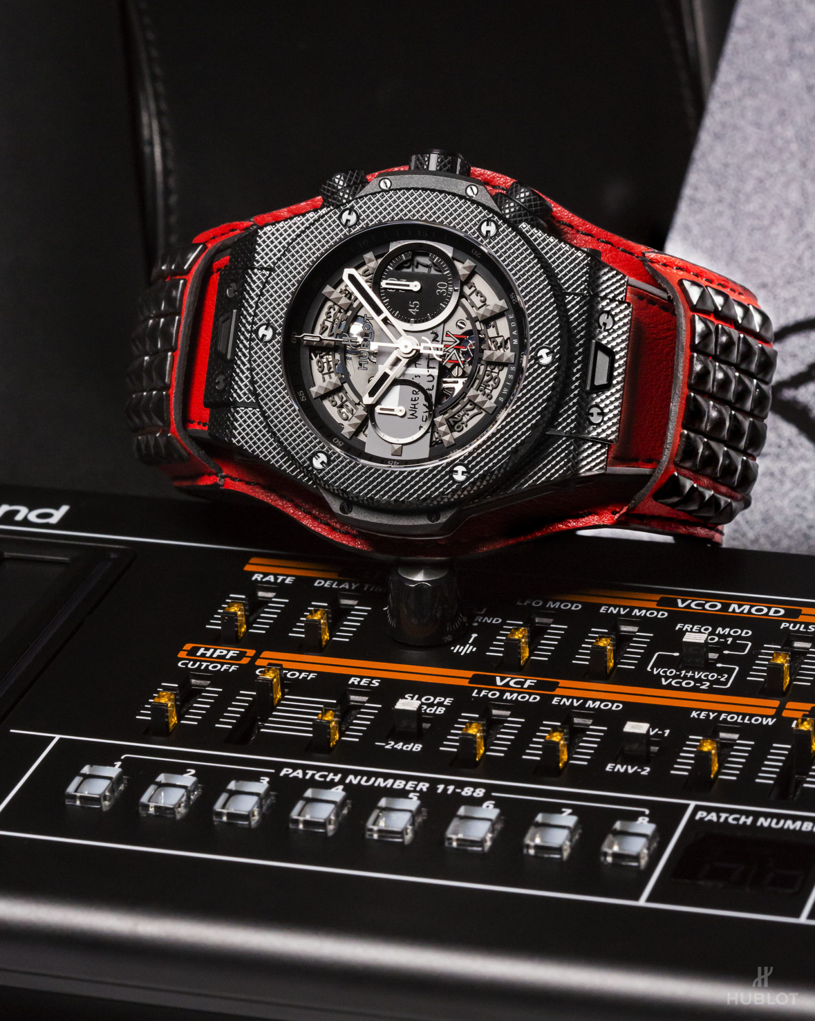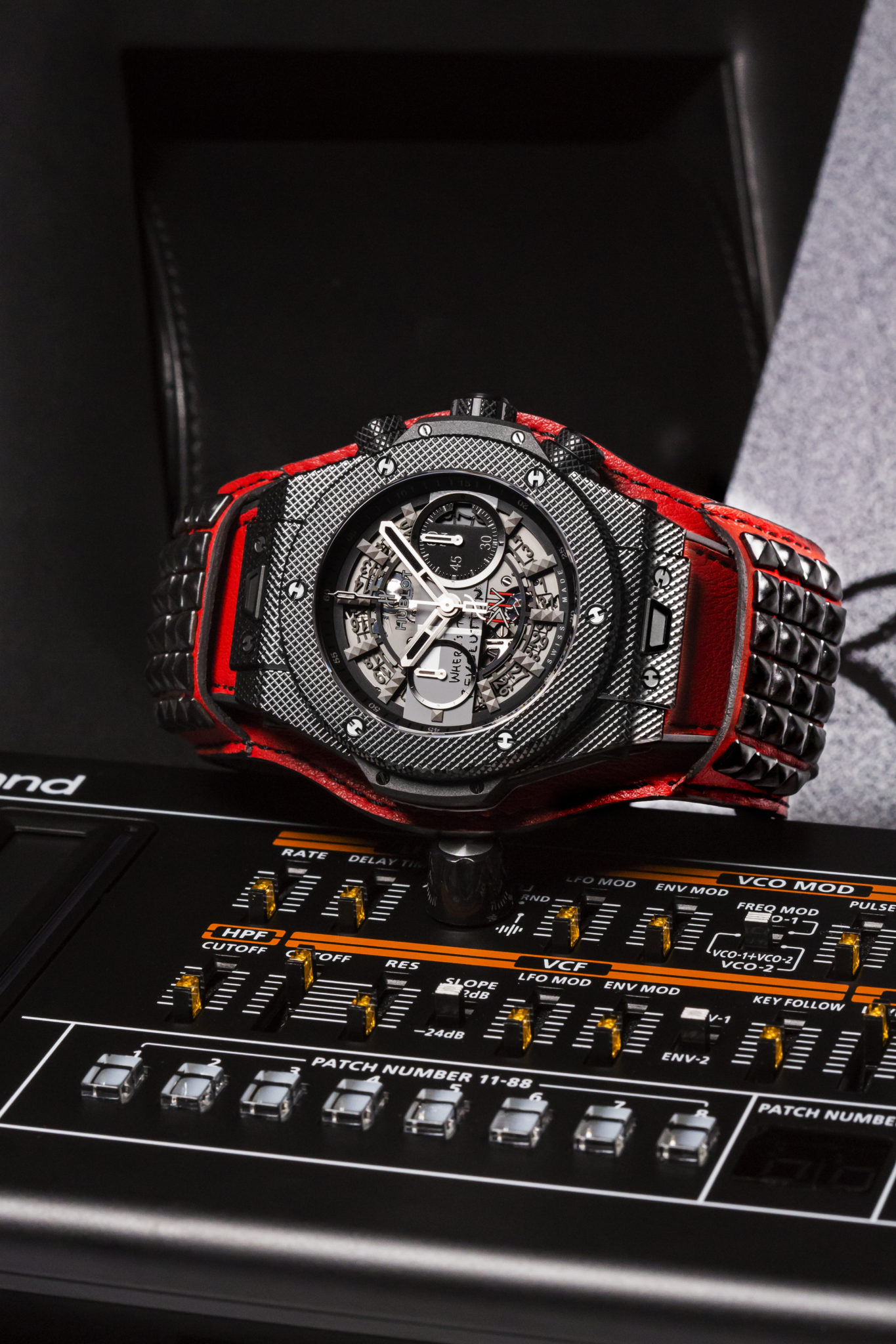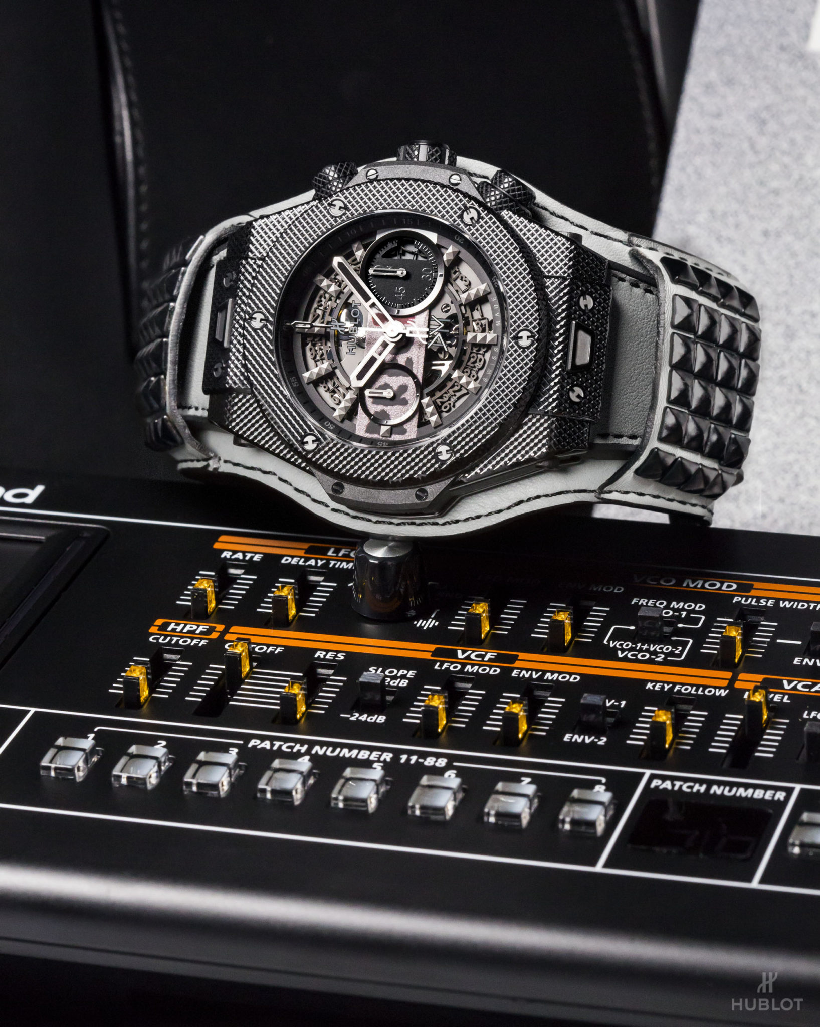 Dernier détail rendant la collection Big Bang Depeche Mode « The Singles » Limited Edition encore plus exclusive : chaque pièce unique sera accompagnée d’un synthétiseur Roland JP- 08, une édition limitée rendant hommage en recréant les sons du légendaire modèle Jupiter 8 utilisé par Depeche Mode au fil des ans. Le fabricant légendaire de bagages RIMOWA a créé une valise Topas Stealth de taille cabine en aluminium anodisé noir afin de servir d’écrin et transporter chaque montre Hublot Big Bang Depeche Mode « The Singles », avec le synthétiseur Roland JP-08, le disque vinyle correspondant et le certificat d’authenticité signé par le groupe. Le kit rock star est donc complet !