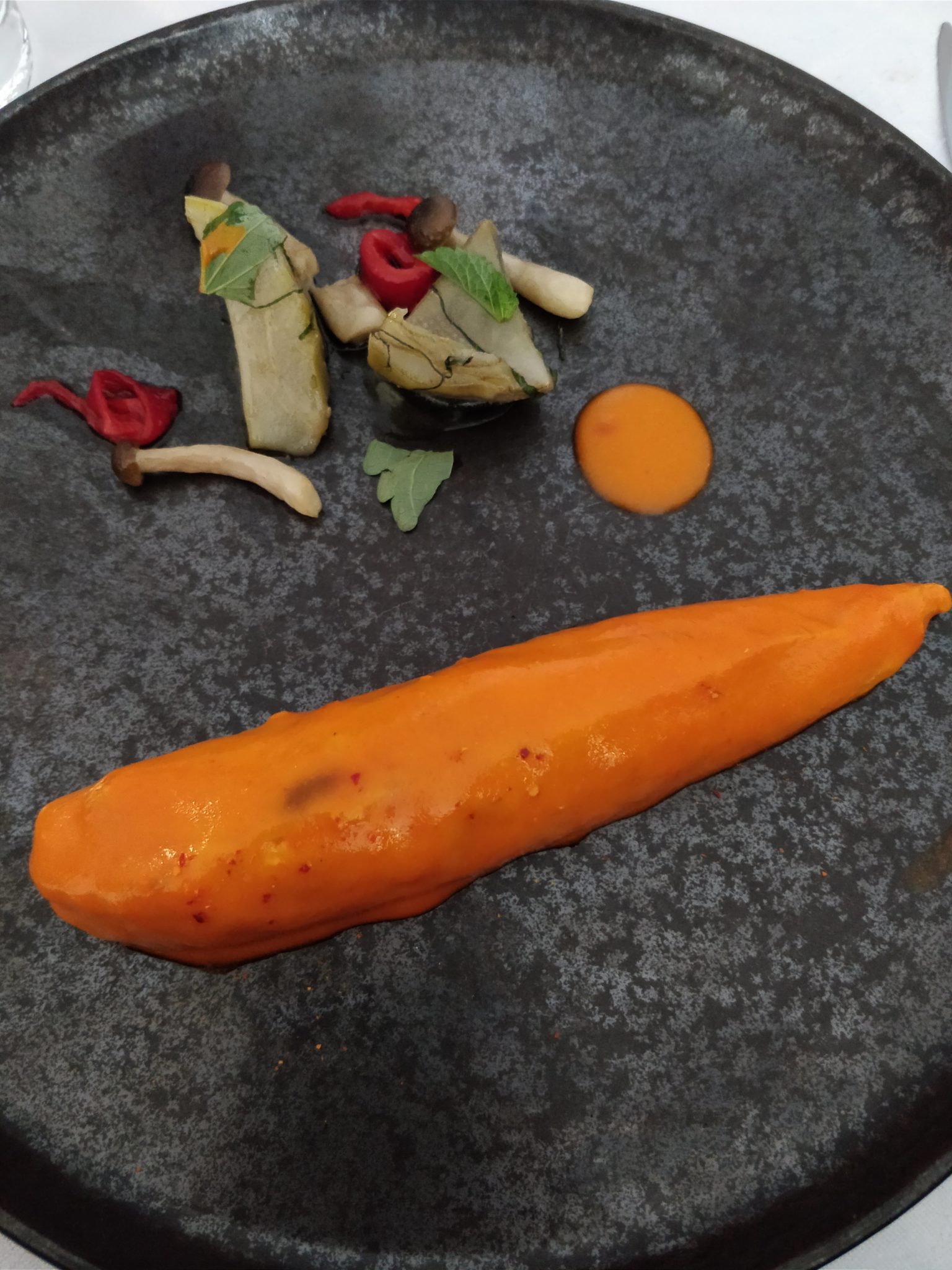 Albufera Roulé et poché tendrement, paprika précieux et artichaut confit à la verveine