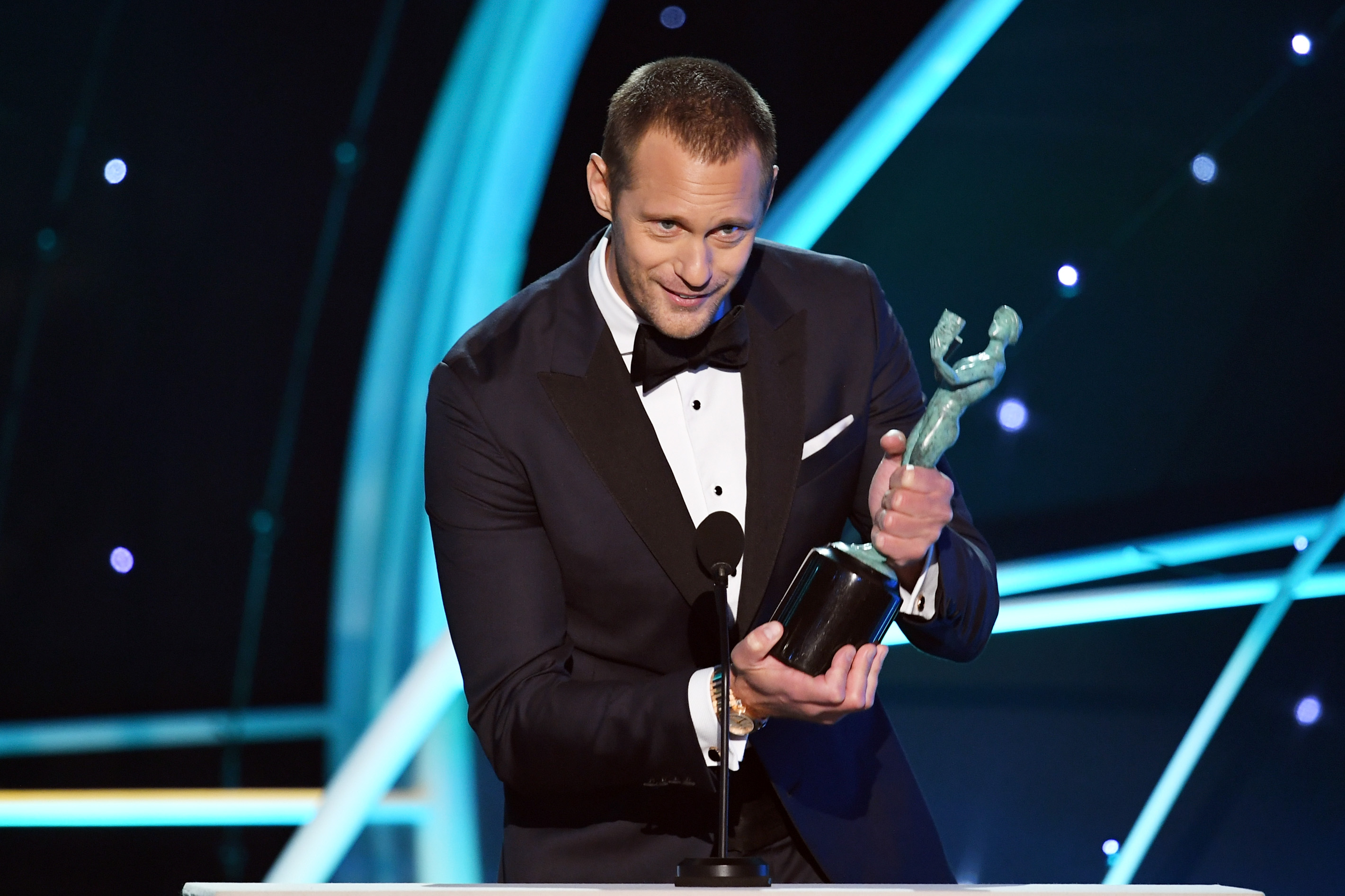 LOS ANGELES, CA – JANUARY 21: Actor Alexander Skarsgard accepts the Outstanding Performance by a Male Actor in a Television Movie or Limited Series award for ‘Big Little Lies’ onstage during the 24th Annual Screen Actors Guild Awards at The Shrine Auditorium on January 21, 2018 in Los Angeles, California. 27522_013 (Photo by Kevin Winter/Getty Images)