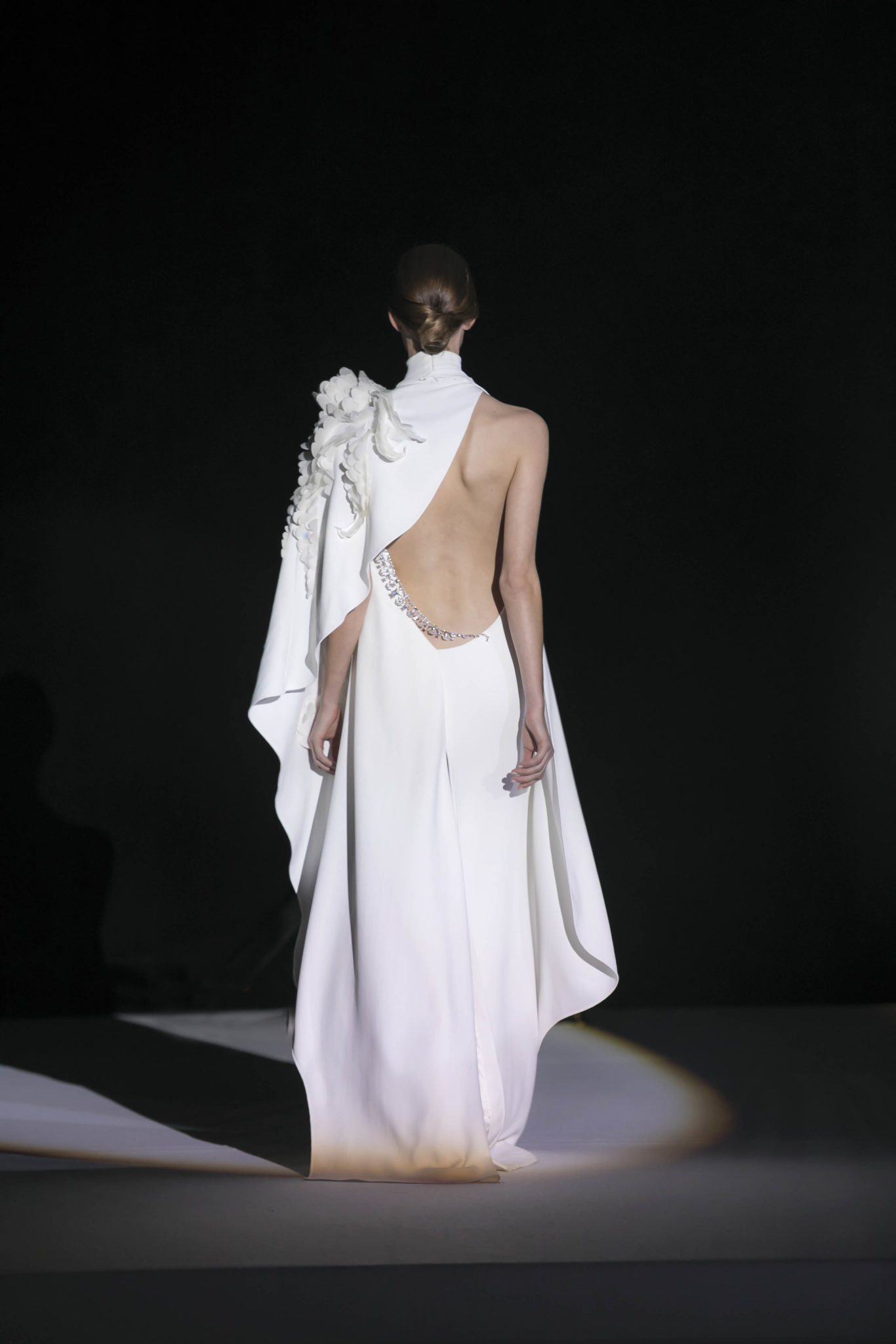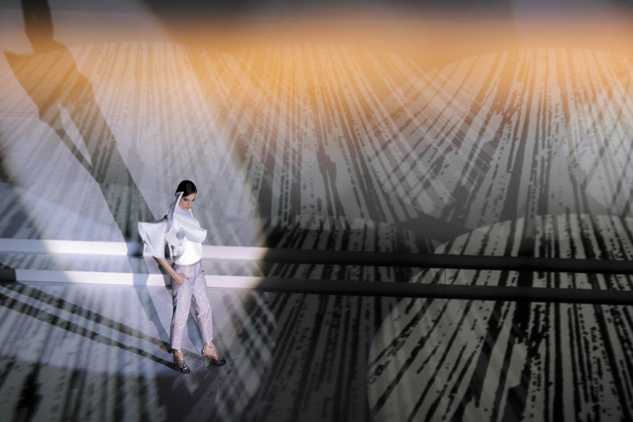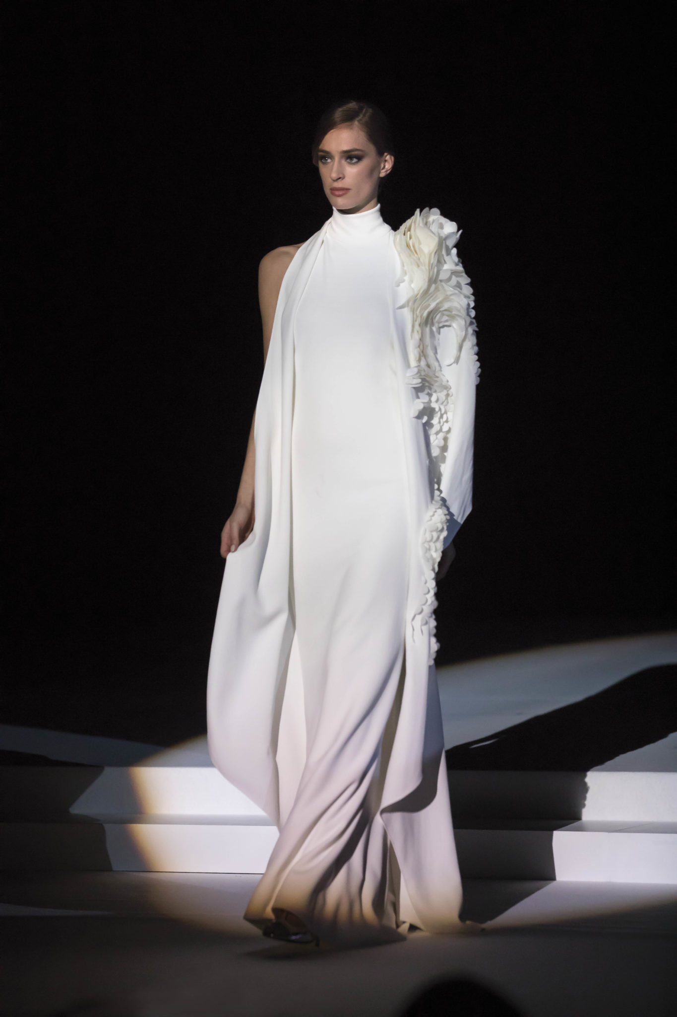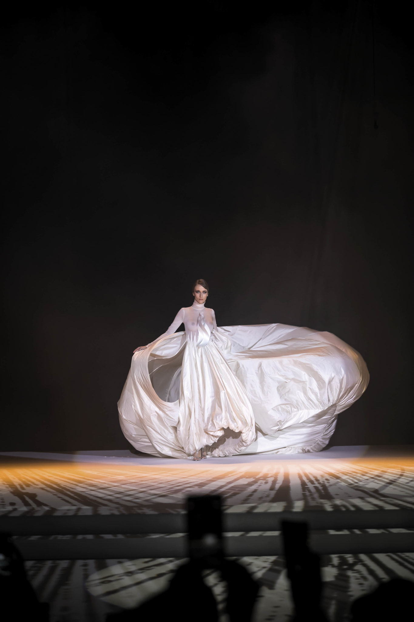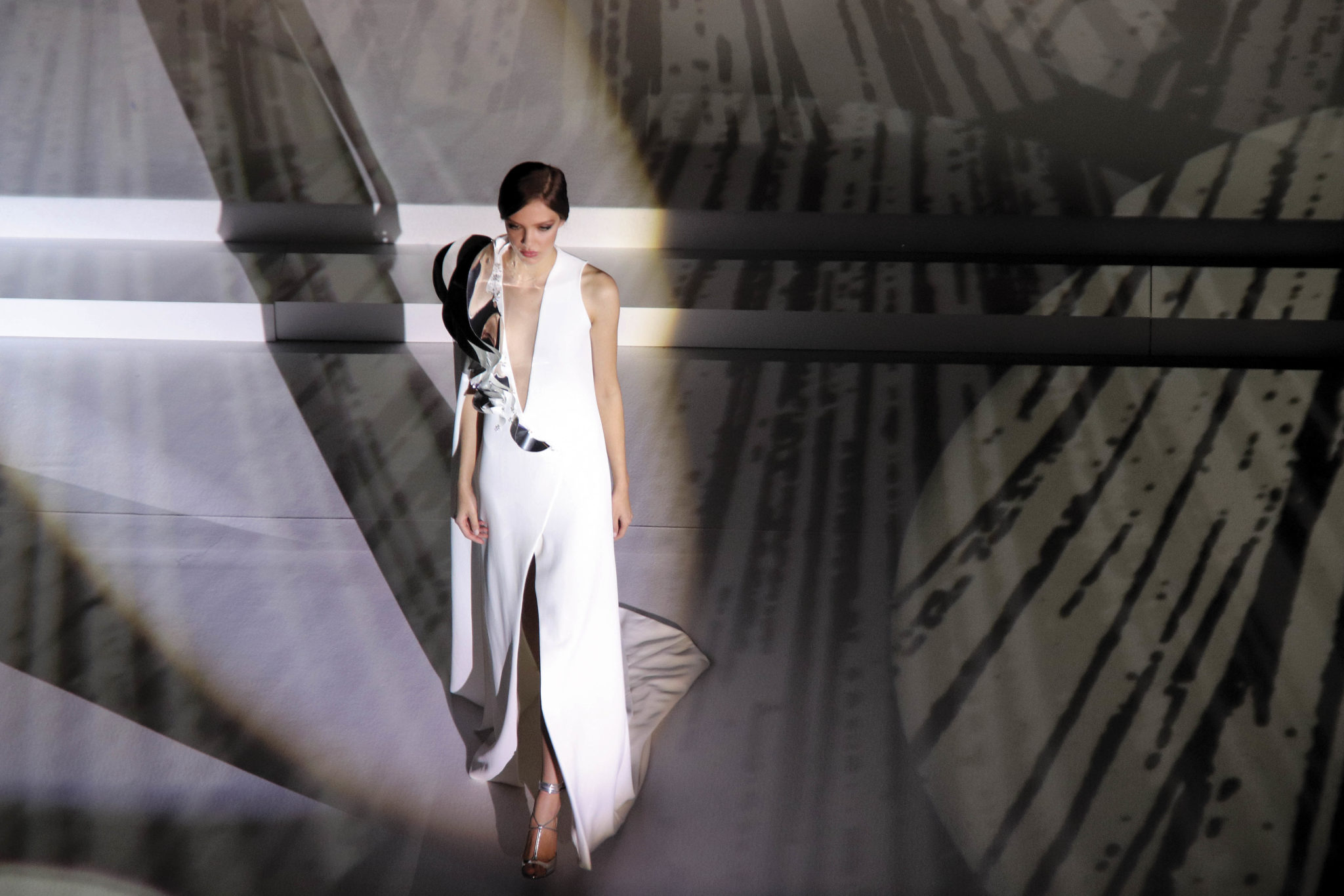 Si l’architecture est un des poles majeurs dans son processus de création, Stéphane Rolland annonce cette saison une allure adoucie, aérienne et lumineuse