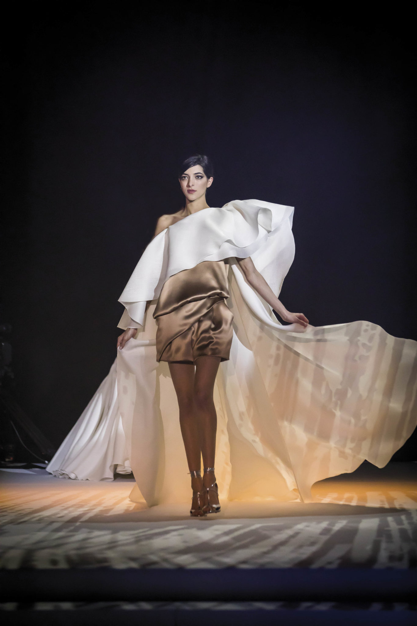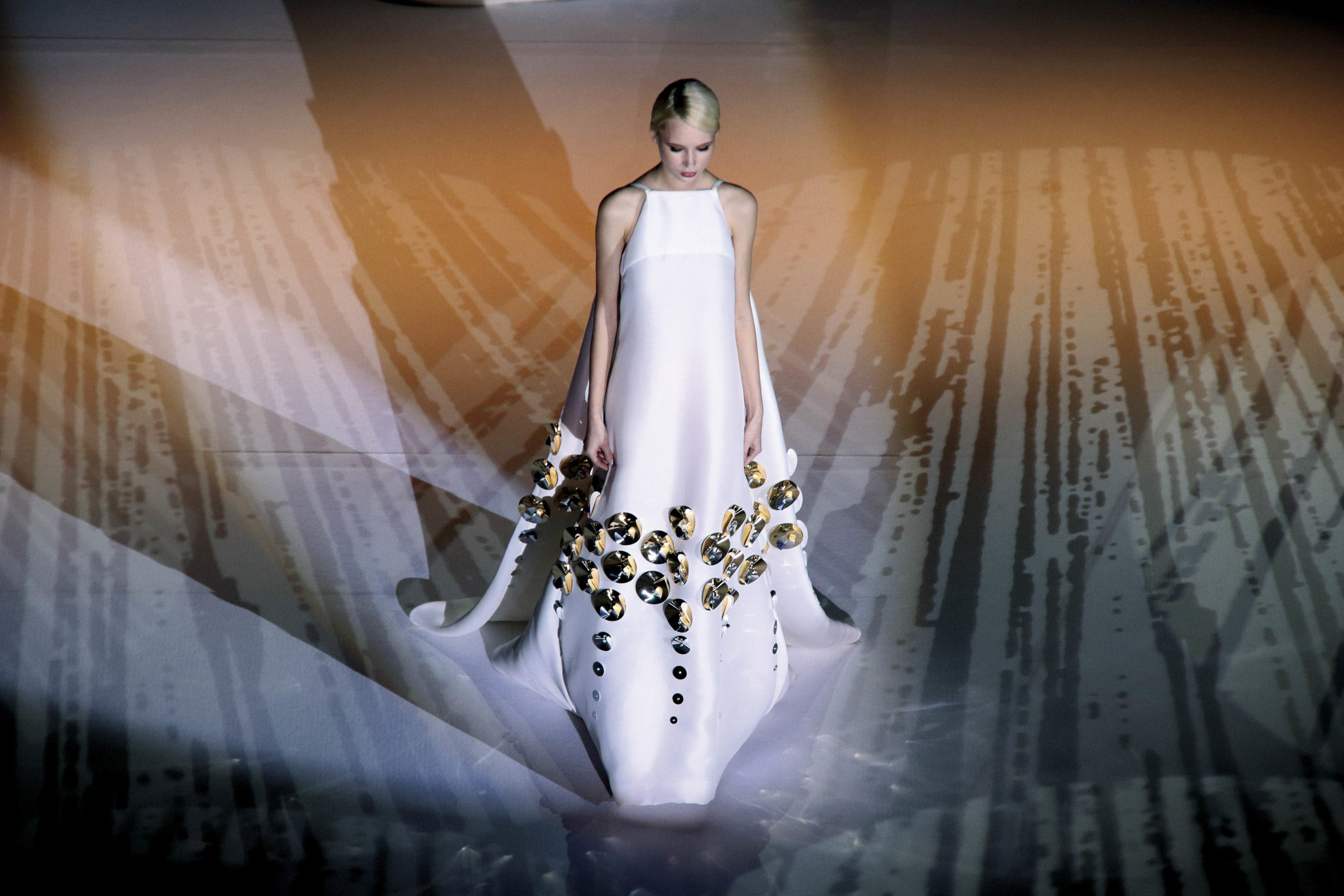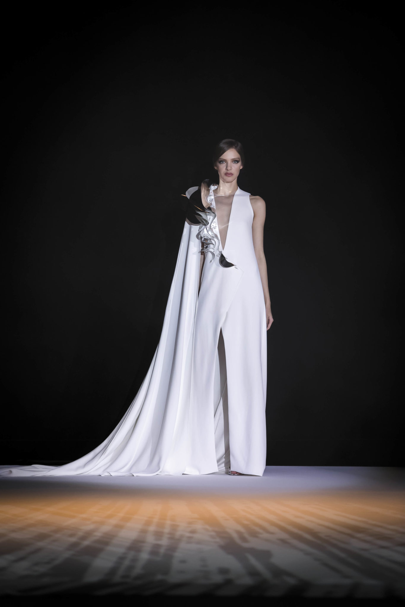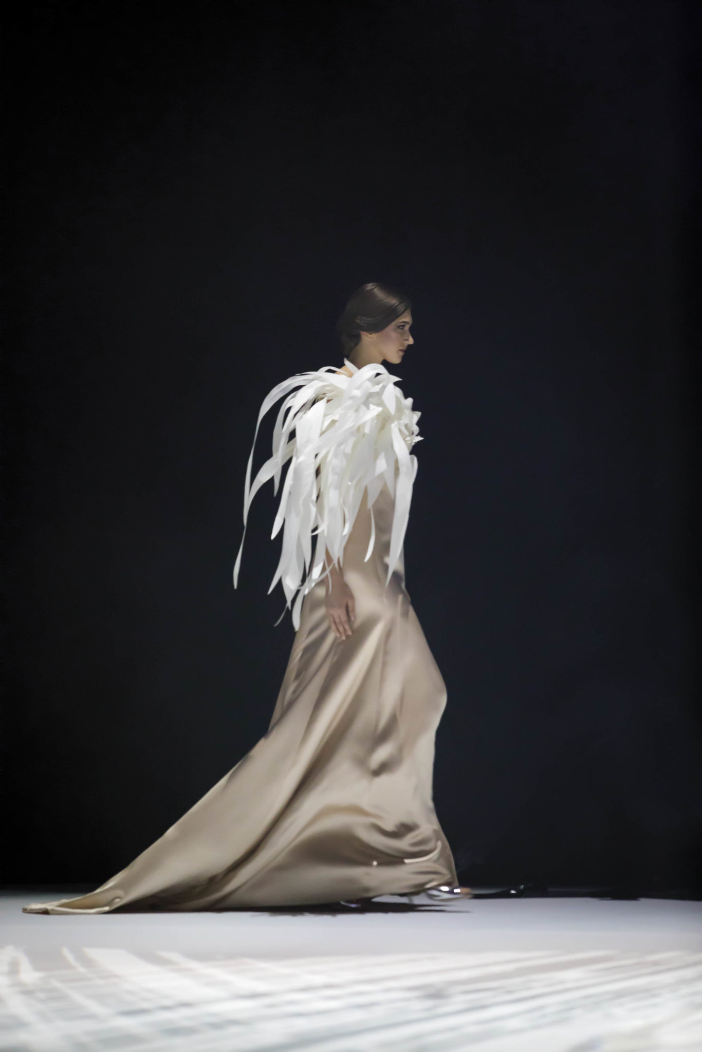 Si l’architecture est un des poles majeurs dans son processus de création, Stéphane Rolland annonce cette saison une allure adoucie, aérienne et lumineuse