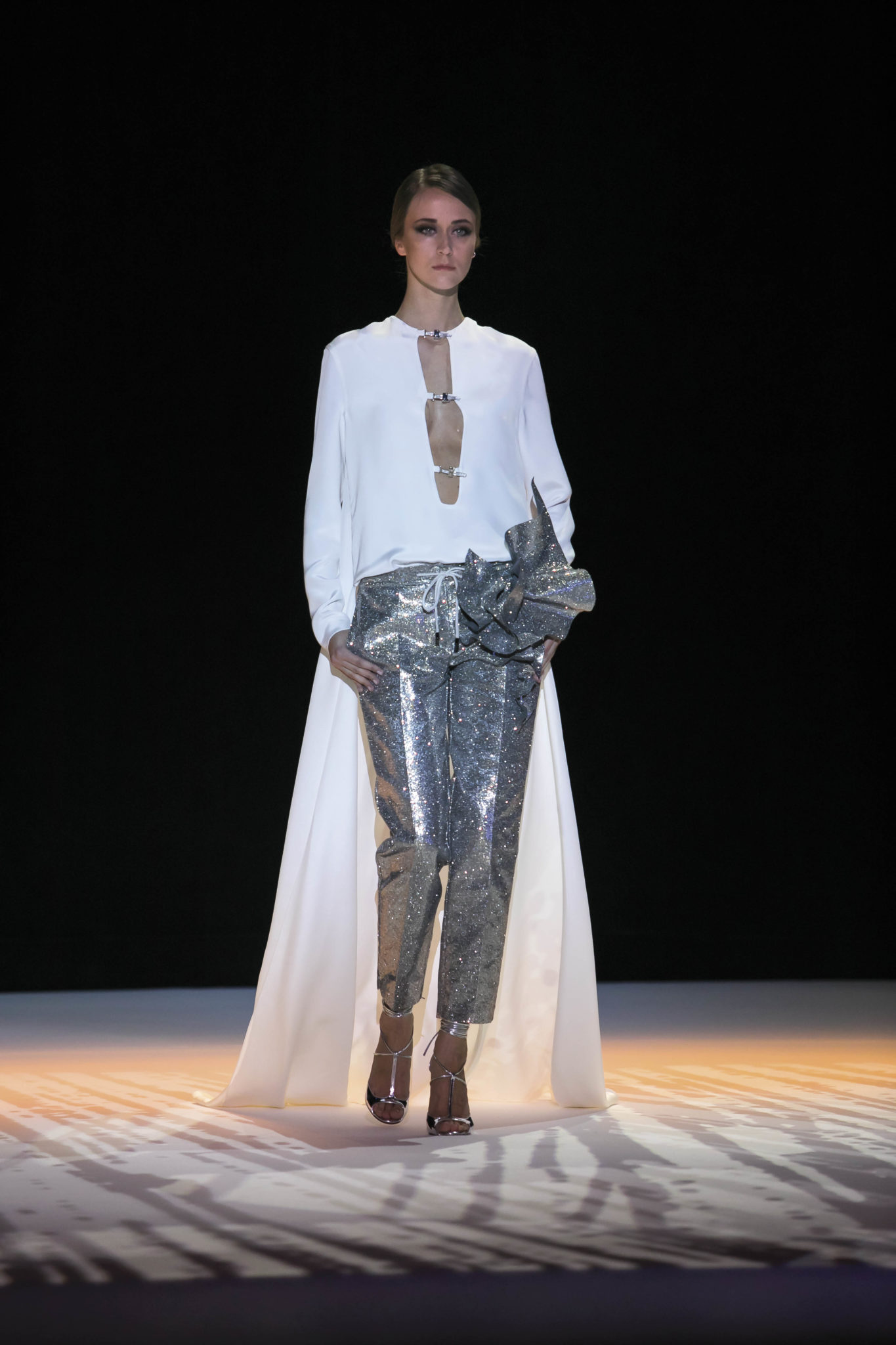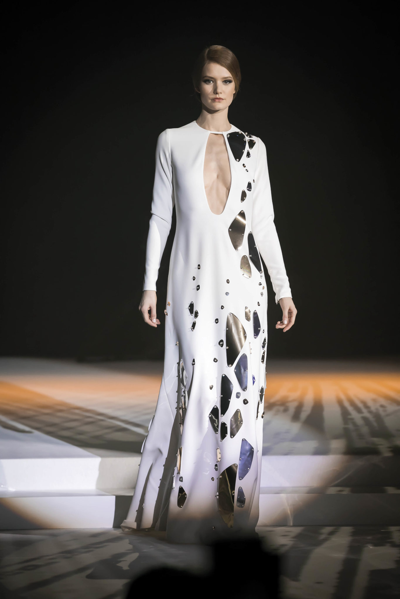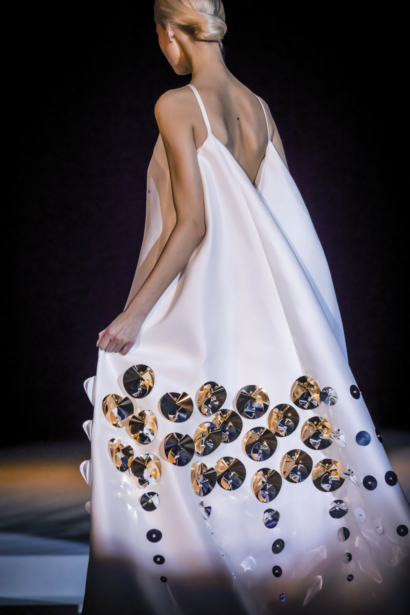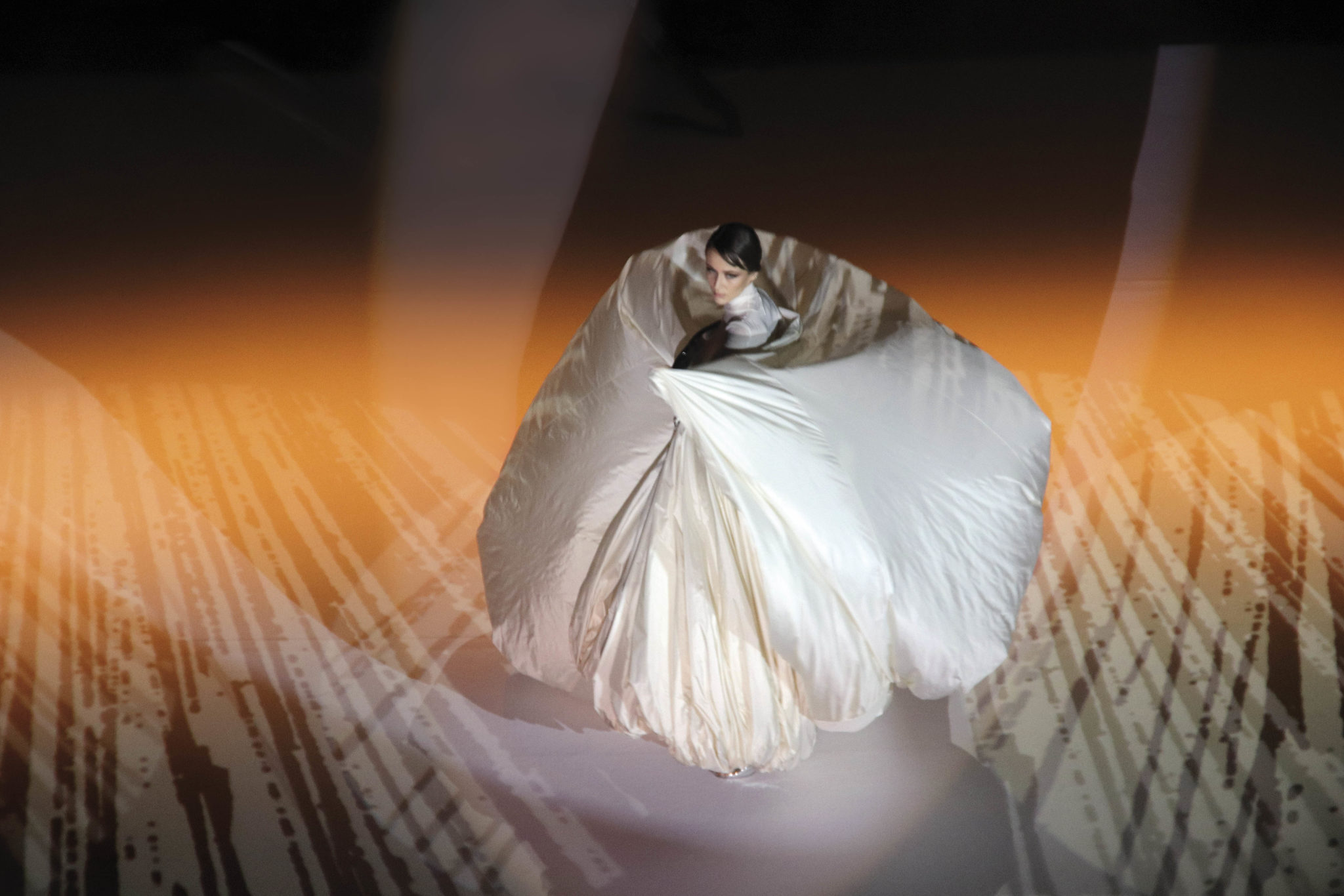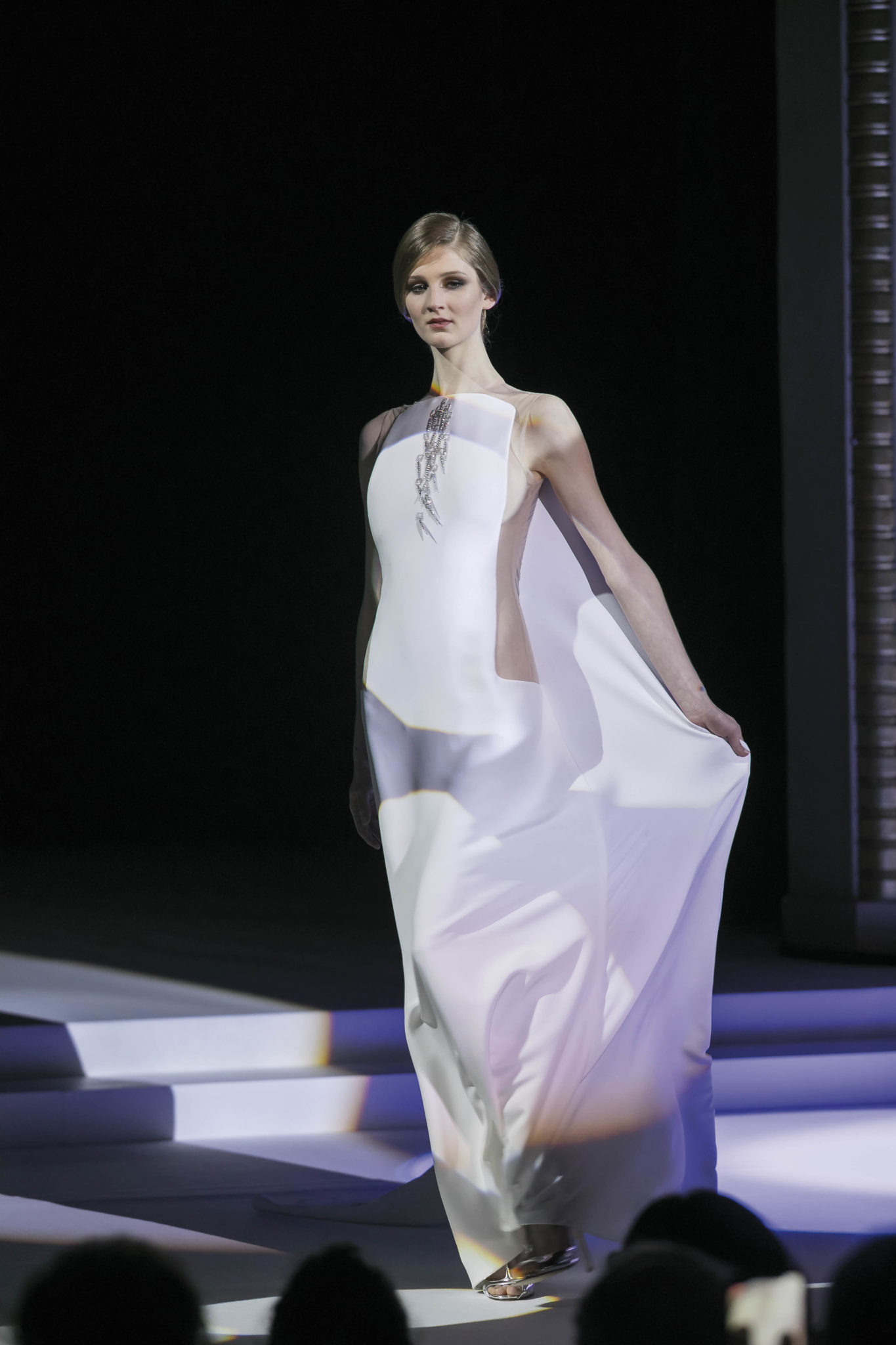 Si l’architecture est un des poles majeurs dans son processus de création, Stéphane Rolland annonce cette saison une allure adoucie, aérienne et lumineuse