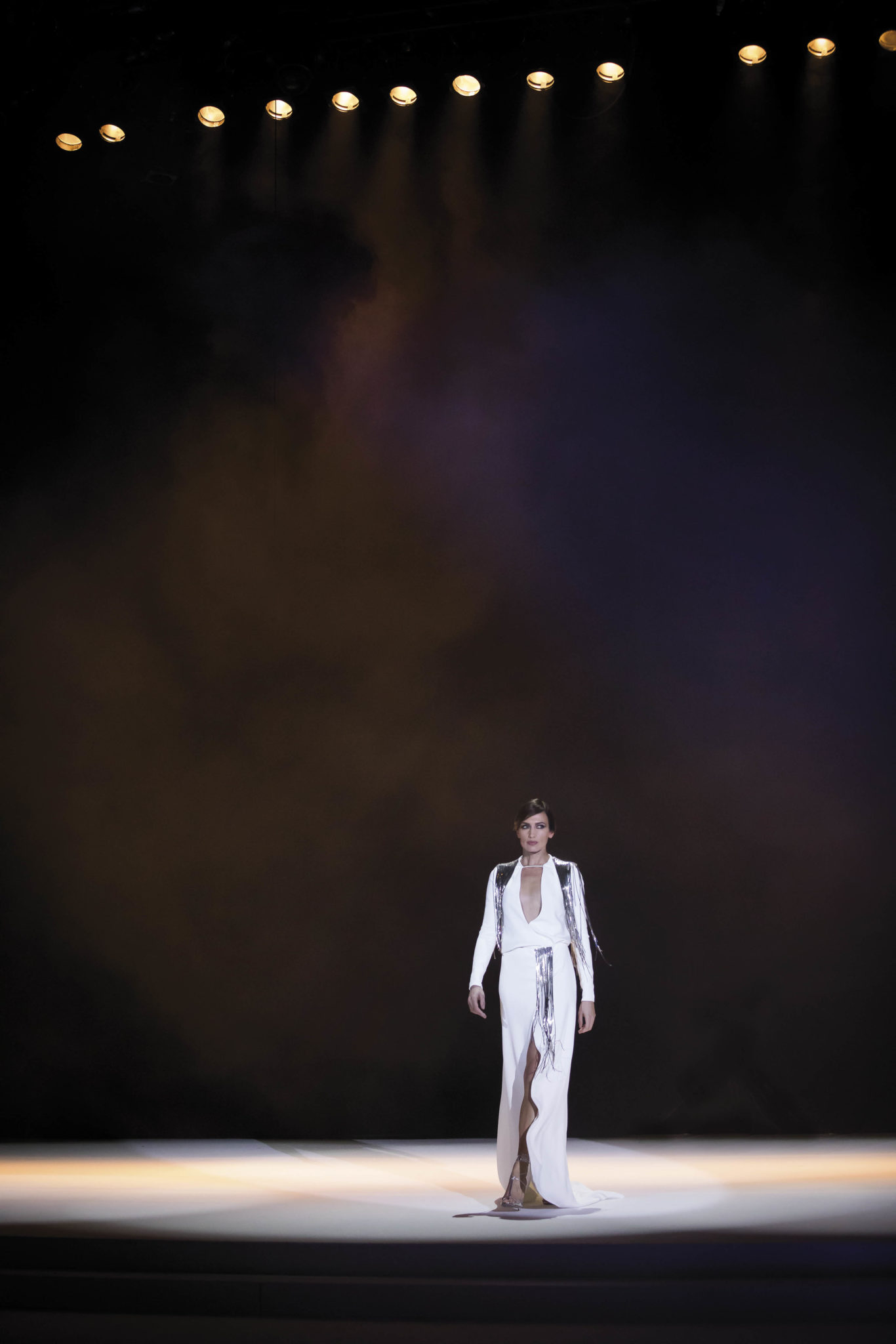 Mais le luxe ultime est présenté sur six robes d’exception brodées de Haute Joaillerie. Elles annoncent la naissance d’une créative collaboration entre le joailler Albert Boghossian et Stéphane Rolland
