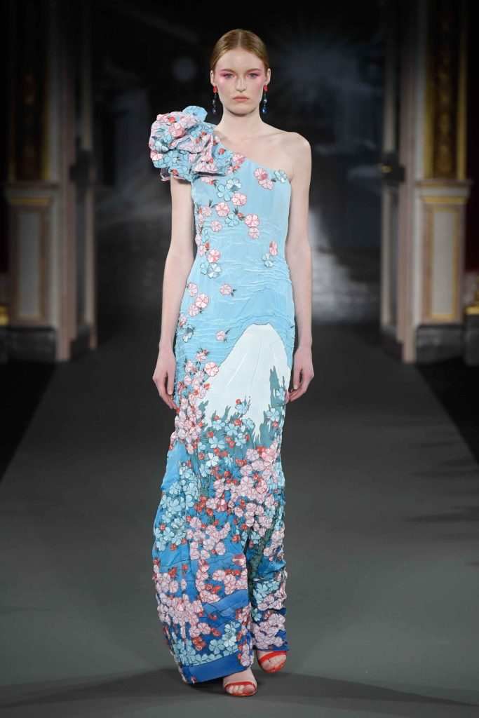 Yumi Katsura présente sa nouvelle collection Couture “Les Liens“ inspirée des peintres japonais et occidentaux comme Hokusai, Monet, Van Gogh et Rivière.