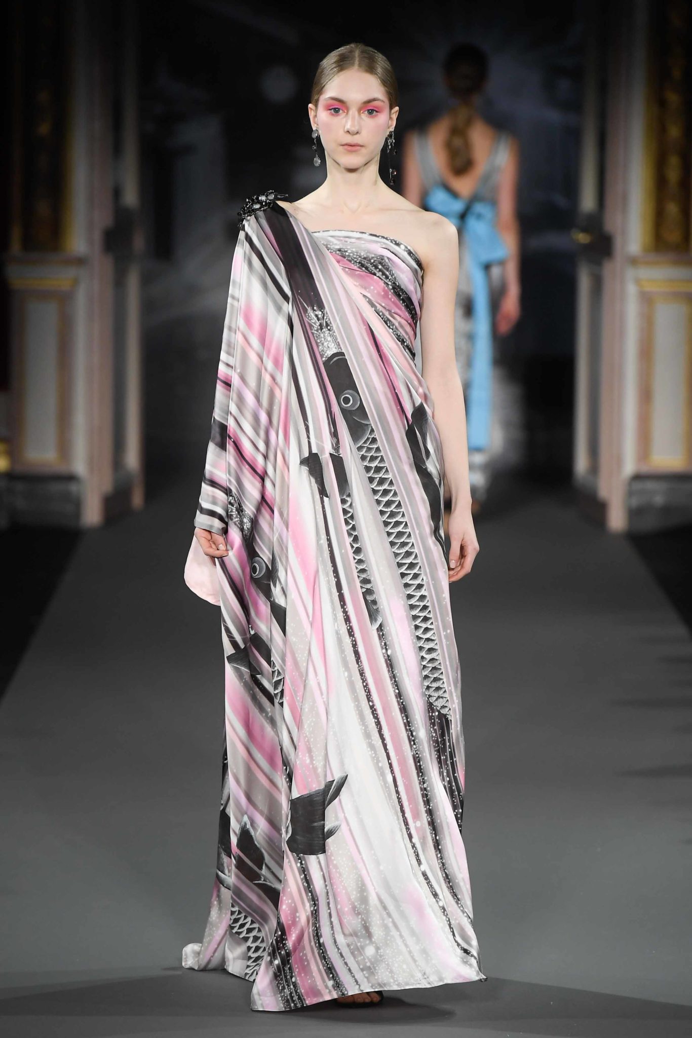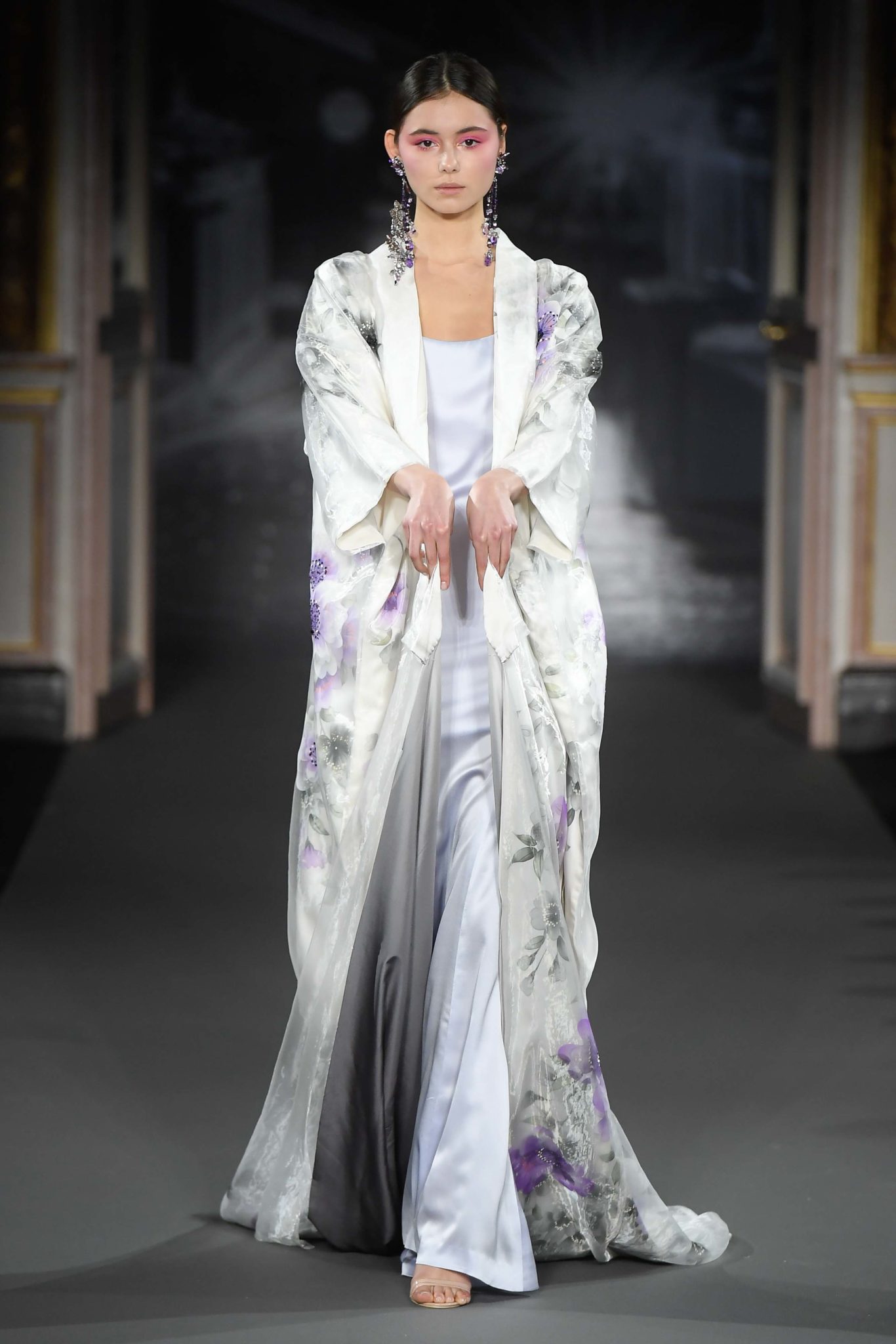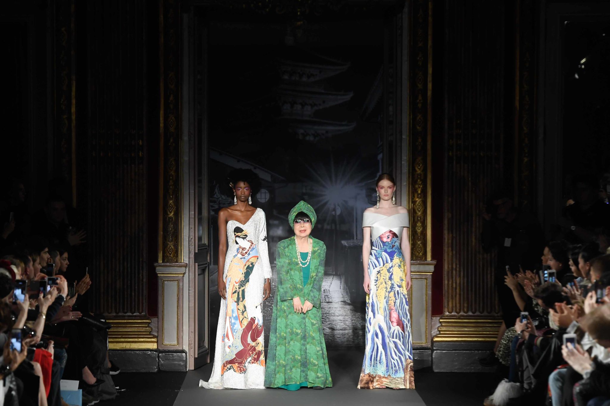 Yumi Katsura présente sa nouvelle collection Couture “Les Liens“ inspirée des peintres japonais et occidentaux comme Hokusai, Monet, Van Gogh et Rivière.