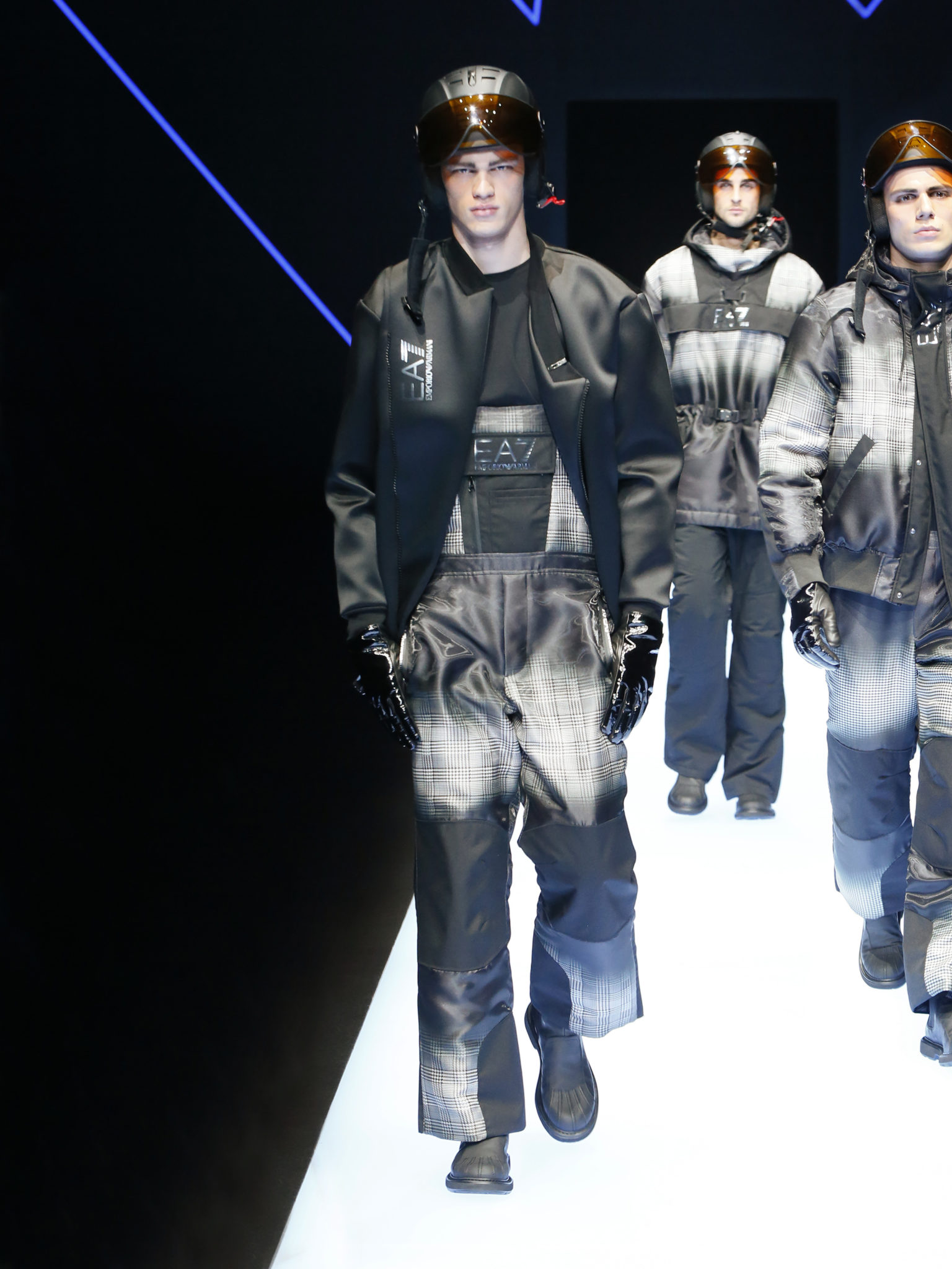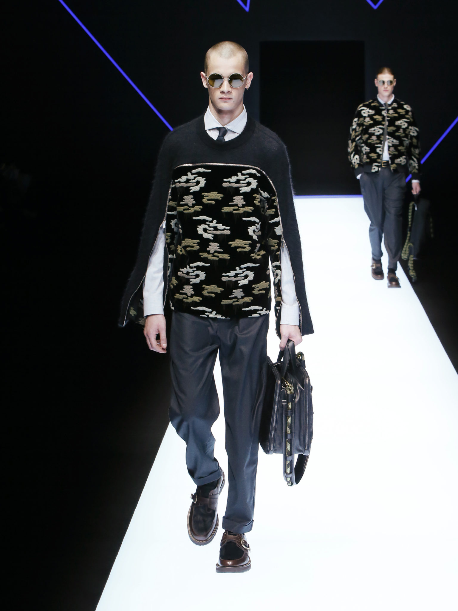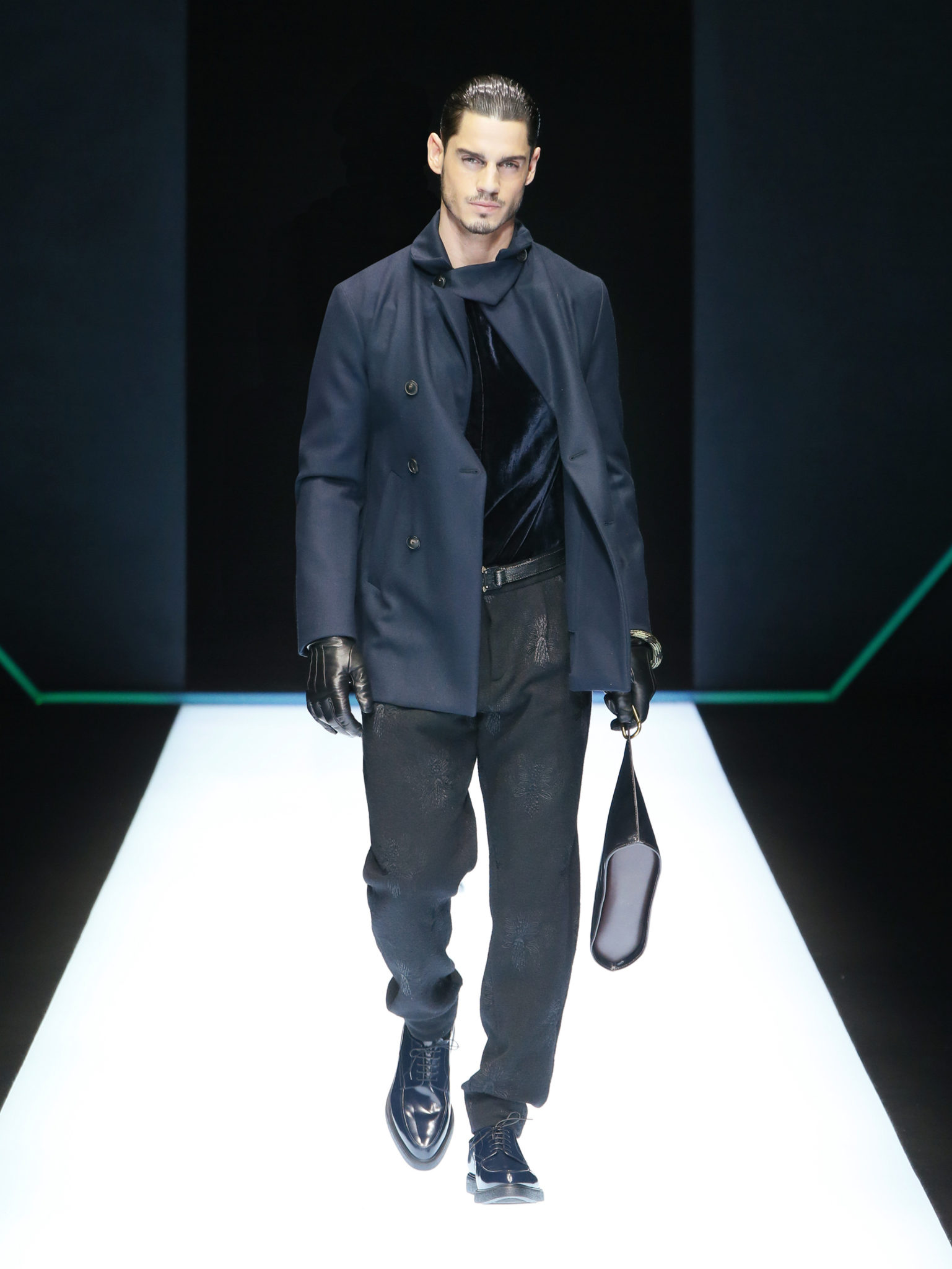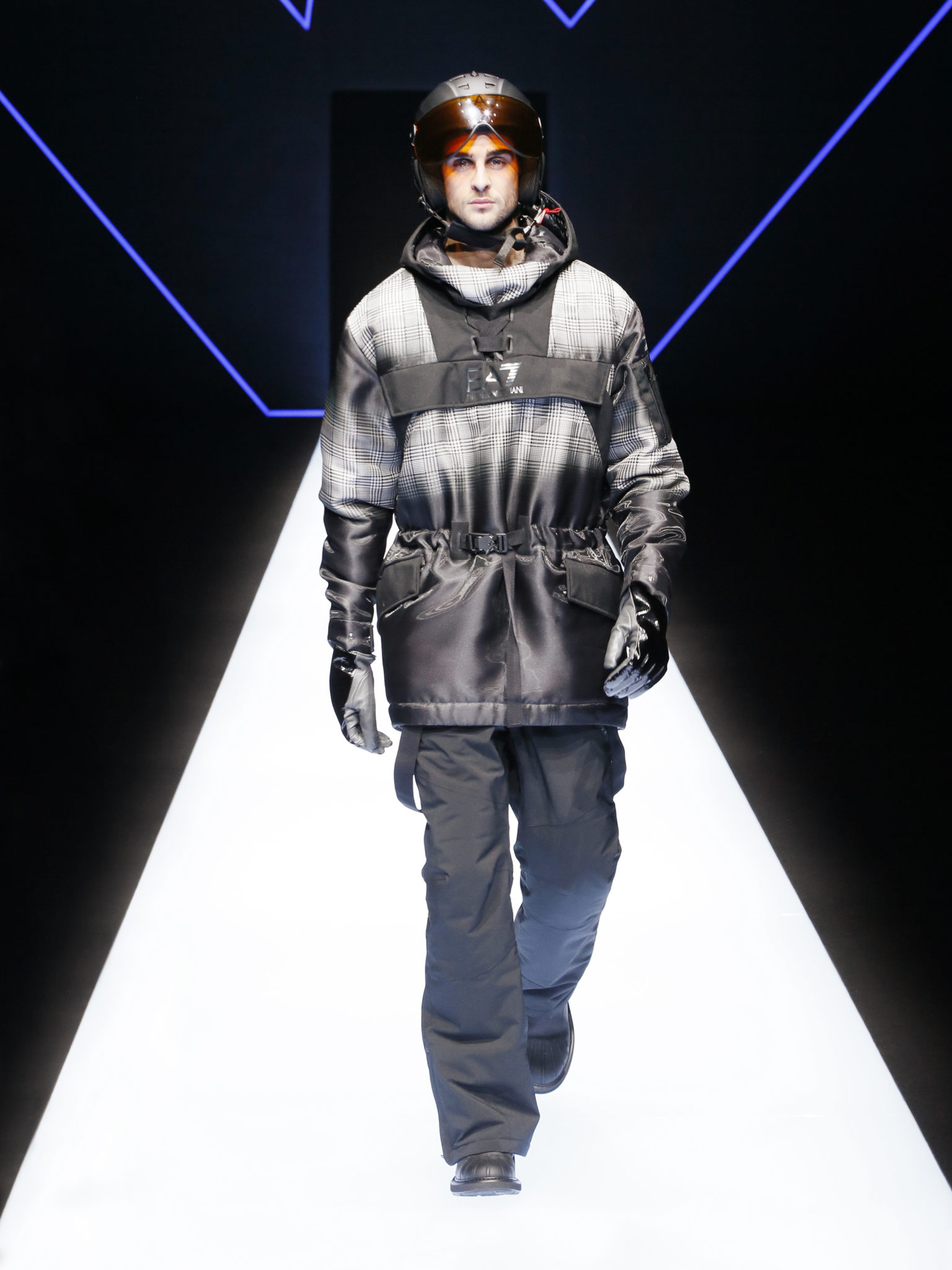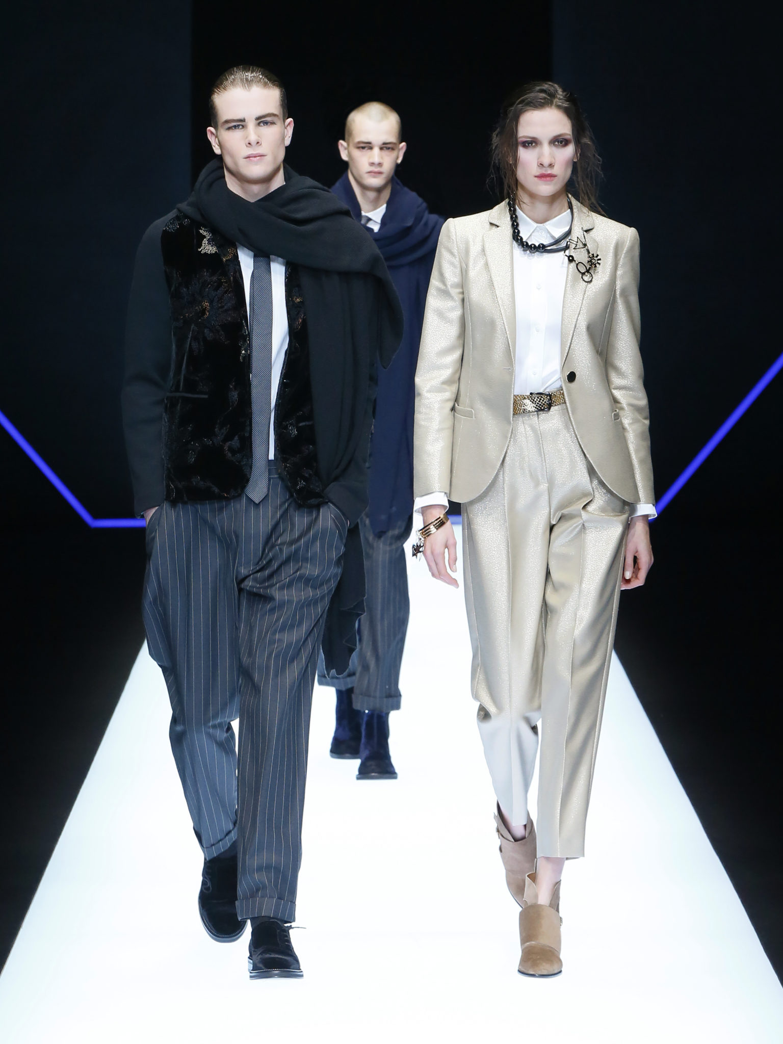 La collection a un esprit urbain et décisif, avec une idée de nouvelle élégance : précieuse mais pas frivole. Le vestiaire urbain a un ton dynamique, combinant l’innovation des lignes et des matières. La silhouette svelte et nette se traduit par des vestes de costumes à double boutonnage et petites épaulettes, portées avec des pantalons larges, un trench-coat en laine à boucles techniques, et des bombers style kimono sans coutures. Le « outerwear » rend hommage au monde de la randonnée en montagne et aux activités outdoor, avec des manteaux en peau de mouton retournée et des vestes en peau de chèvre.