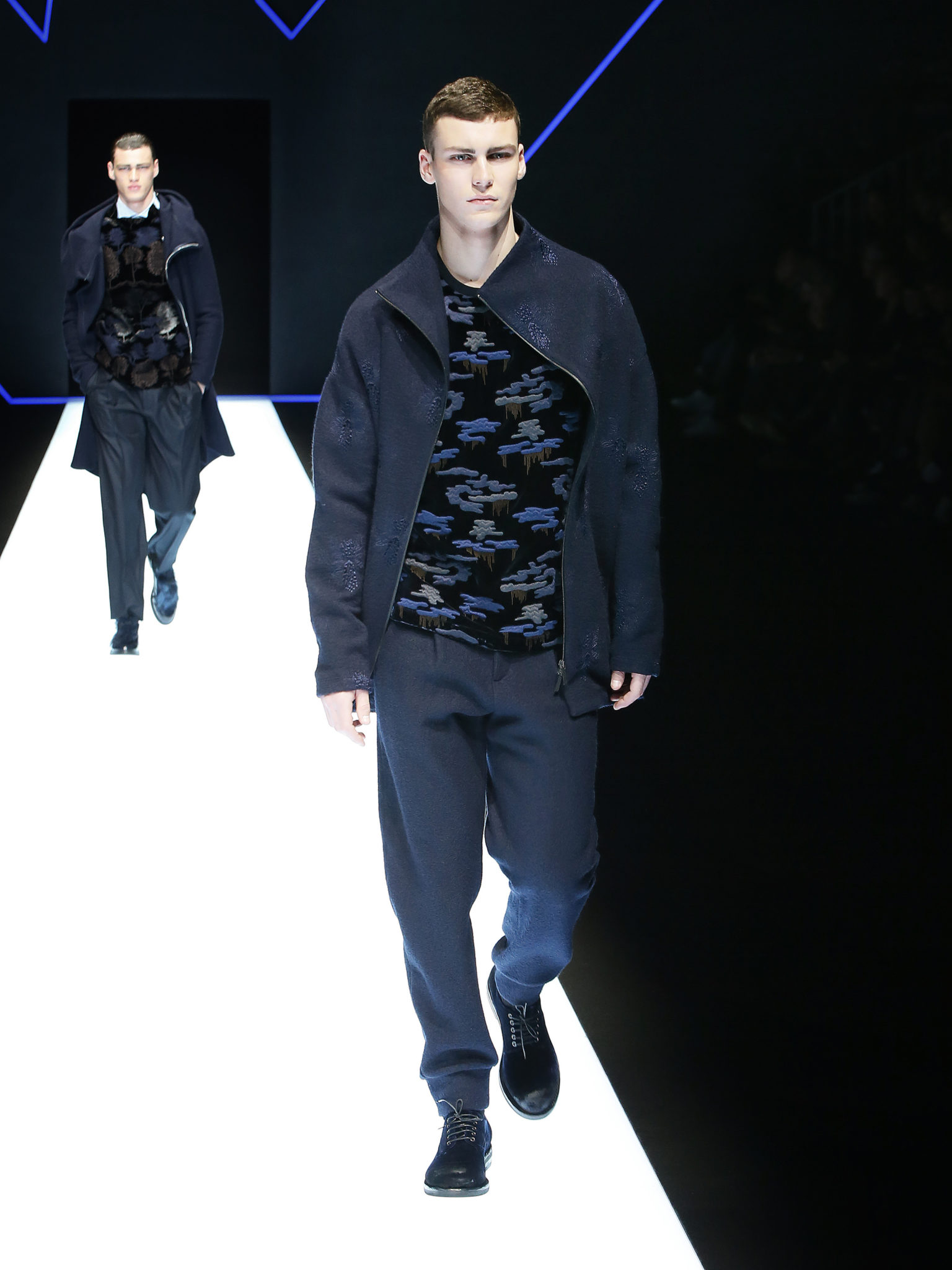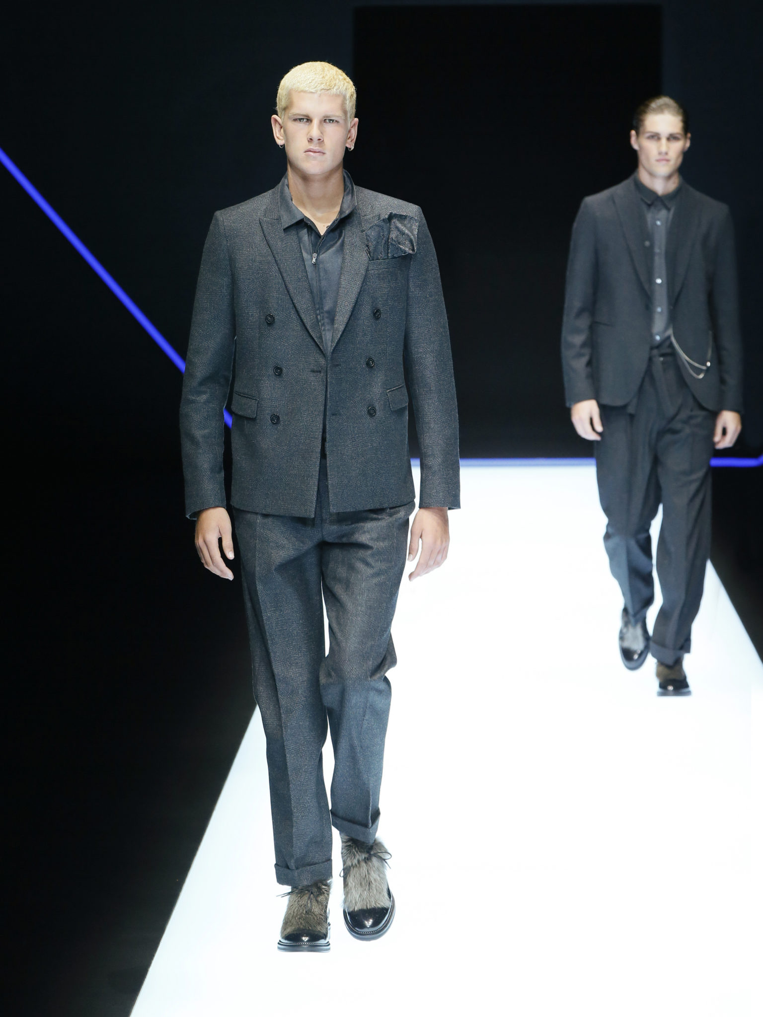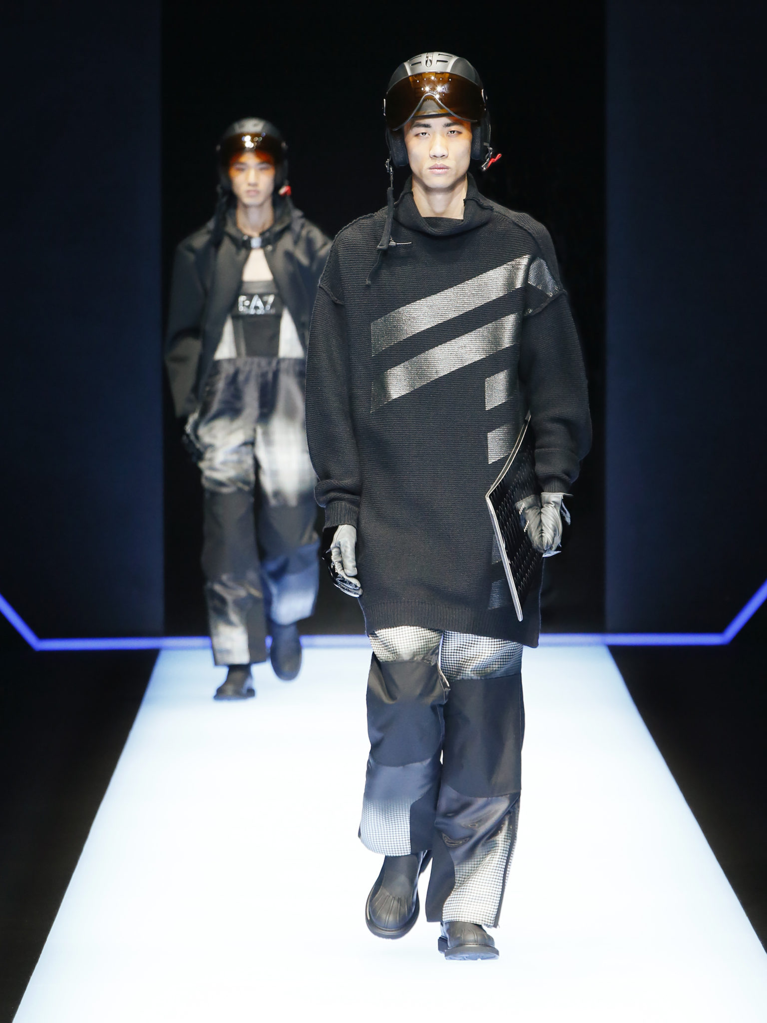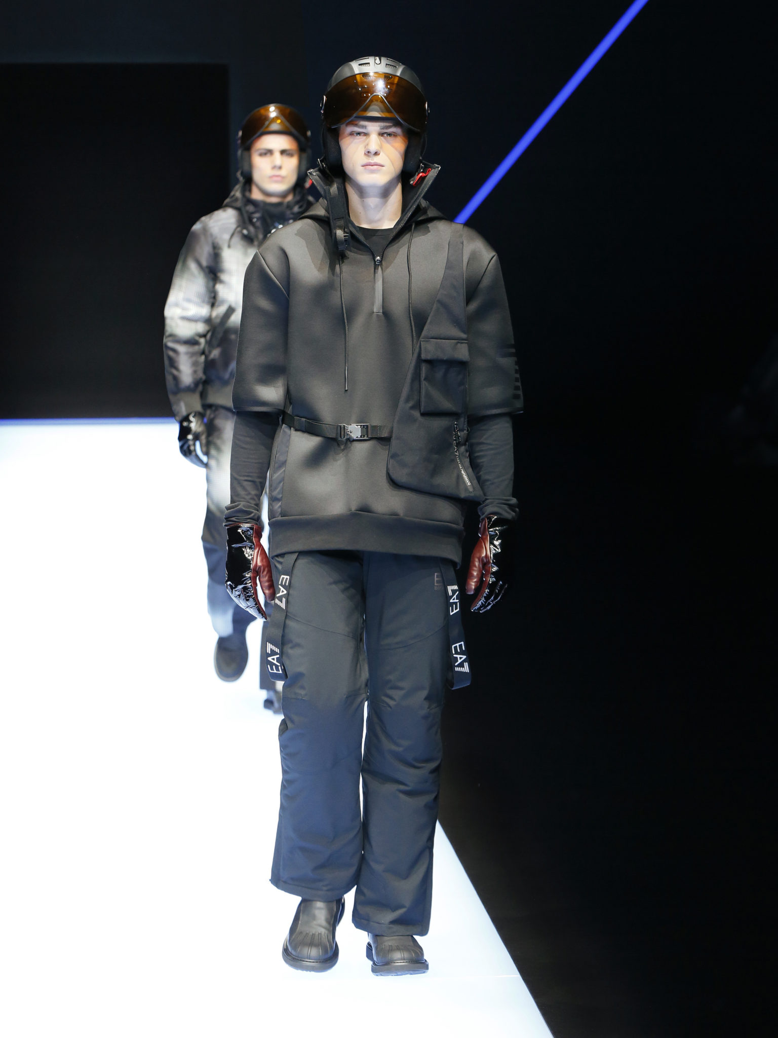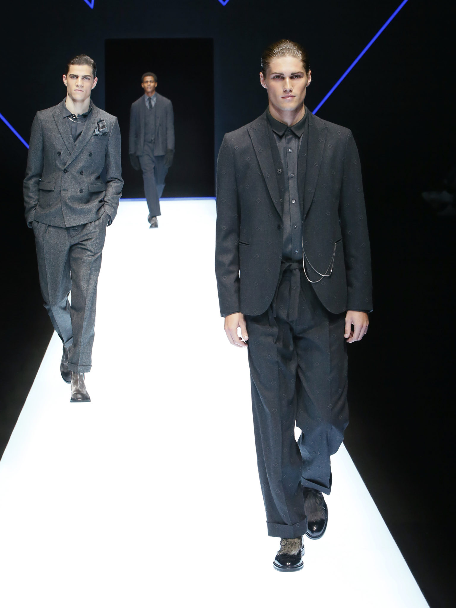 La collection a un esprit urbain et décisif, avec une idée de nouvelle élégance : précieuse mais pas frivole. Le vestiaire urbain a un ton dynamique, combinant l’innovation des lignes et des matières. La silhouette svelte et nette se traduit par des vestes de costumes à double boutonnage et petites épaulettes, portées avec des pantalons larges, un trench-coat en laine à boucles techniques, et des bombers style kimono sans coutures. Le « outerwear » rend hommage au monde de la randonnée en montagne et aux activités outdoor, avec des manteaux en peau de mouton retournée et des vestes en peau de chèvre.