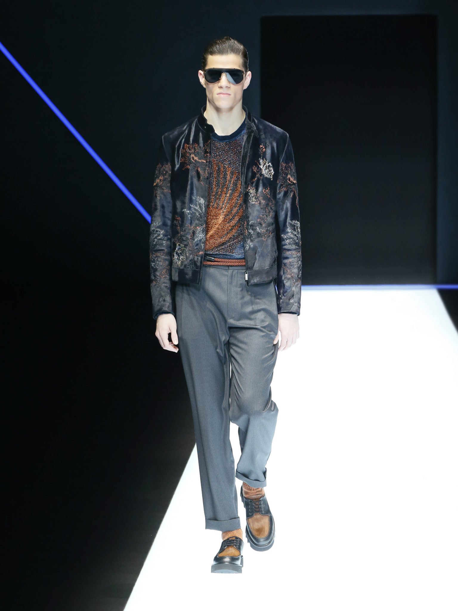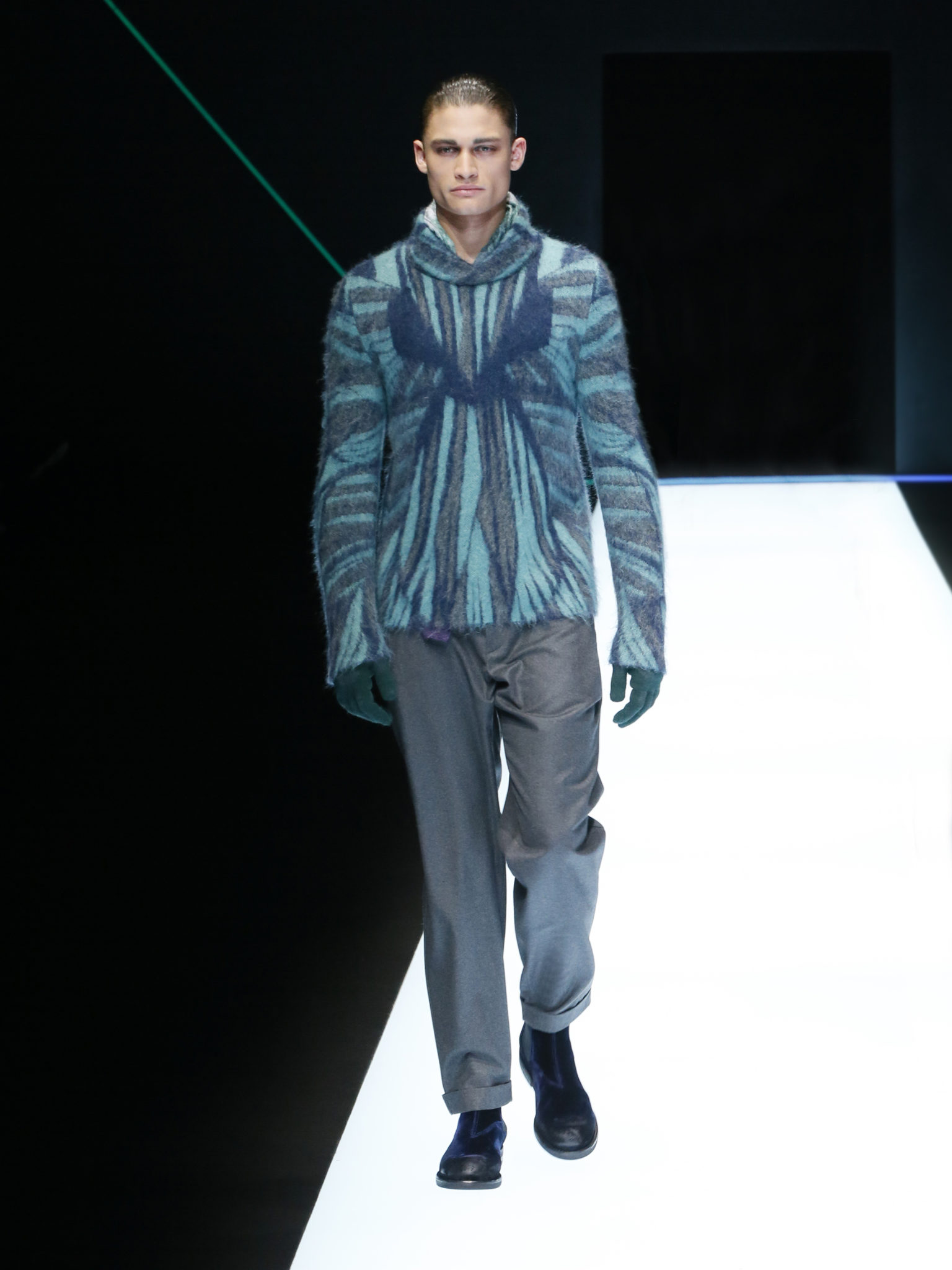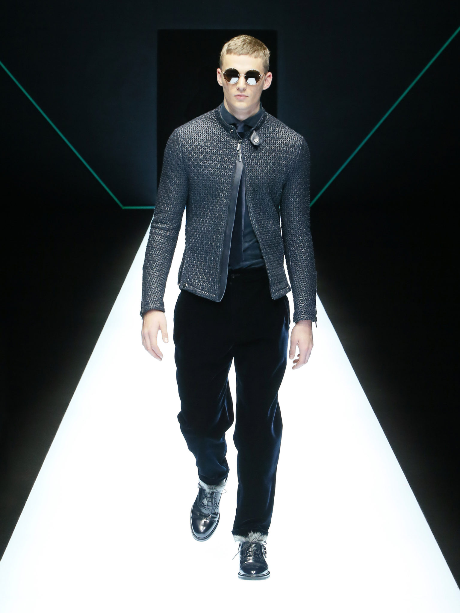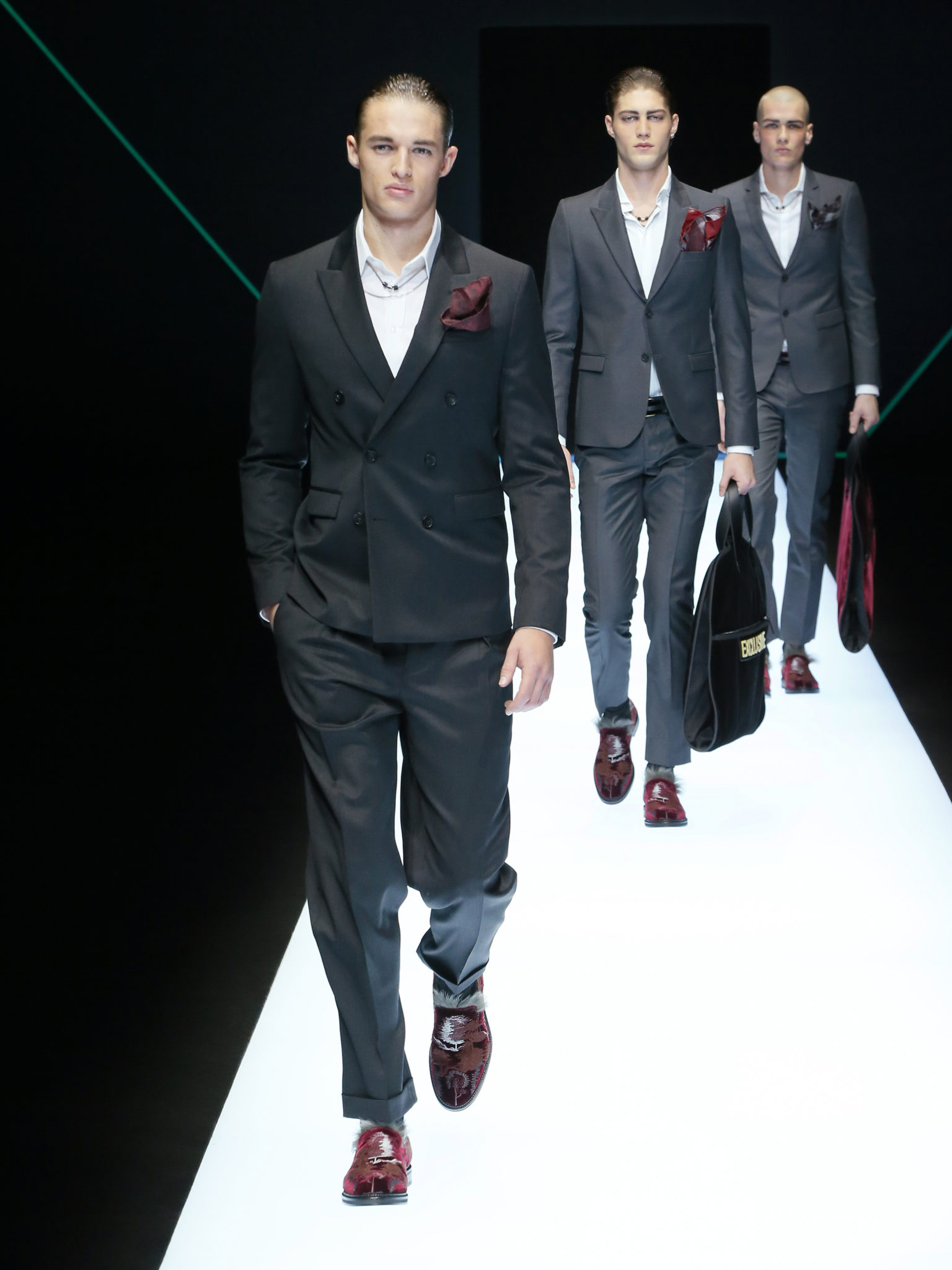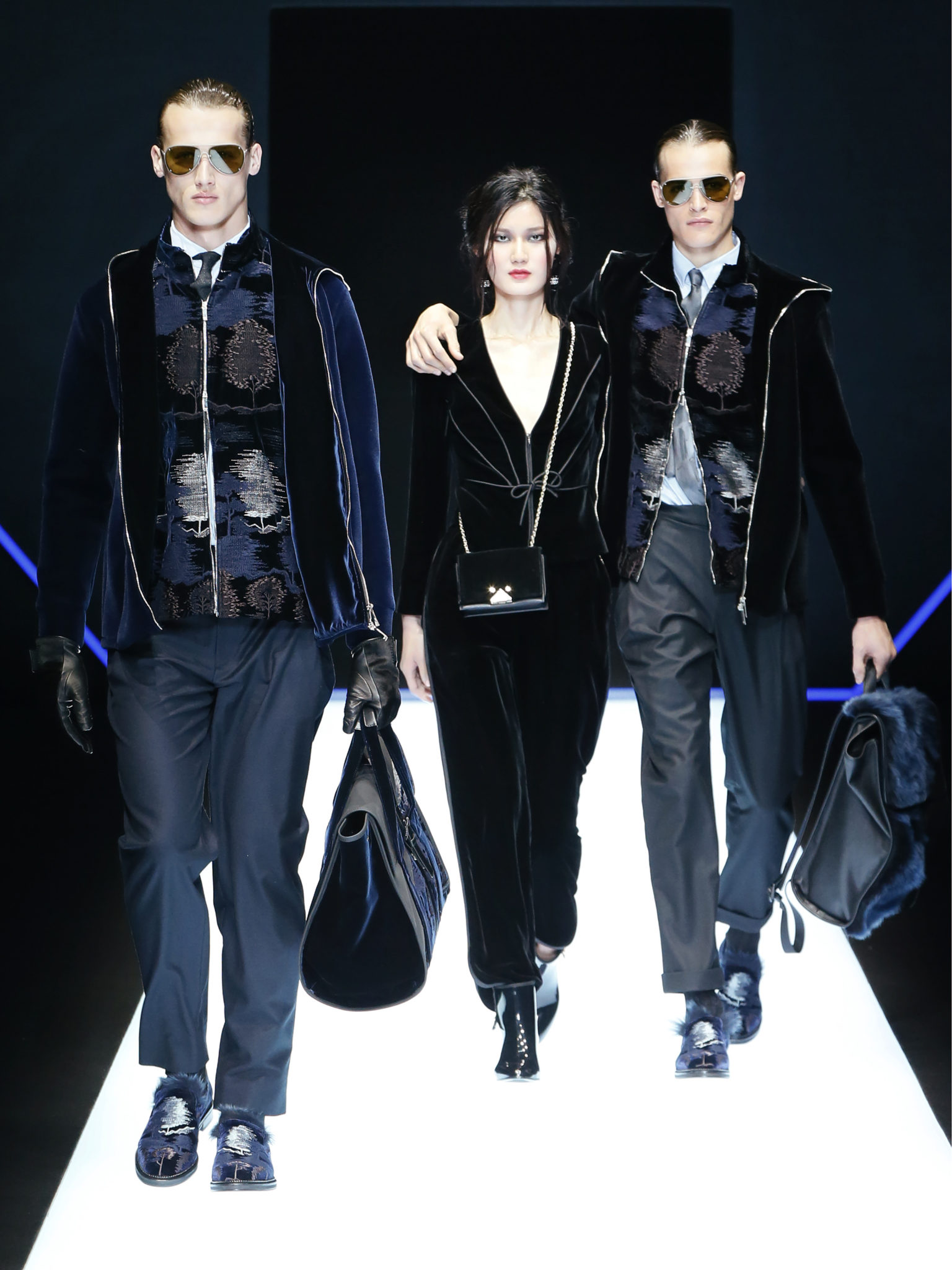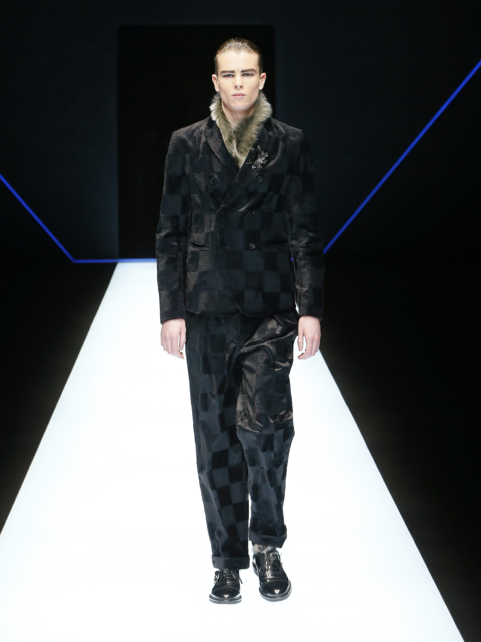 La collection a un esprit urbain et décisif, avec une idée de nouvelle élégance : précieuse mais pas frivole. Le vestiaire urbain a un ton dynamique, combinant l’innovation des lignes et des matières. La silhouette svelte et nette se traduit par des vestes de costumes à double boutonnage et petites épaulettes, portées avec des pantalons larges, un trench-coat en laine à boucles techniques, et des bombers style kimono sans coutures. Le « outerwear » rend hommage au monde de la randonnée en montagne et aux activités outdoor, avec des manteaux en peau de mouton retournée et des vestes en peau de chèvre.