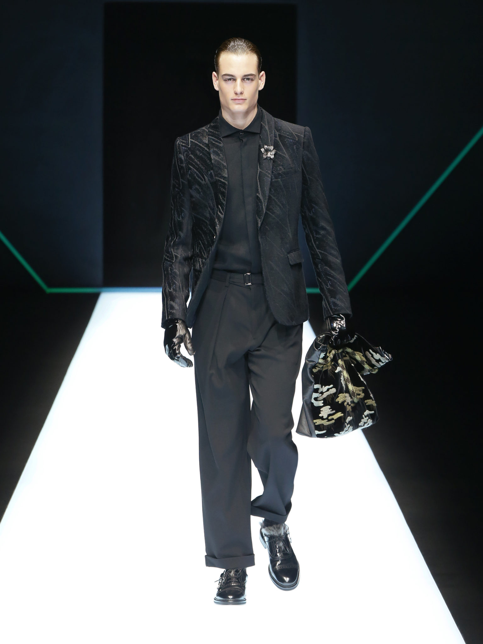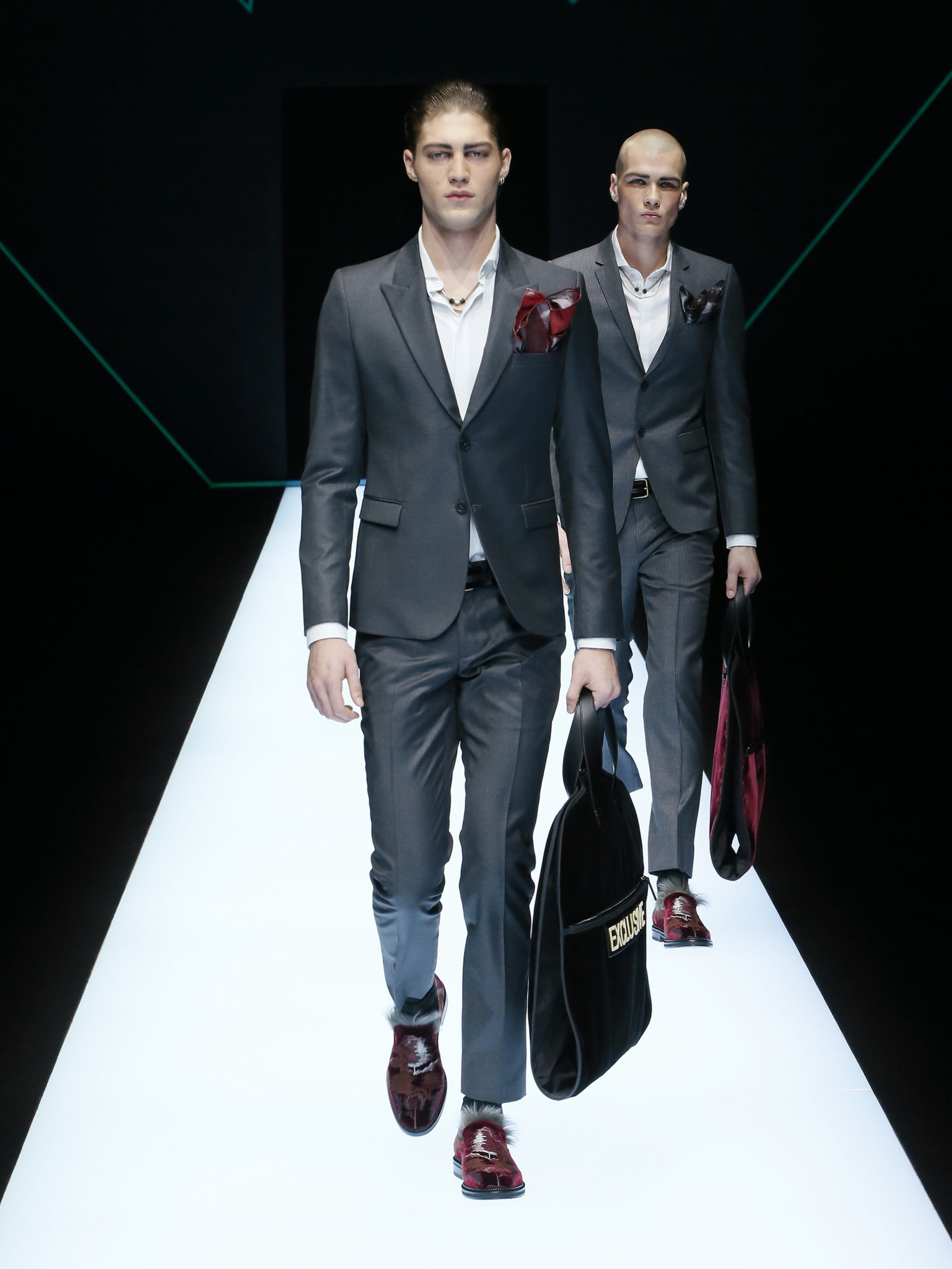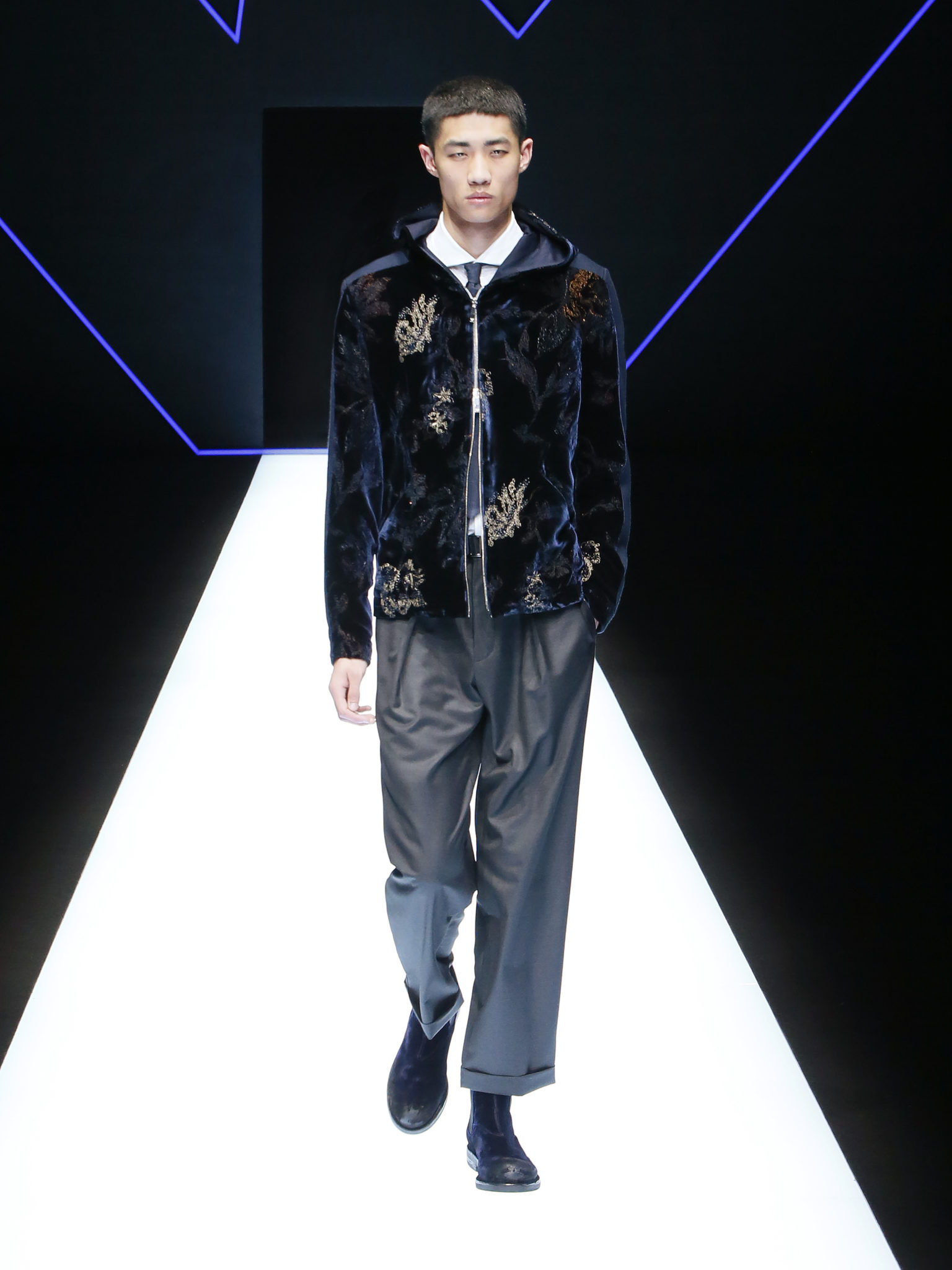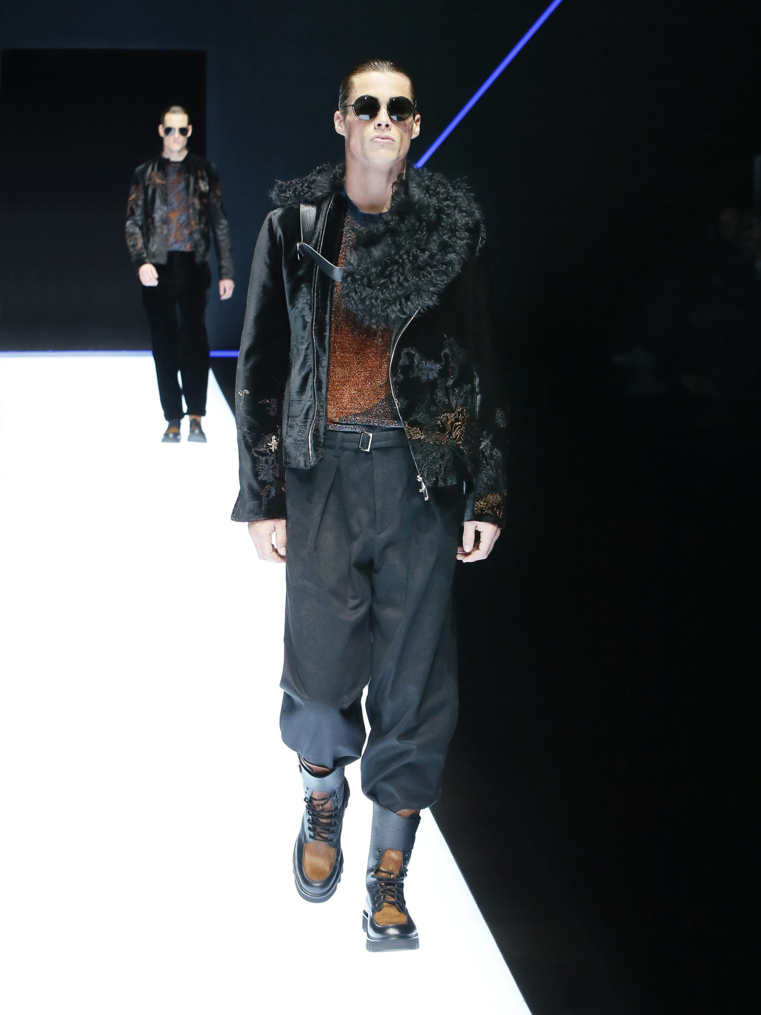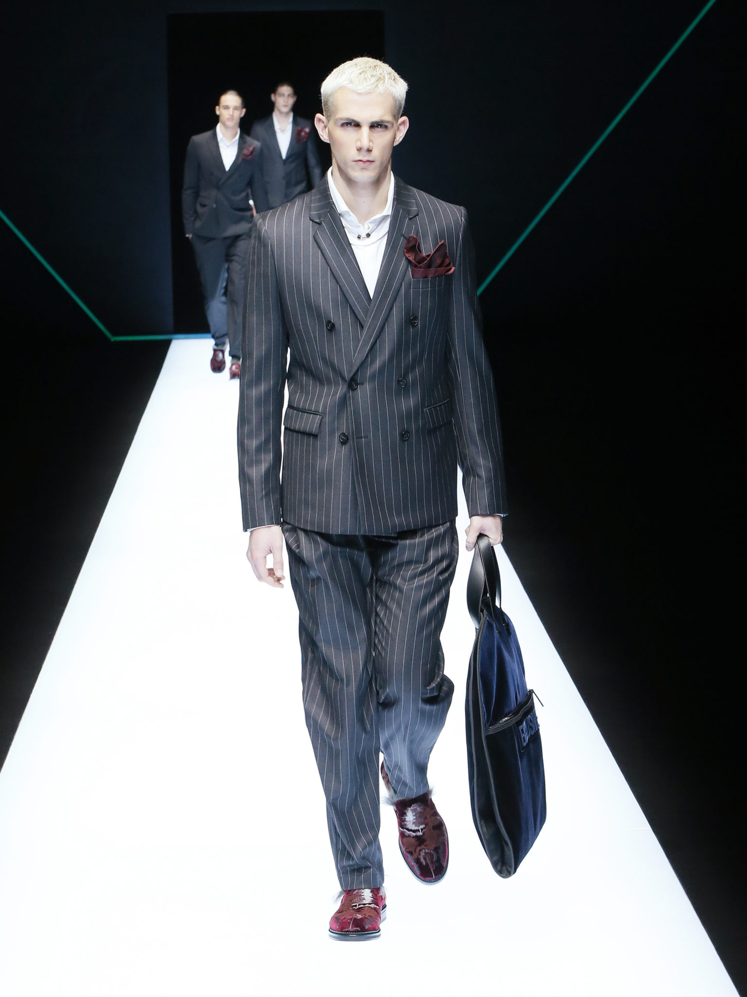 La collection a un esprit urbain et décisif, avec une idée de nouvelle élégance : précieuse mais pas frivole. Le vestiaire urbain a un ton dynamique, combinant l’innovation des lignes et des matières. La silhouette svelte et nette se traduit par des vestes de costumes à double boutonnage et petites épaulettes, portées avec des pantalons larges, un trench-coat en laine à boucles techniques, et des bombers style kimono sans coutures. Le « outerwear » rend hommage au monde de la randonnée en montagne et aux activités outdoor, avec des manteaux en peau de mouton retournée et des vestes en peau de chèvre.
