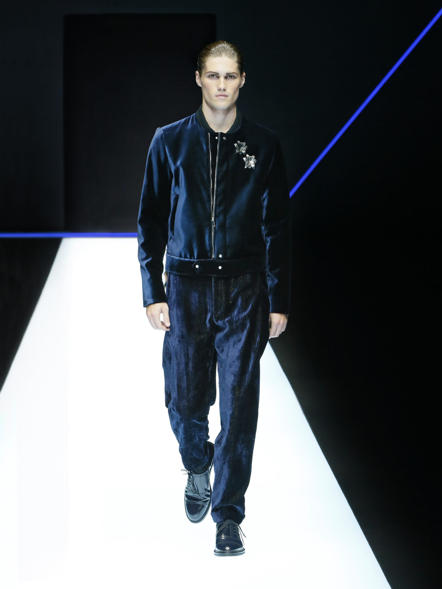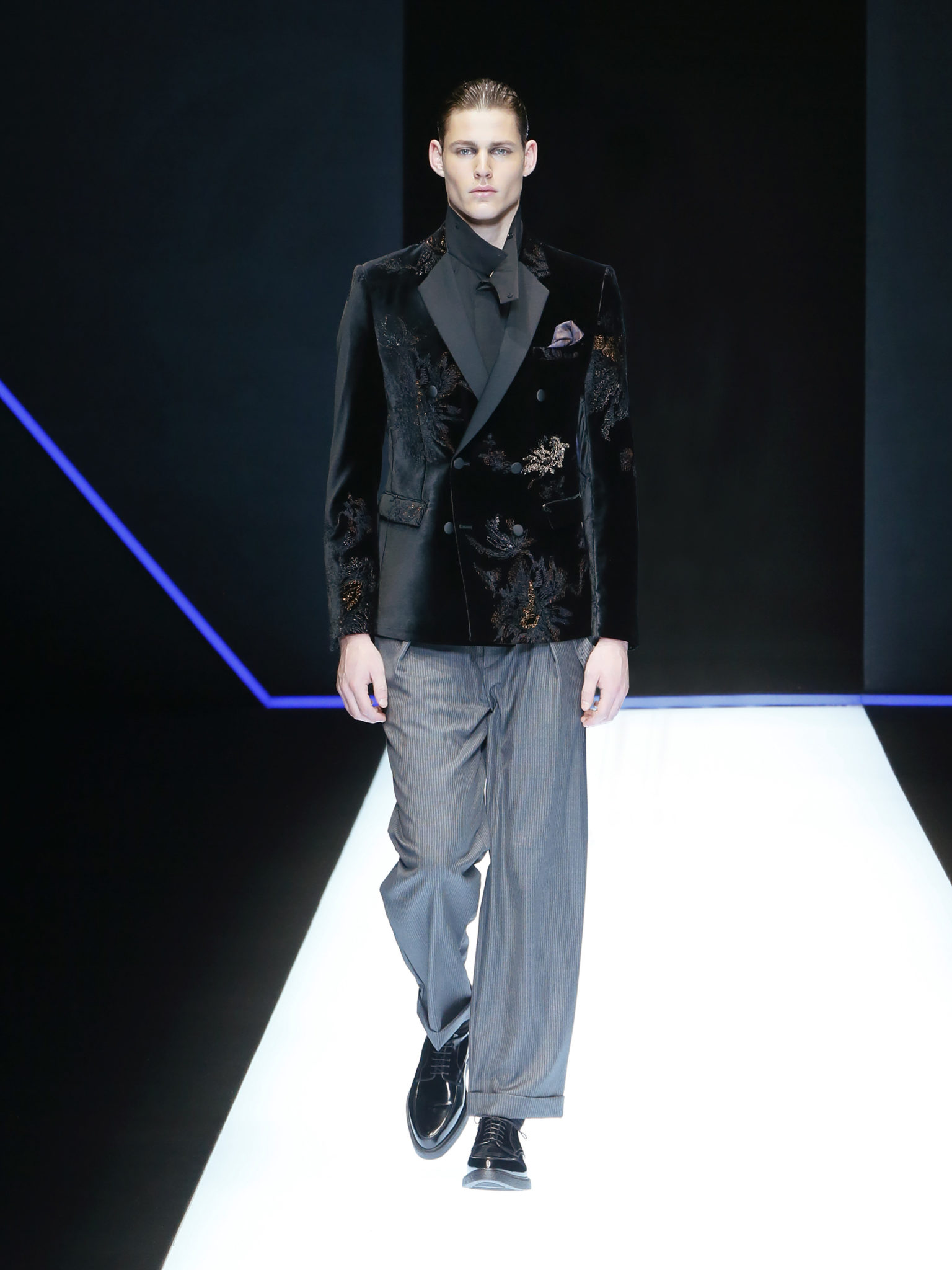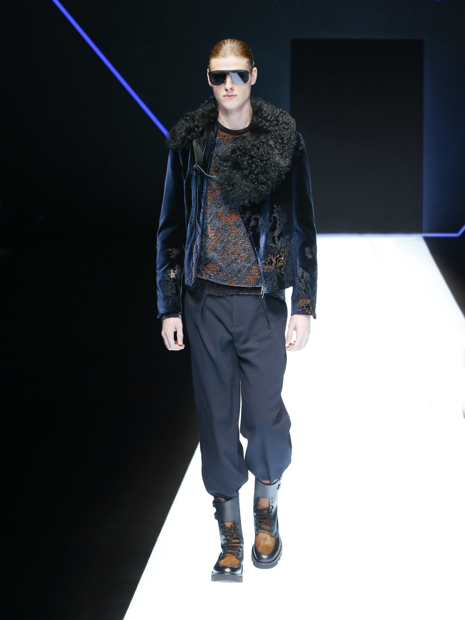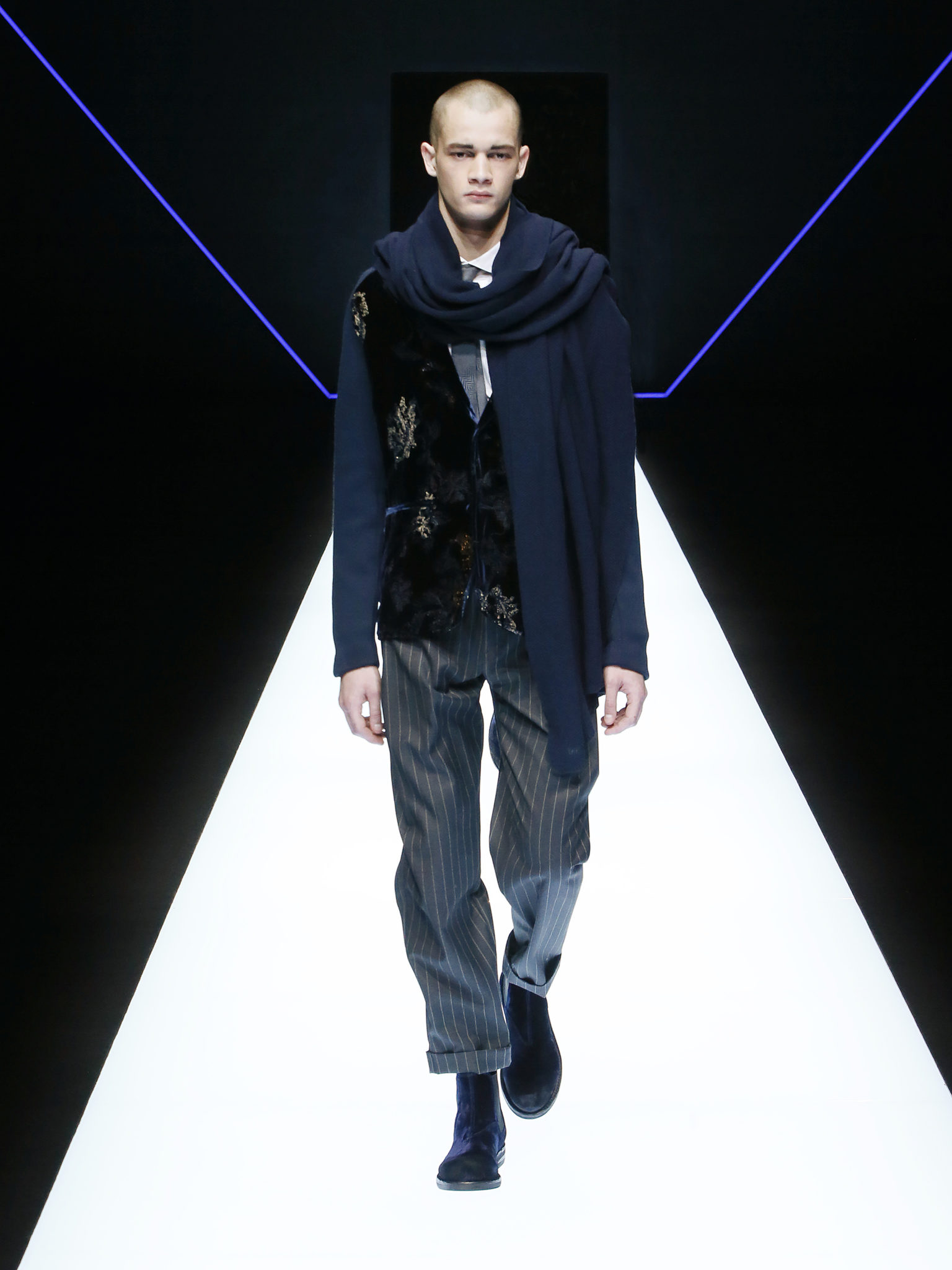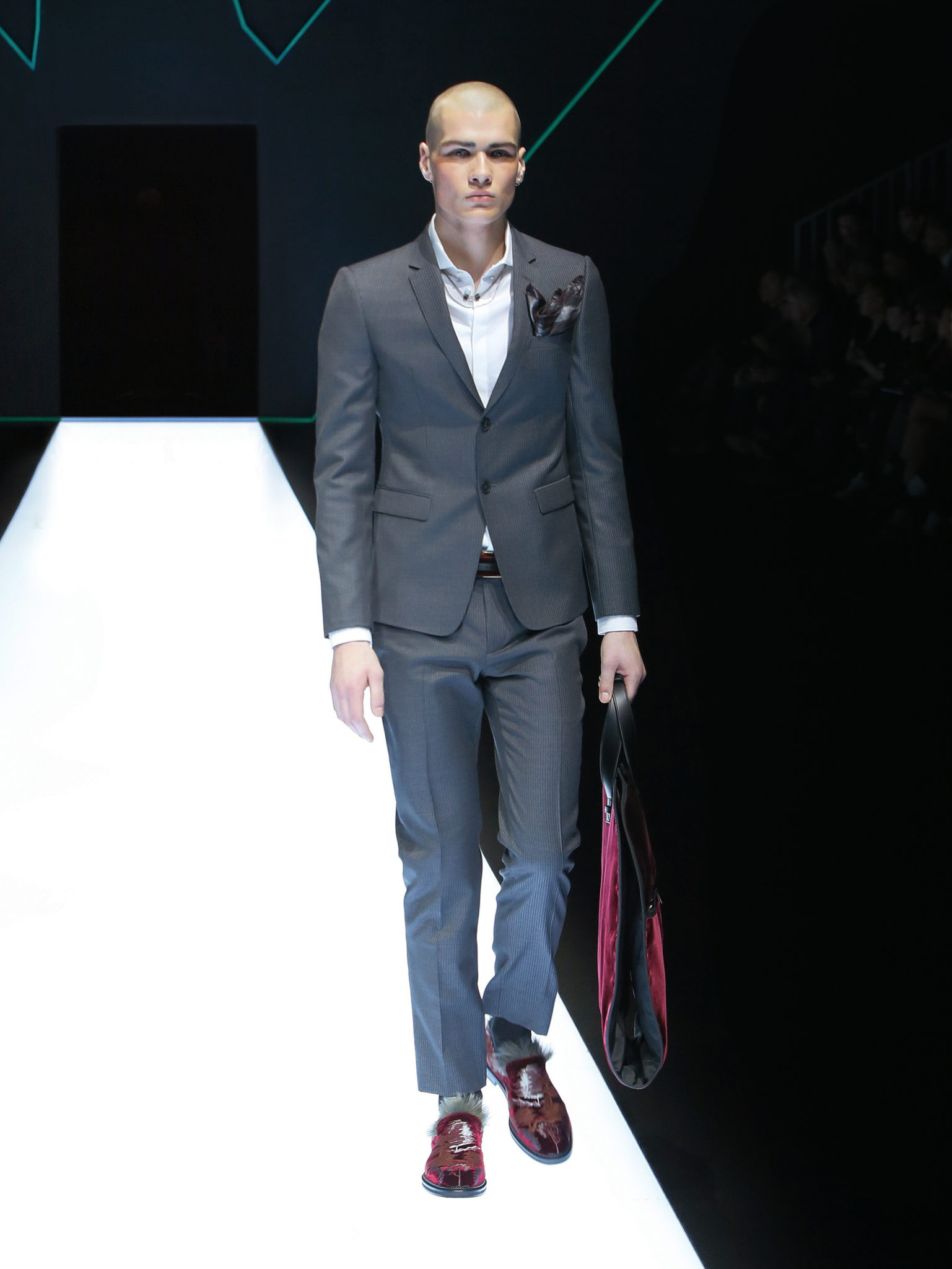 La collection a un esprit urbain et décisif, avec une idée de nouvelle élégance : précieuse mais pas frivole. Le vestiaire urbain a un ton dynamique, combinant l’innovation des lignes et des matières. La silhouette svelte et nette se traduit par des vestes de costumes à double boutonnage et petites épaulettes, portées avec des pantalons larges, un trench-coat en laine à boucles techniques, et des bombers style kimono sans coutures. Le « outerwear » rend hommage au monde de la randonnée en montagne et aux activités outdoor, avec des manteaux en peau de mouton retournée et des vestes en peau de chèvre.