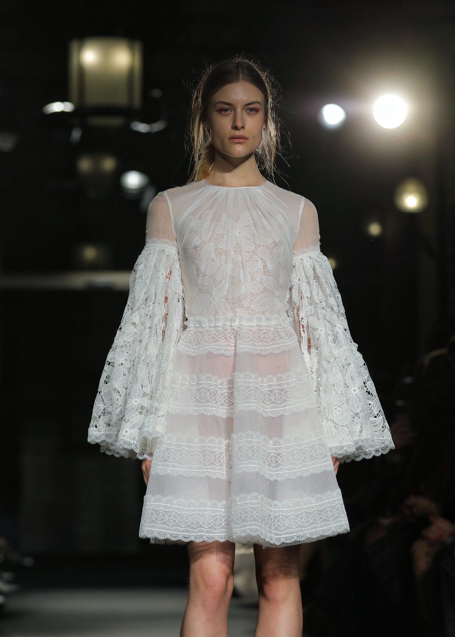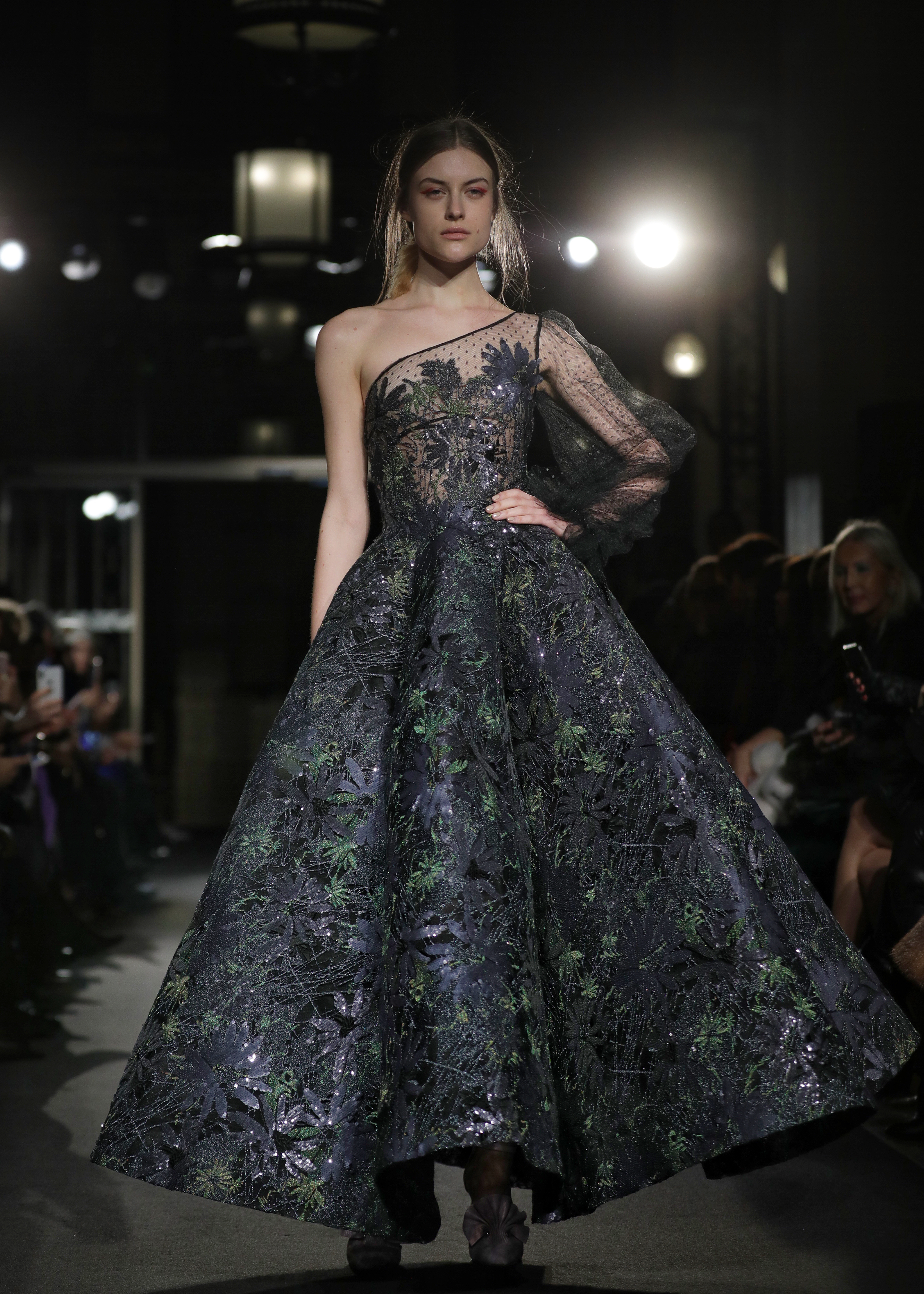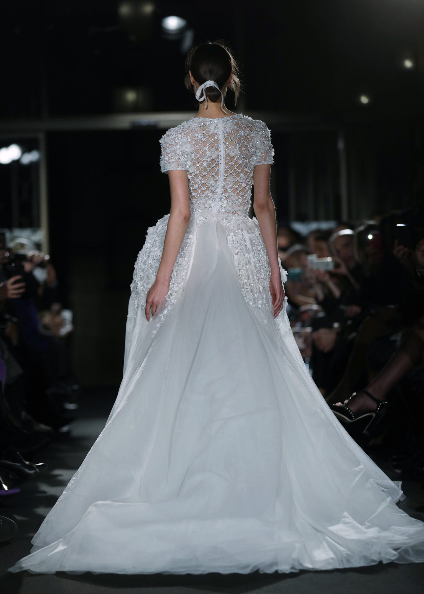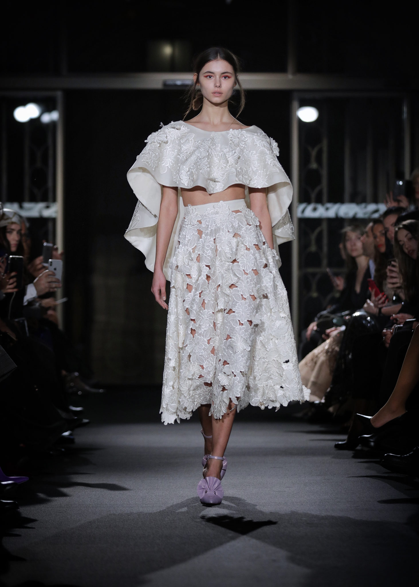 Les silhouettes se dévoilaient tout en raffinement, utilisant des matières autant que de détails précieux : les jupons se recouvraient ainsi de fleurs brodées et de dentelles de perles en cascade. Les bustiers se parsemaient de plumes, tout en légèreté comme empreintes de poésie…