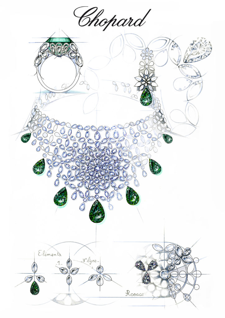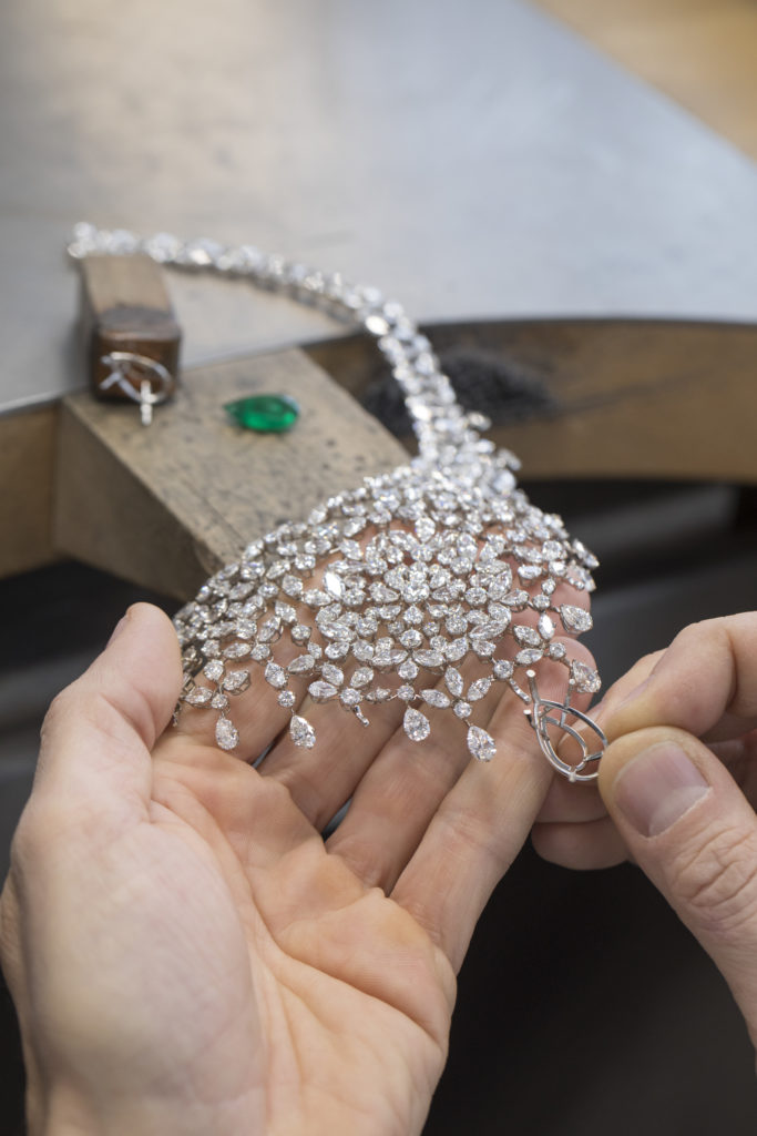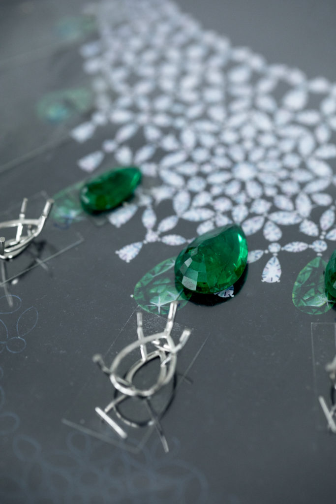 C’est au cœur de ses ateliers genevois que les pièces de Haute Joaillerie les plus spectaculaires sont conçues, sous l’impulsion de Caroline Scheufele, co-présidente et directrice artistique. Grâce à sa vision créative, la Maison Chopard a développé avec constance le secteur de la Haute Joaillerie, solidement ancré dans la tradition joaillière de la famille Scheufele. Du design à la réalisation, les artisans conjuguent leurs talents et leurs savoir-faire pour donner naissance à de véritables œuvres d’art, où les techniques traditionnelles côtoient les technologies de pointe. Ces pièces d’exception font intervenir tous les métiers de la Haute Joaillerie : designers, joaillers-sculpteurs sur cire, joailliers, lapidaires, sertisseurs, polisseurs… Des lignes aux volumes, du travail sur l’or à celui des pierres précieuses, ils donnent vie à ces bijoux par la conjugaison de leurs talents. Cette complémentarité entre les différents talents est rendue possible par le regroupement des métiers, plus de trente sous un même toit. Une richesse que la famille Scheufele cultive soigneusement, en misant sur la transmission du savoir-faire de génération en génération, la formation et l’intégration des métiers.