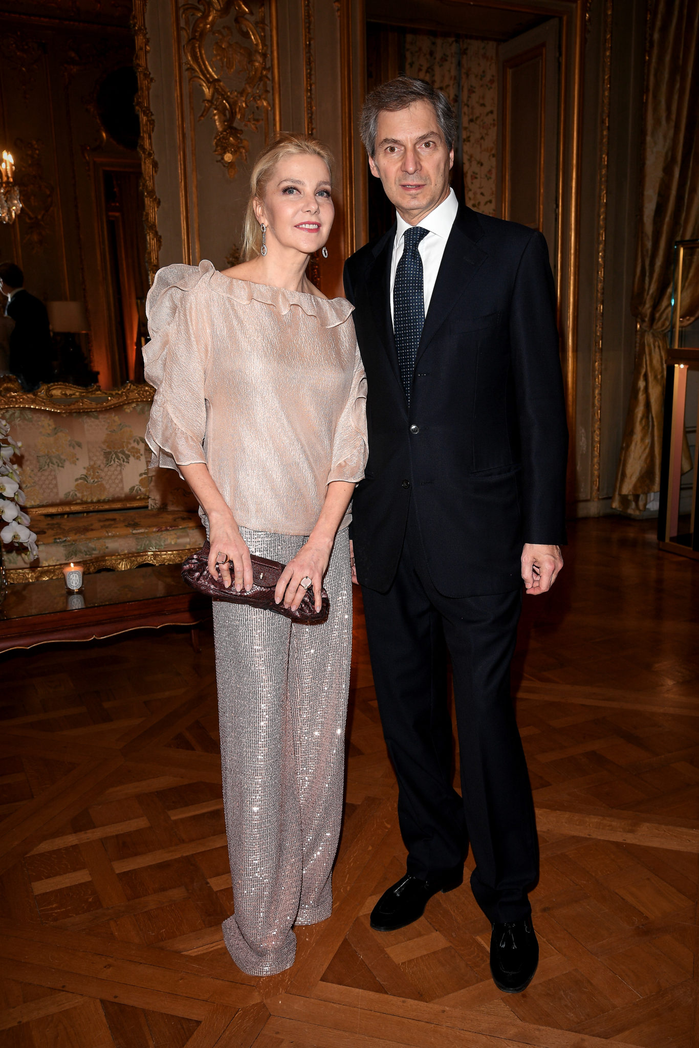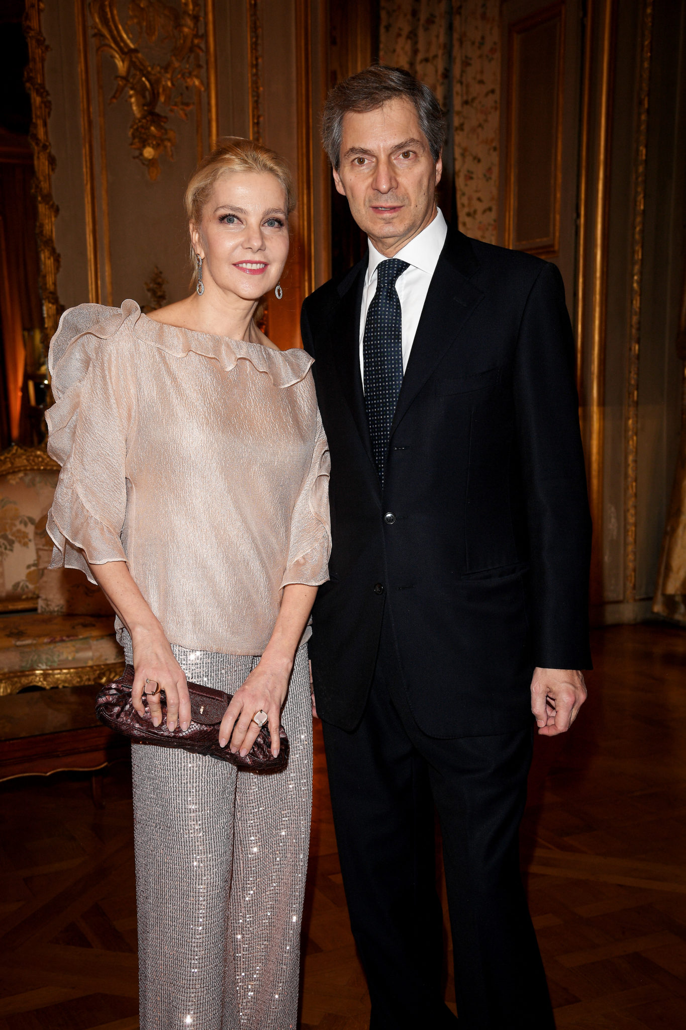 - PARIS, FRANCE – JANUARY 24: Princess Camilla, Duchess of Castro and Stephane Gerschel attend the Cocktail & Dinner for the new Pomellato campaign launch with Chiara Ferragni as part of Paris Fashion Week during Haute-Couture Spring/Summer 2018 at Ambassade d’Italie on January 24, 2018 in Paris, France. (Photo by Venturelli/Getty Images for Pomellato)