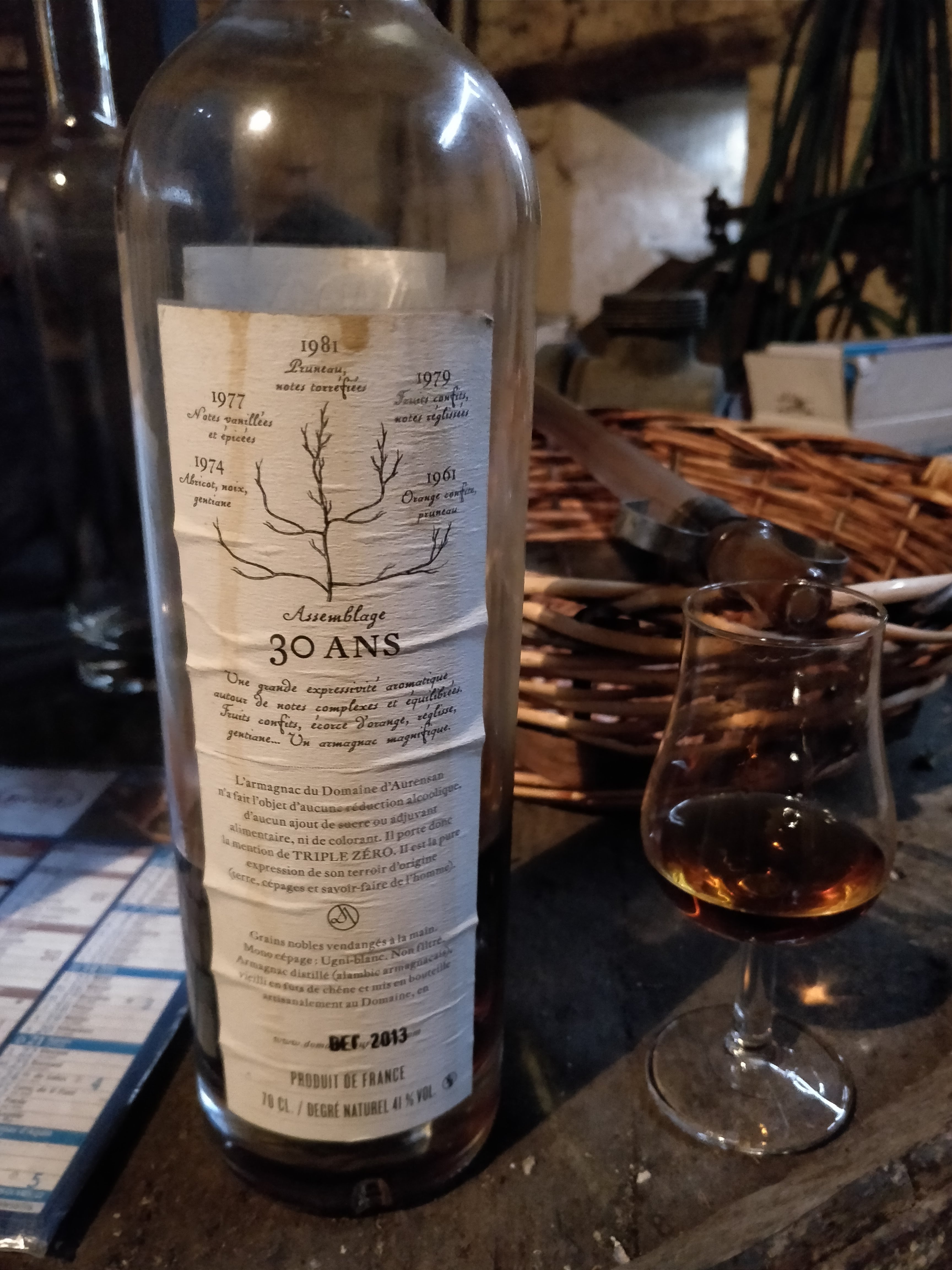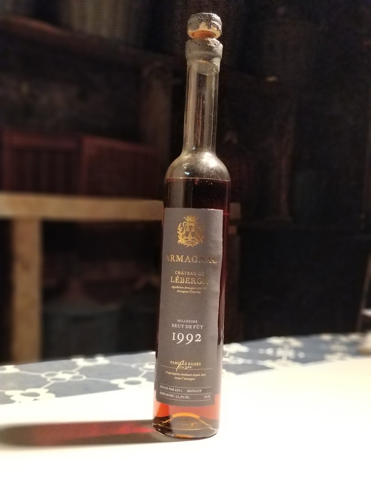Après cette première découverte authentique, nous découvrons le Château de Léberon, un Armagnac de propriétaires récoltants, artisanal et haut-de-gamme. Le Château de Léberon est une propriété familiale de plus de 12 hectares, propriétaires récoltants depuis des générations, et commercialisant exclusivement des eaux-de-vie Millésimées en qualité brut de fût, âgées de 20 ans au minimum. Les caves de cet armagnac sont dans les écuries d’un château renaissance appartenant à la famille depuis des générations, un lieu magique qui nous a scotché.