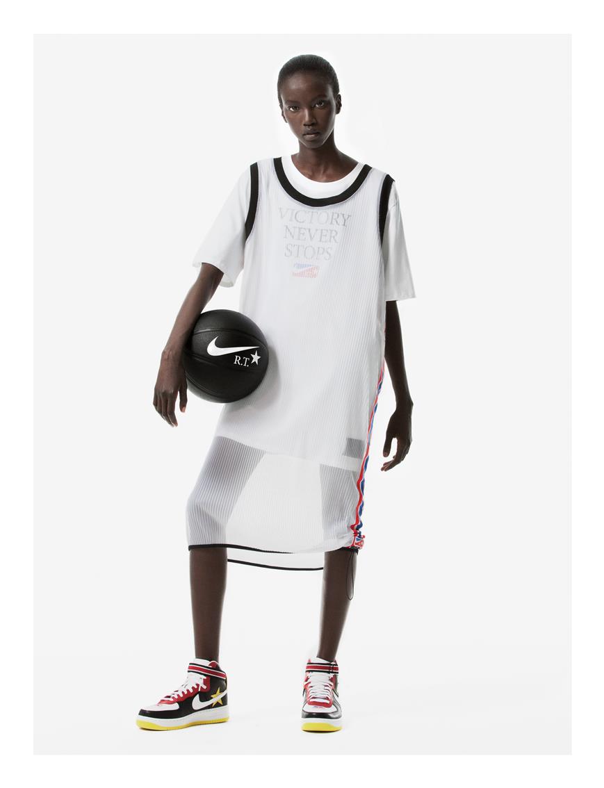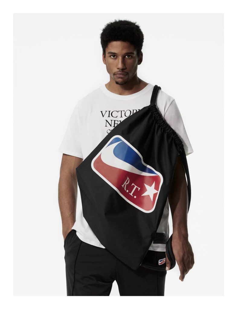 Pour Tisci, les basketteurs ne sont pas qu’une source d’inspiration stylistique, mais de véritables héros. Cette dernière collaboration avec Nike joue sur cette idée, et une autre série de graphismes et logos pour une équipe fictive, les Victorious Minotaurs, lui donne l’occasion d’envisager la collection comme un véritable uniforme hors-terrain.