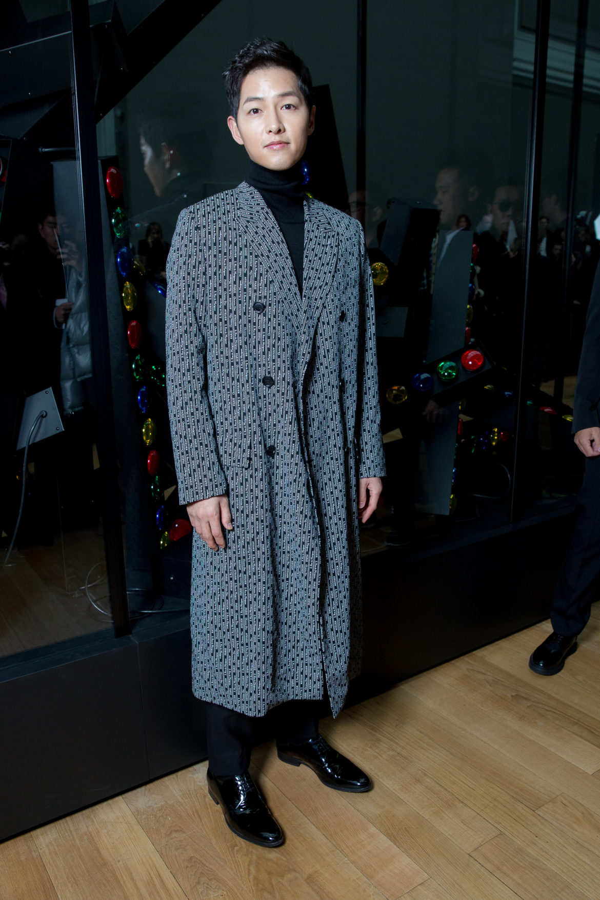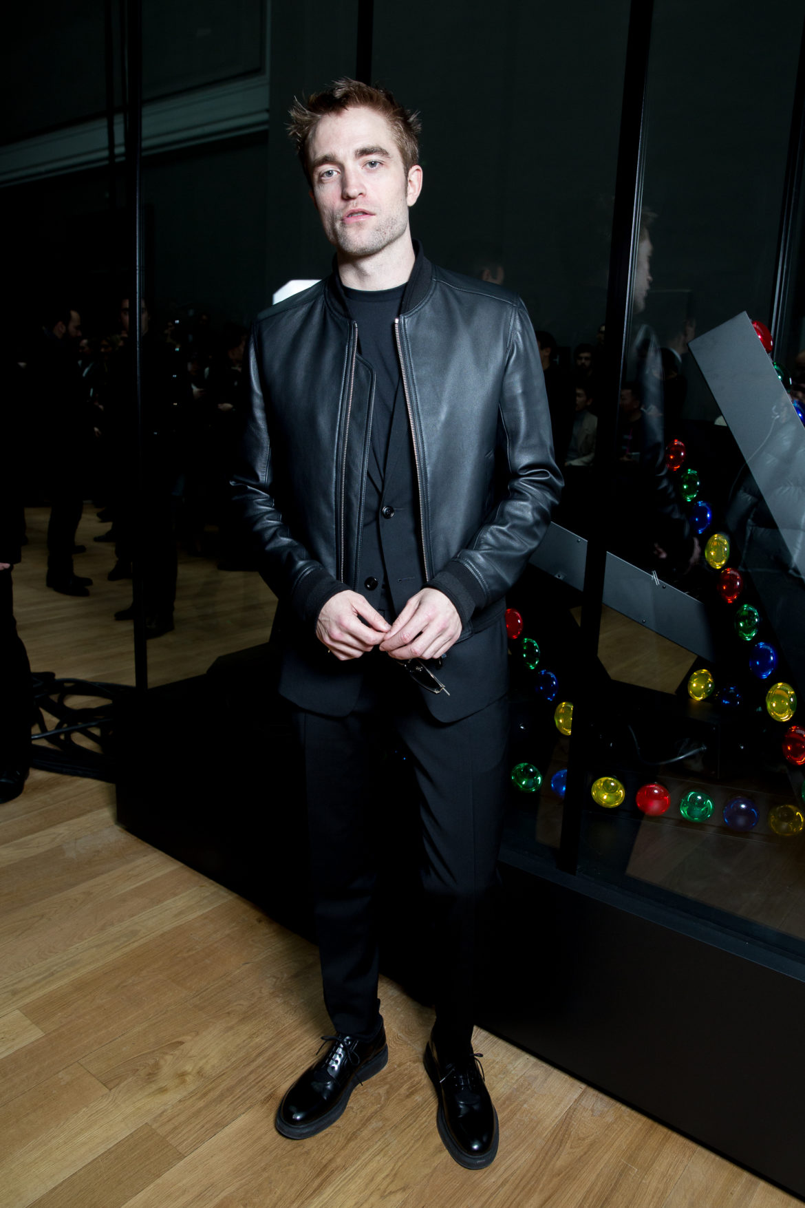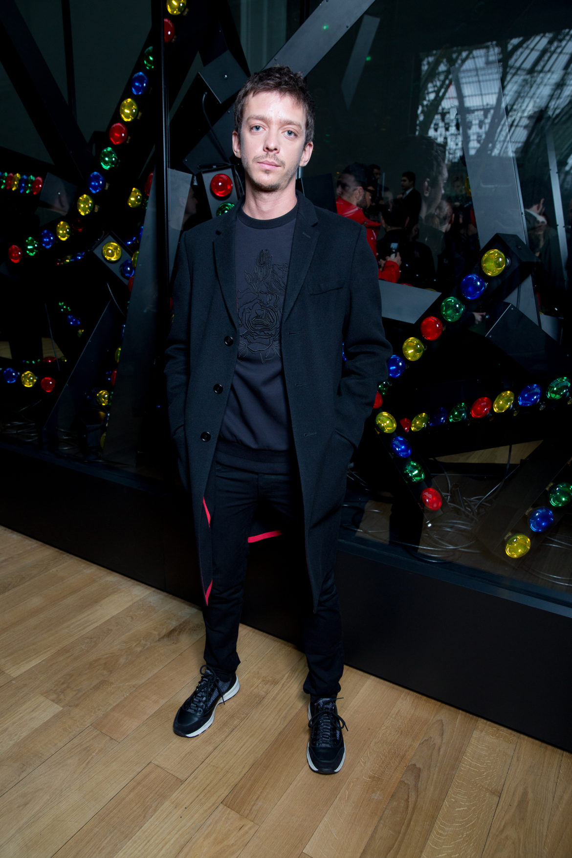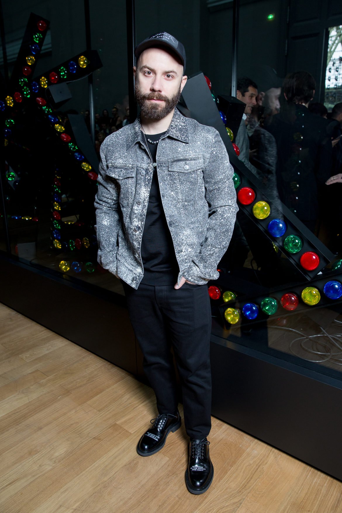 EN HOMMAGE AUX TOILES TRÈS CONSTRUITES DE MONSIEUR DIOR, DES VARIATIONS SOPHISTIQUÉES DE LA VESTE BAR METTENT EN LUMIÈRE LE SAVOIR-FAIRE DE LA MAISON. LES VESTES SONT SCULPTÉES, EN GRAIN DE POUDRE DE LAINE NOIRE, AVEC DES REVERS SUPERPOSÉS, DES POCHES PLAQUÉES ET DES DOUBLE-BOUTONNAGES FAÇON OFFICIER. FACE À CETTE ÉLÉGANCE EXTRÊME, LE MOTIF DU TATOUAGE DEVIENT UN SYMBOLE GRAPHIQUE ‘RAVE’ QUE L’ON RETROUVE AU FIL DE LA COLLECTION, SOUS FORME DE BLASON OU EN IMPRIMÉ ALL OVER. LA SUPERPOSITION EN TROMPE L’ŒIL DE POLOS EN MAILLE, DÉBARDEURS ET COLS ROULÉS DANS DES TONS DE VERT SAPIN, POURPRE ET JAUNE FLUO EST UN CLIN D’ŒIL AU VESTIAIRE TEENAGER, JUXTAPOSÉ À DES TRENCHS STRUCTURÉS ET MANTEAUX EN CACHEMIRE DOUBLE FACE. UN AUTRE NIVEAU DE SUPERPOSITIONS APPARAIT AVEC DES PANTALONS TAILLE HAUTE À PLIS EN LAINAGE OU EN DENIM DÉLAVÉ PORTÉS SOUS DES PARKAS COURTES EN NYLON, DES DUFFLE-COAT, BLOUSONS EN PEAU LAINÉE ET COUPE-VENT TECHNIQUE.