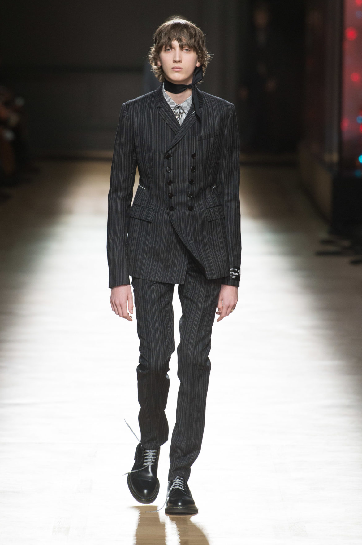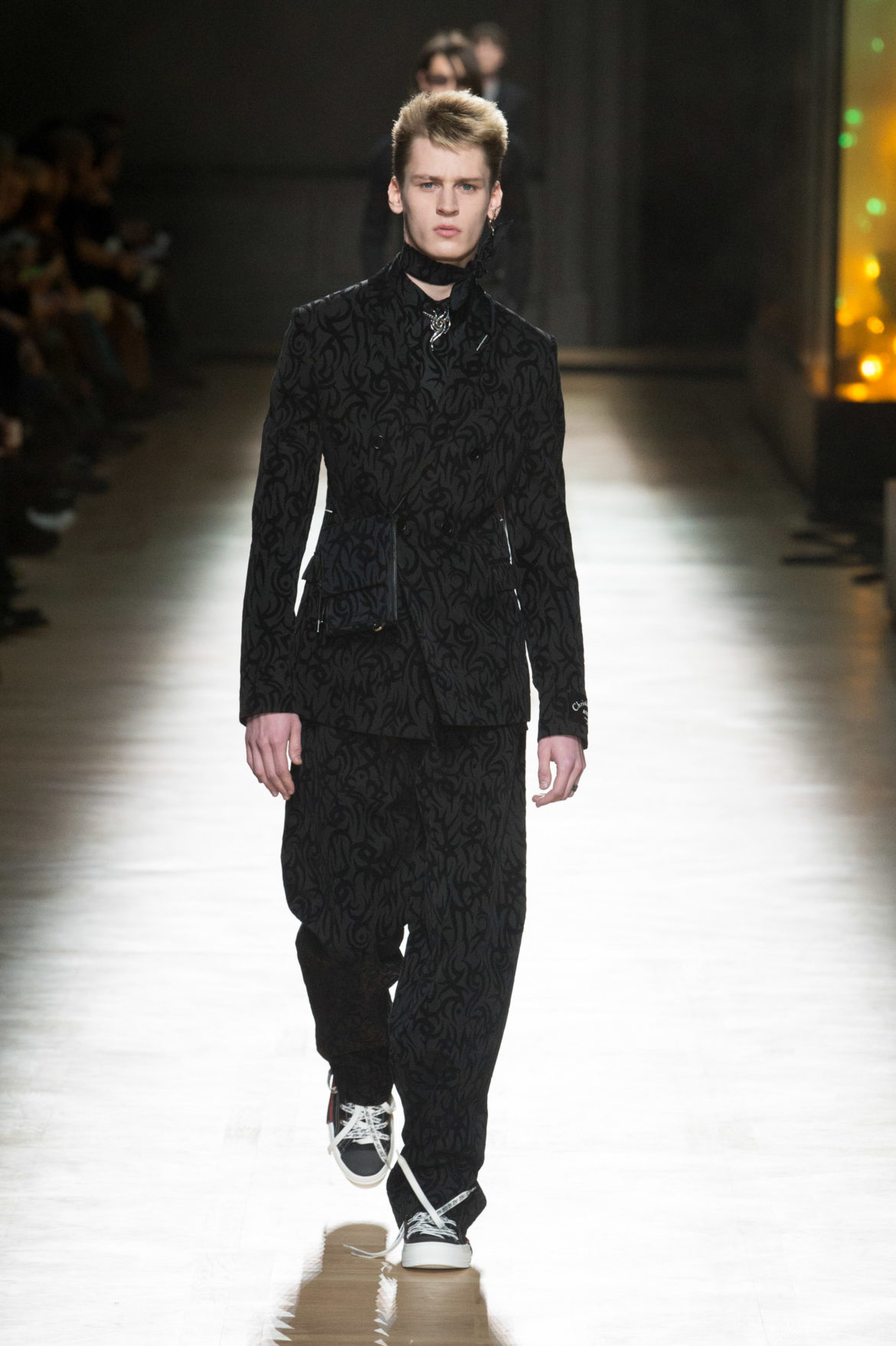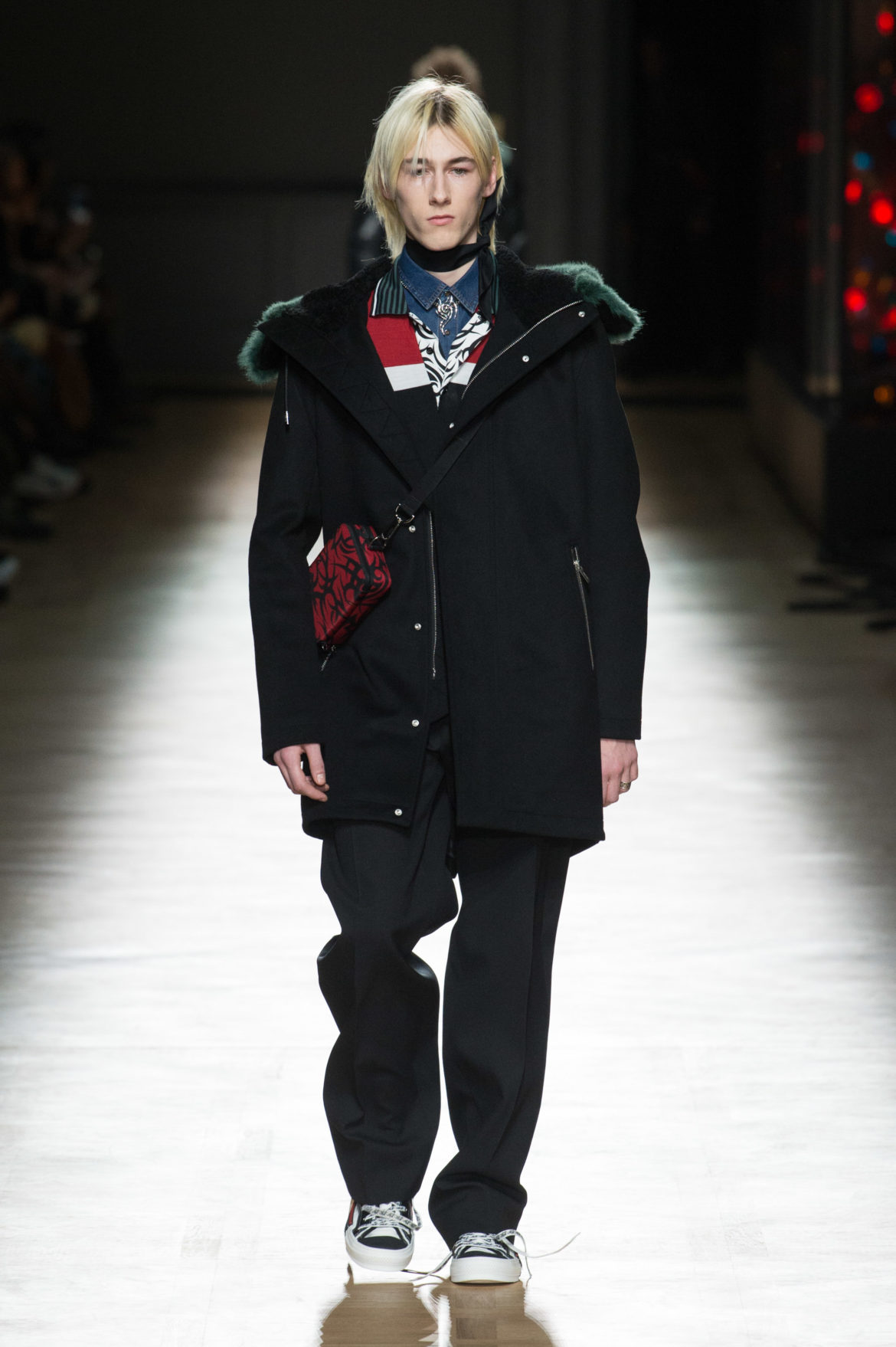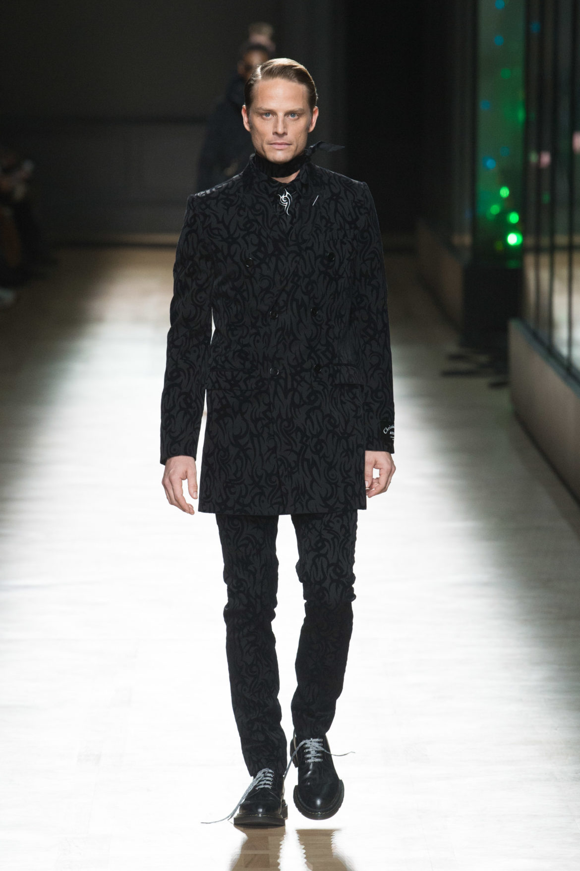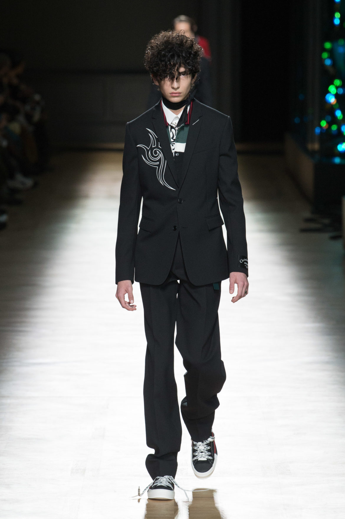 JEUNESSE : LA LIBERTÉ D’INCARNER UN IDÉAL AVEC UNE INSOUCIANCE ABSOLUE. MATURITÉ : LE SENTIMENT D’OBSERVER LES ÉVÉNEMENTS AVEC UNE CERTAINE EXPÉRIENCE. LA COLLECTION DIOR HOMME POUR L’HIVER 2018-2019 CRÉE PAR KRIS VAN ASSCHE EXPRIME CETTE DUALITÉ, EN PROVOQUANT UNE ÉVOLUTION CONSTANTE DES CODES FORMELS ET INFORMELS QUI DÉFINISSENT LA MODE MASCULINE AUJOURD’HUI. LA DÉCONSTRUCTION MÉTICULEUSE DU COSTUME DIOR HOMME EN SYMBIOSE AVEC LE SYMBOLISME DE LA CULTURE 90S DU TATOUAGE, OPPOSANT AINSI LA FINESSE DU SAVOIR-FAIRE TAILLEUR DE L’ATELIER DIOR HOMME ET LES RÈGLES D’UNE CERTAINE NOSTALGIE URBAINE.