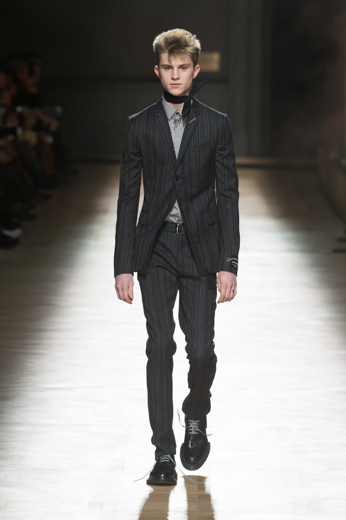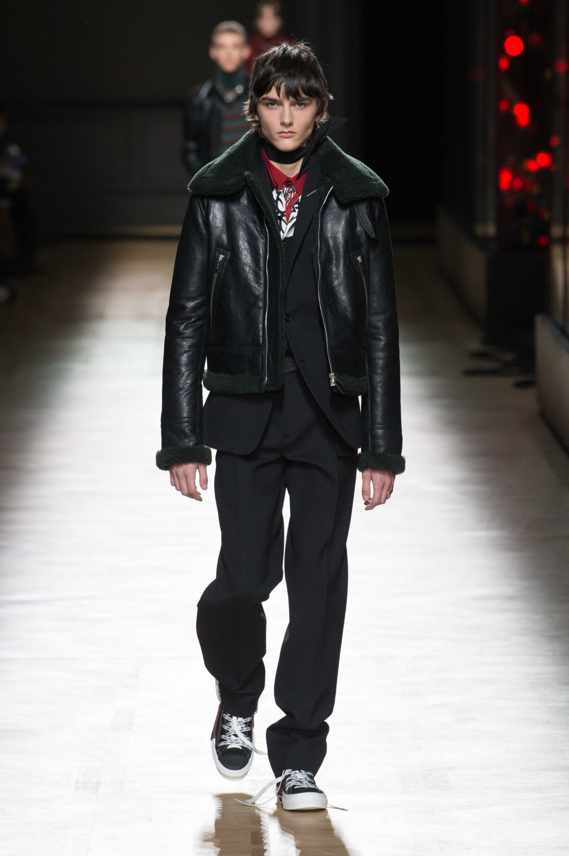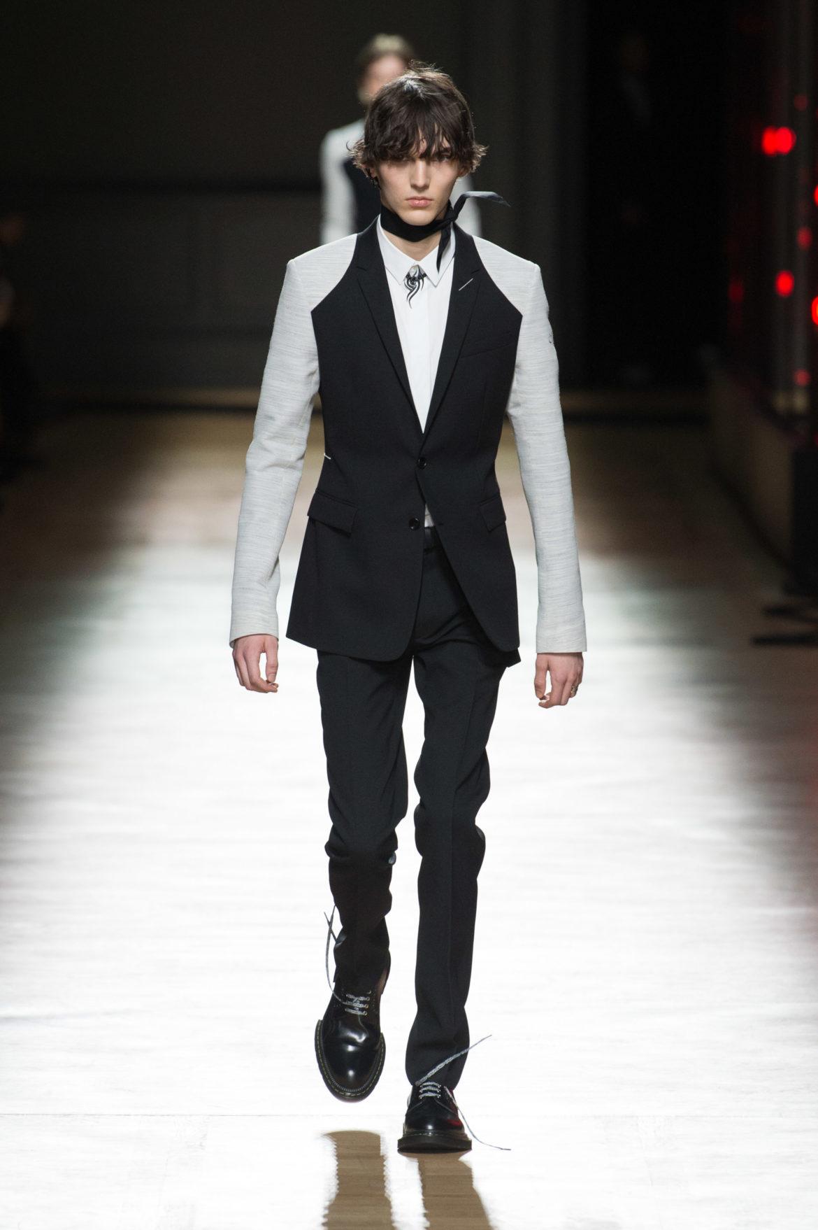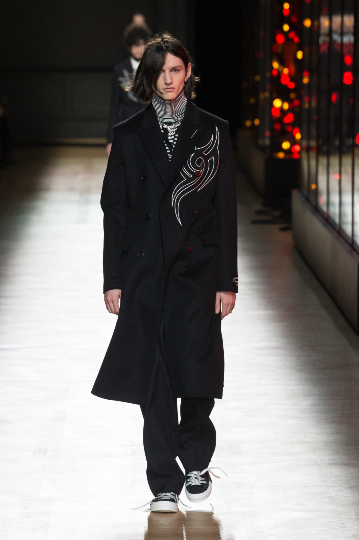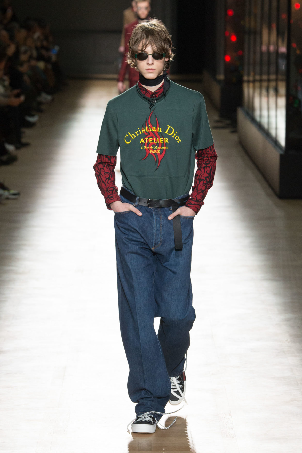 JEUNESSE : LA LIBERTÉ D’INCARNER UN IDÉAL AVEC UNE INSOUCIANCE ABSOLUE. MATURITÉ : LE SENTIMENT D’OBSERVER LES ÉVÉNEMENTS AVEC UNE CERTAINE EXPÉRIENCE. LA COLLECTION DIOR HOMME POUR L’HIVER 2018-2019 CRÉE PAR KRIS VAN ASSCHE EXPRIME CETTE DUALITÉ, EN PROVOQUANT UNE ÉVOLUTION CONSTANTE DES CODES FORMELS ET INFORMELS QUI DÉFINISSENT LA MODE MASCULINE AUJOURD’HUI. LA DÉCONSTRUCTION MÉTICULEUSE DU COSTUME DIOR HOMME EN SYMBIOSE AVEC LE SYMBOLISME DE LA CULTURE 90S DU TATOUAGE, OPPOSANT AINSI LA FINESSE DU SAVOIR-FAIRE TAILLEUR DE L’ATELIER DIOR HOMME ET LES RÈGLES D’UNE CERTAINE NOSTALGIE URBAINE.