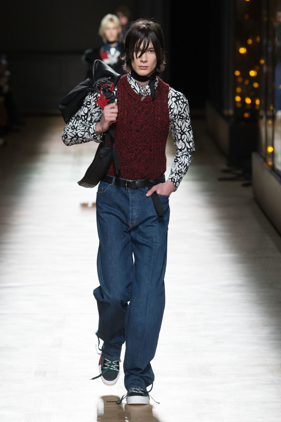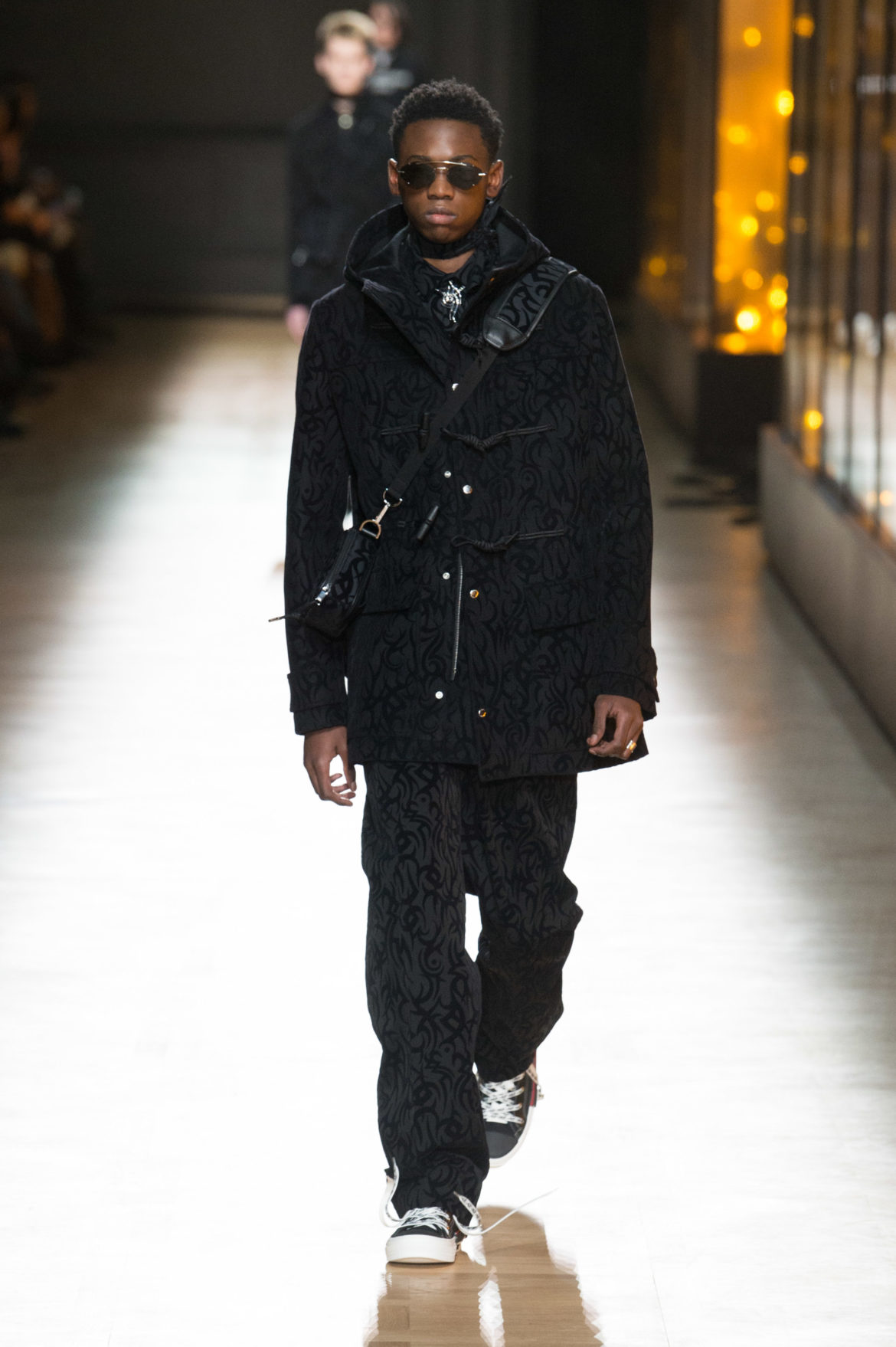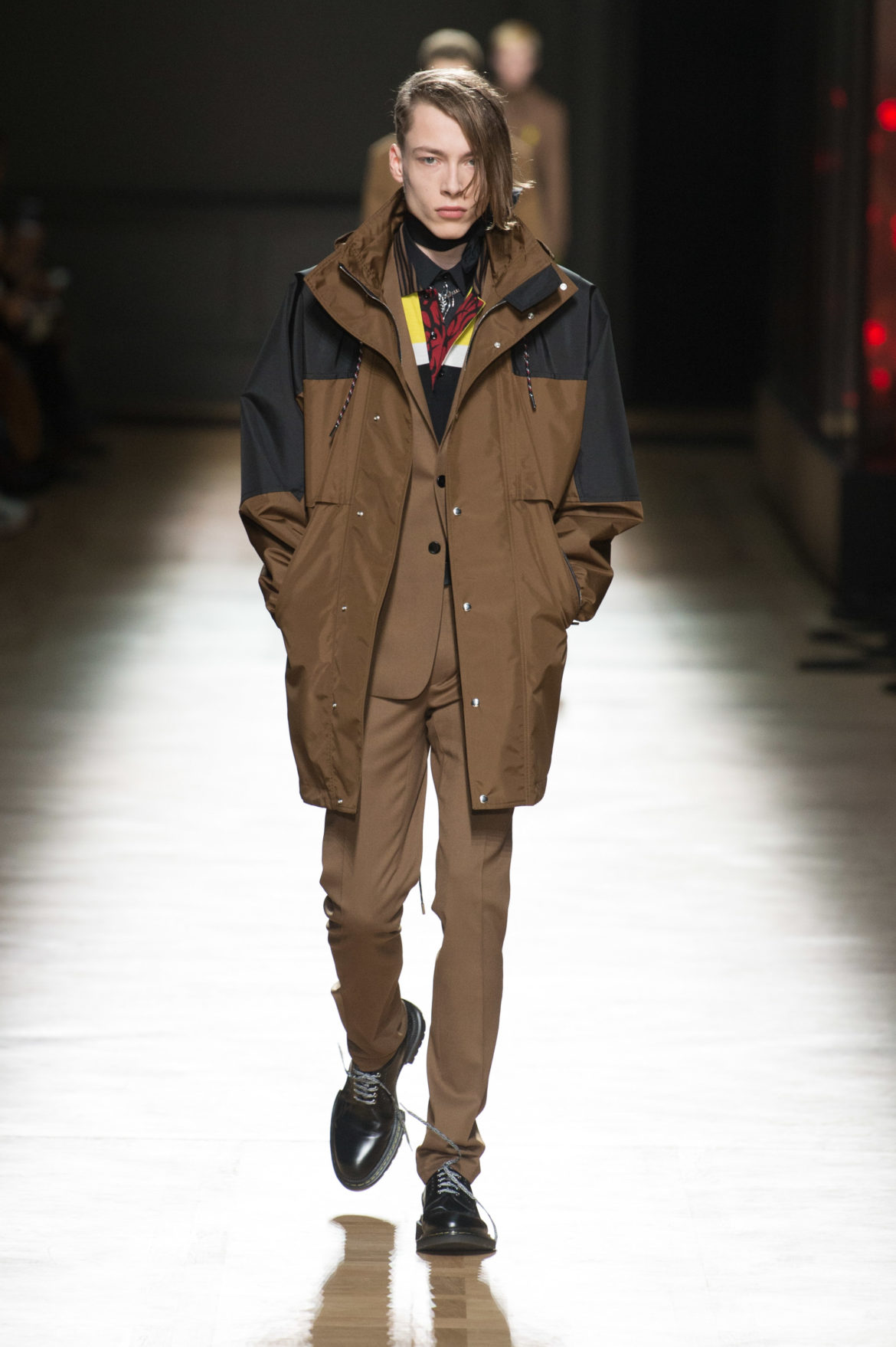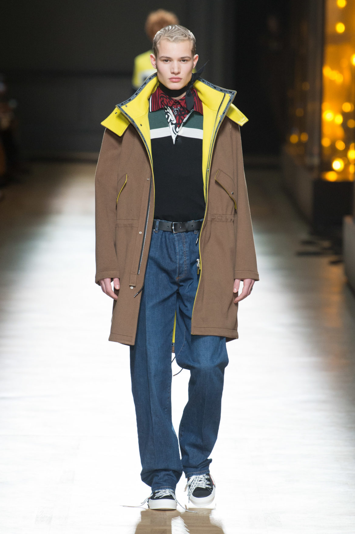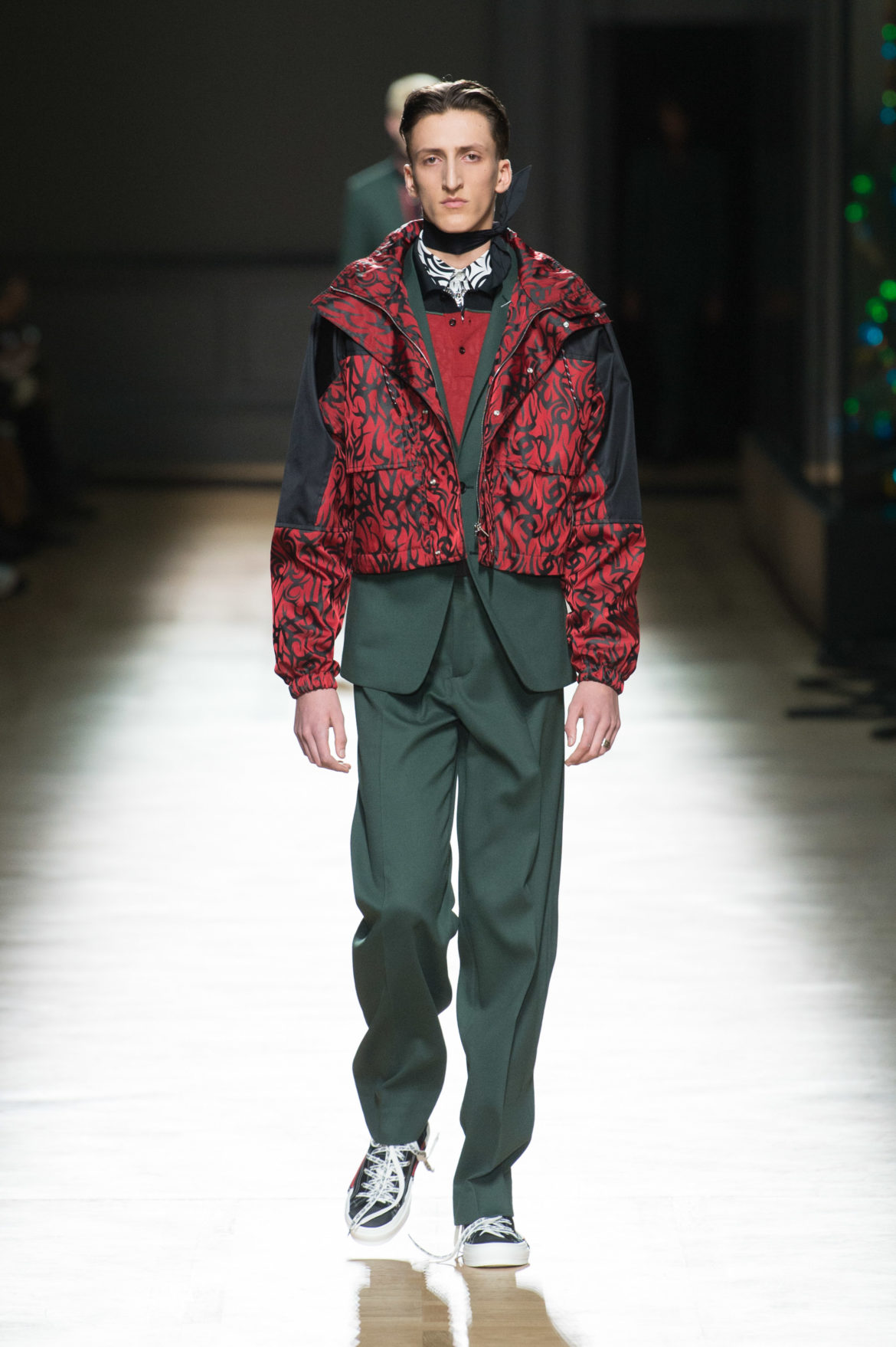 JEUNESSE : LA LIBERTÉ D’INCARNER UN IDÉAL AVEC UNE INSOUCIANCE ABSOLUE. MATURITÉ : LE SENTIMENT D’OBSERVER LES ÉVÉNEMENTS AVEC UNE CERTAINE EXPÉRIENCE. LA COLLECTION DIOR HOMME POUR L’HIVER 2018-2019 CRÉE PAR KRIS VAN ASSCHE EXPRIME CETTE DUALITÉ, EN PROVOQUANT UNE ÉVOLUTION CONSTANTE DES CODES FORMELS ET INFORMELS QUI DÉFINISSENT LA MODE MASCULINE AUJOURD’HUI. LA DÉCONSTRUCTION MÉTICULEUSE DU COSTUME DIOR HOMME EN SYMBIOSE AVEC LE SYMBOLISME DE LA CULTURE 90S DU TATOUAGE, OPPOSANT AINSI LA FINESSE DU SAVOIR-FAIRE TAILLEUR DE L’ATELIER DIOR HOMME ET LES RÈGLES D’UNE CERTAINE NOSTALGIE URBAINE.