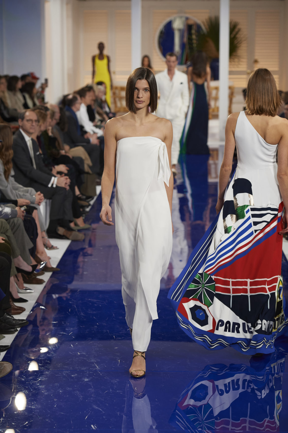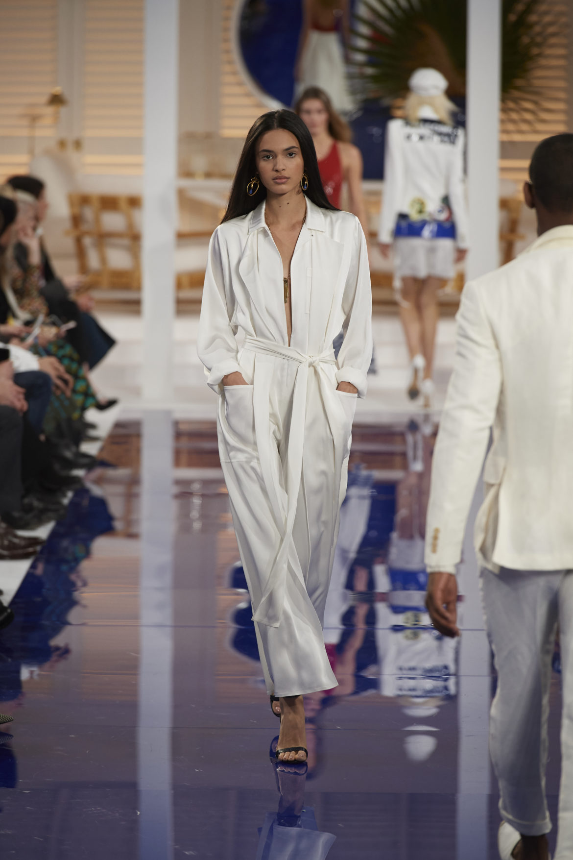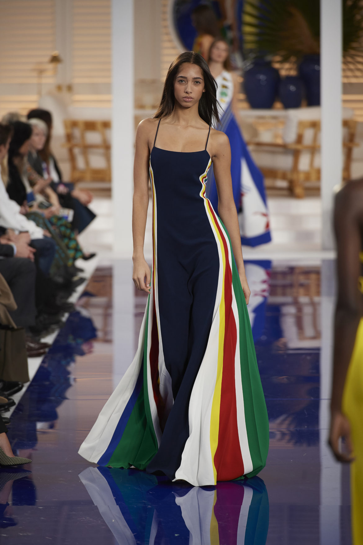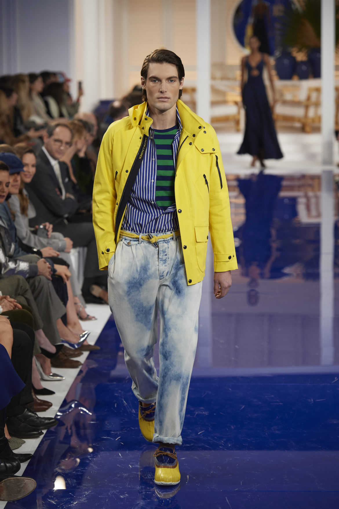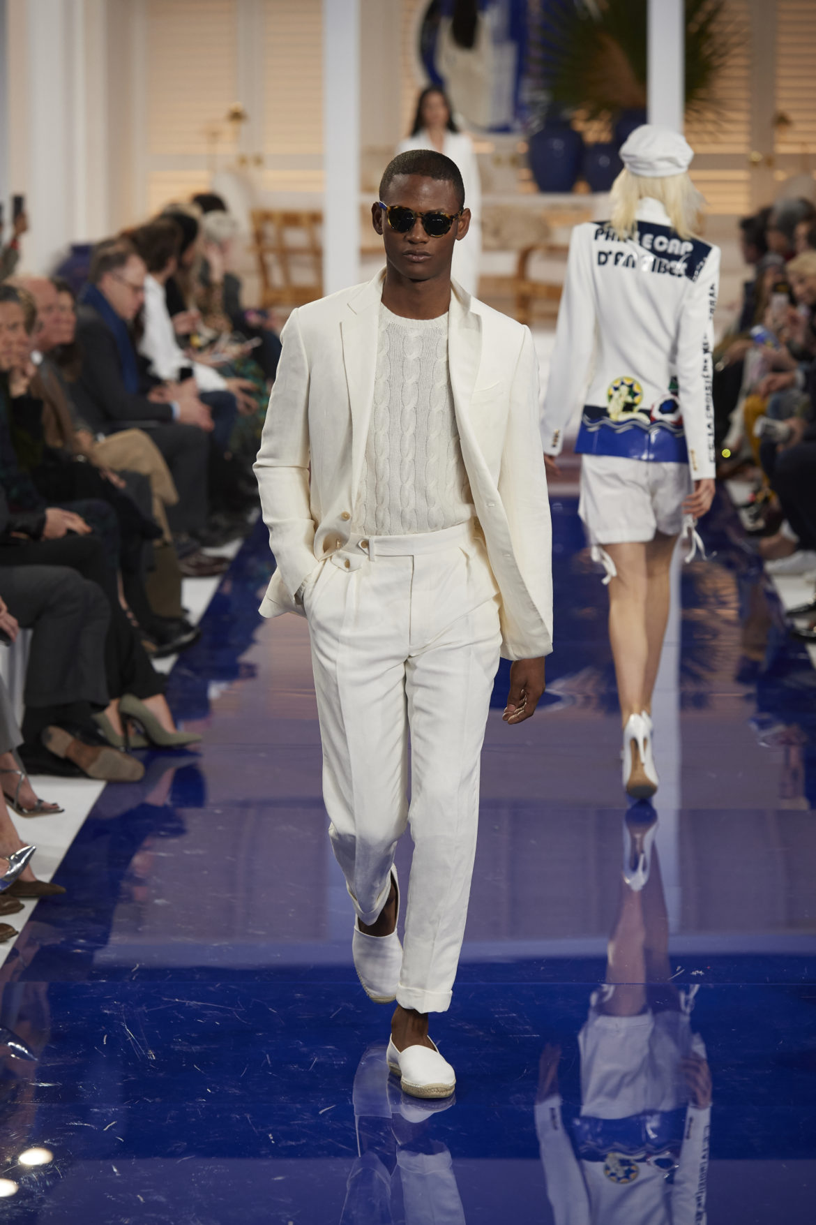The runway presentation transported guests to a tranquil Jamaican retreat, inspired by Ralph Lauren’s iconic home in Montego Bay.