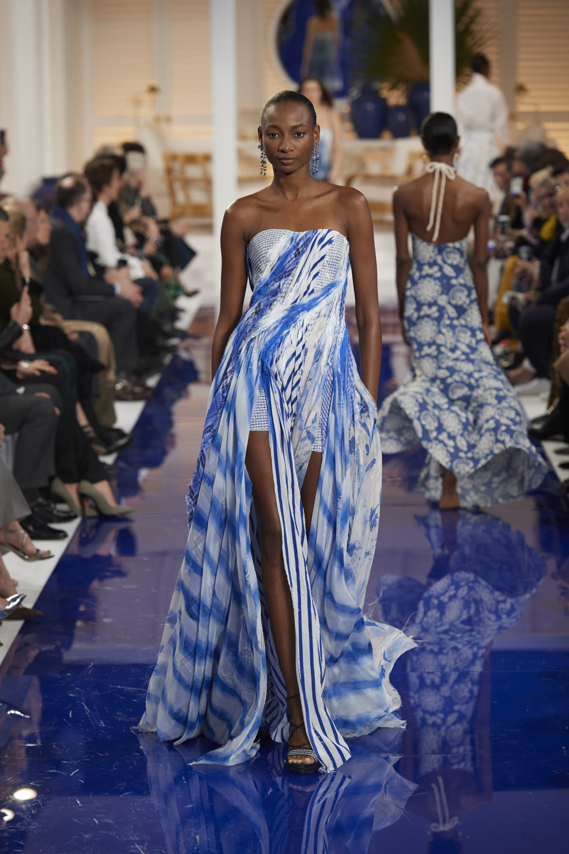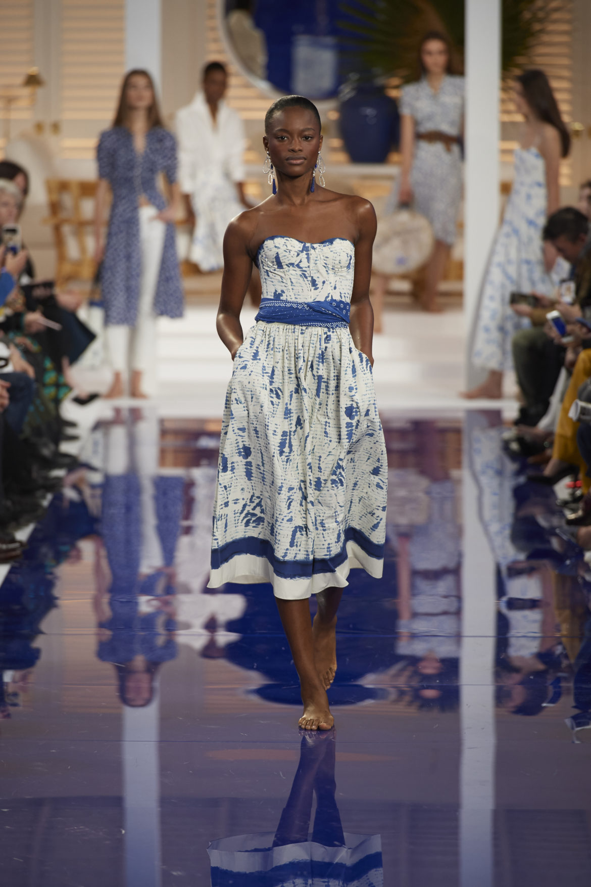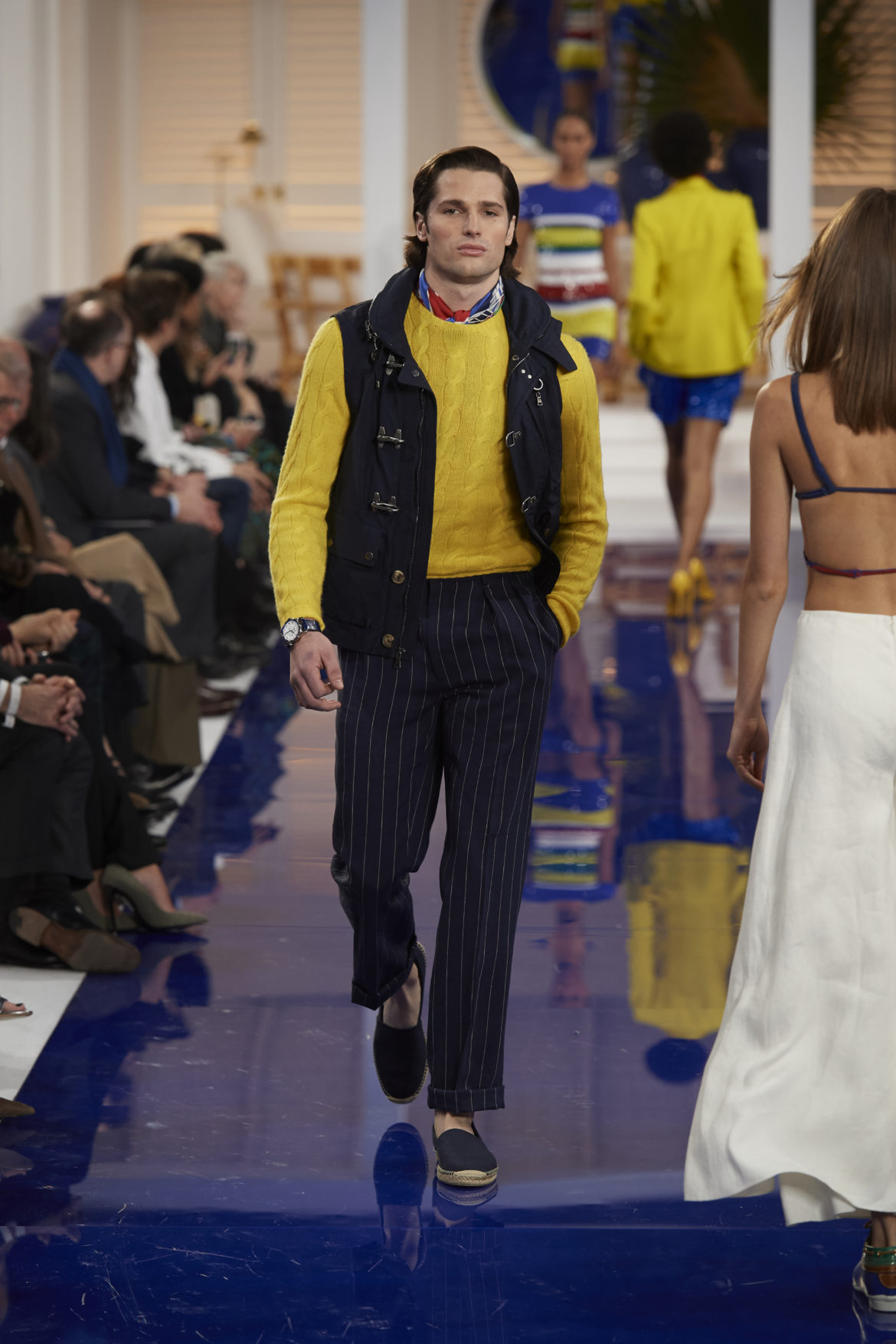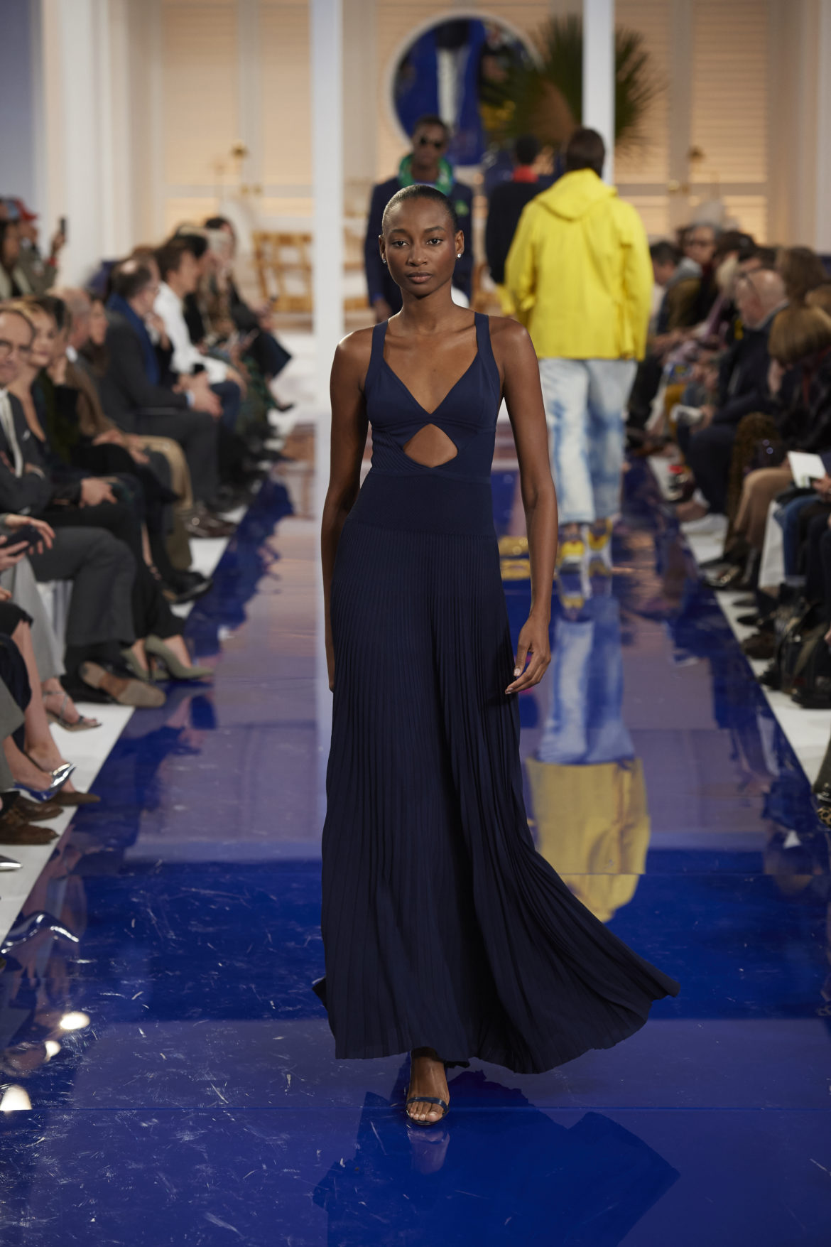 The runway presentation transported guests to a tranquil Jamaican retreat, inspired by Ralph Lauren’s iconic home in Montego Bay.