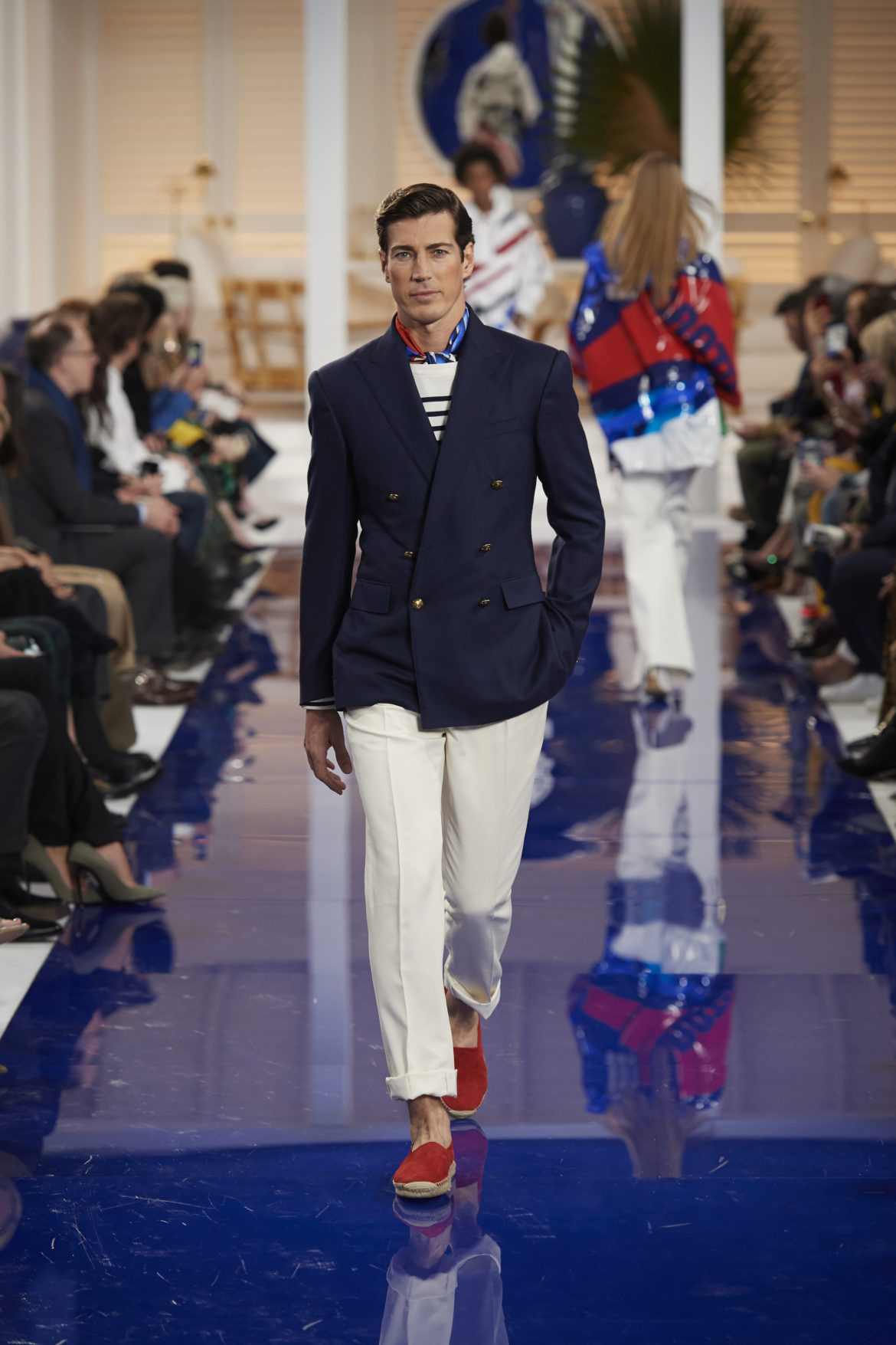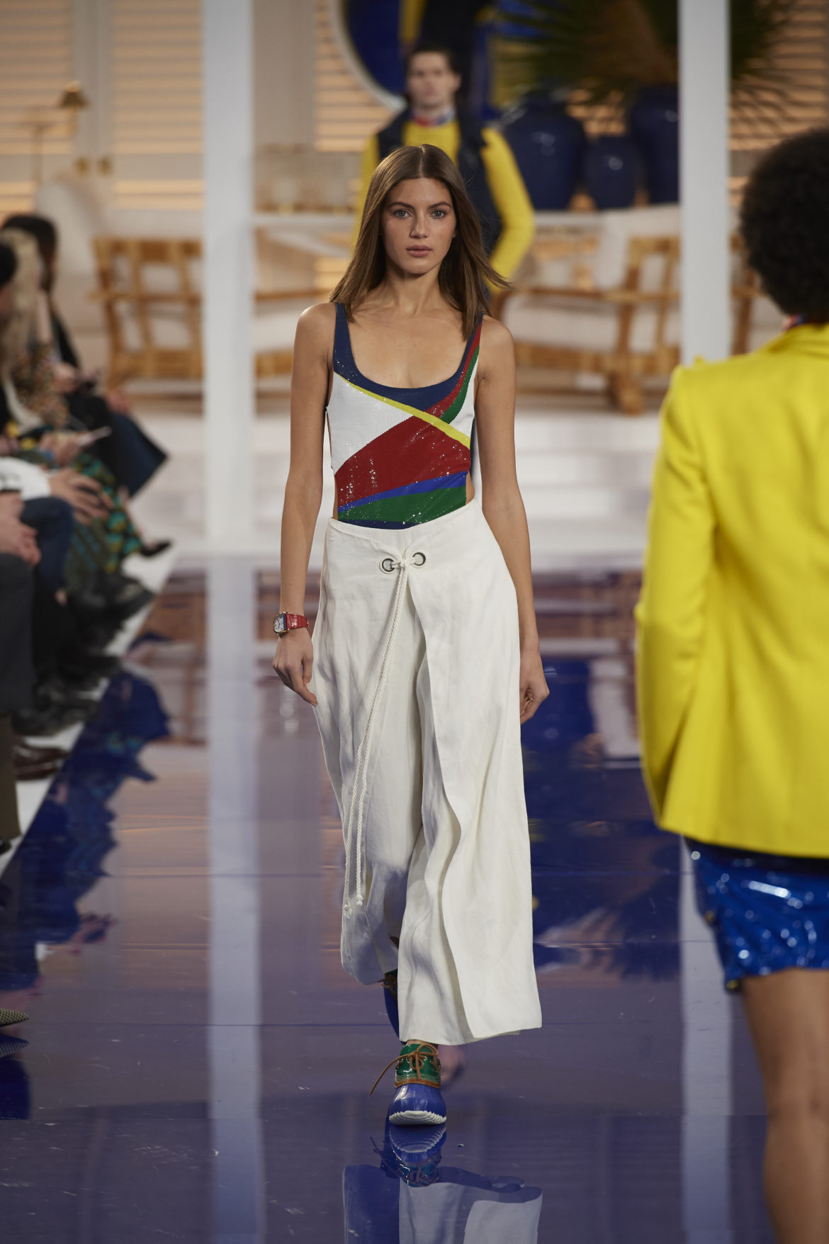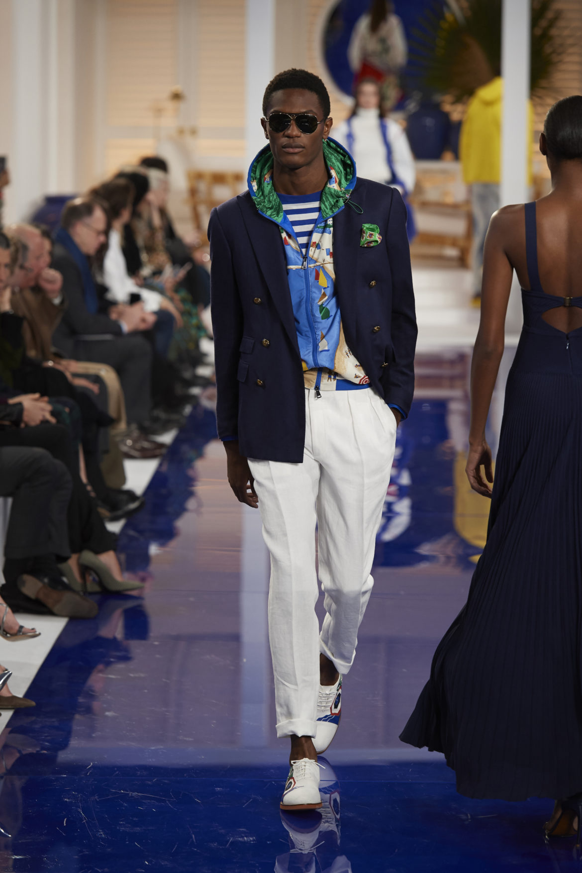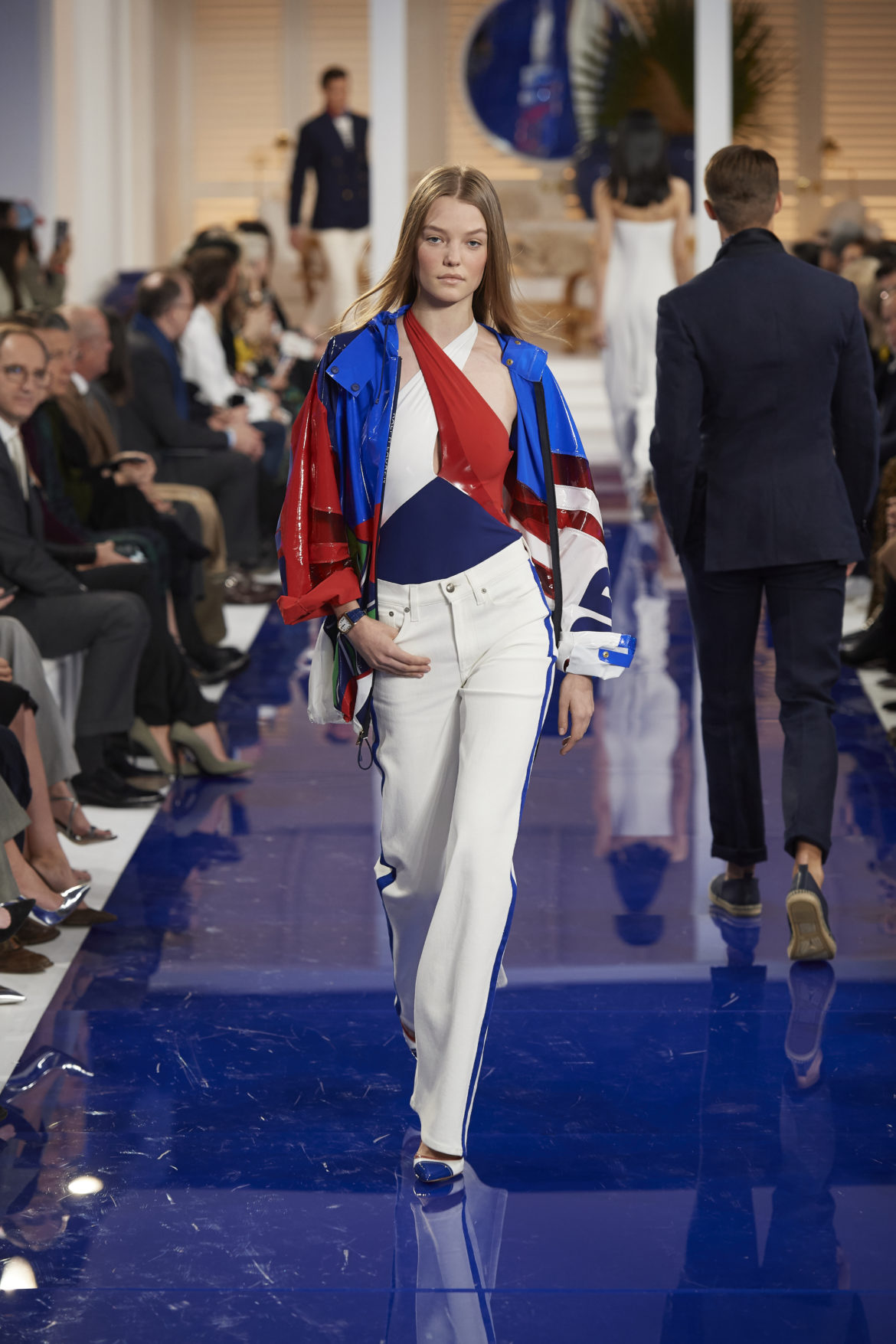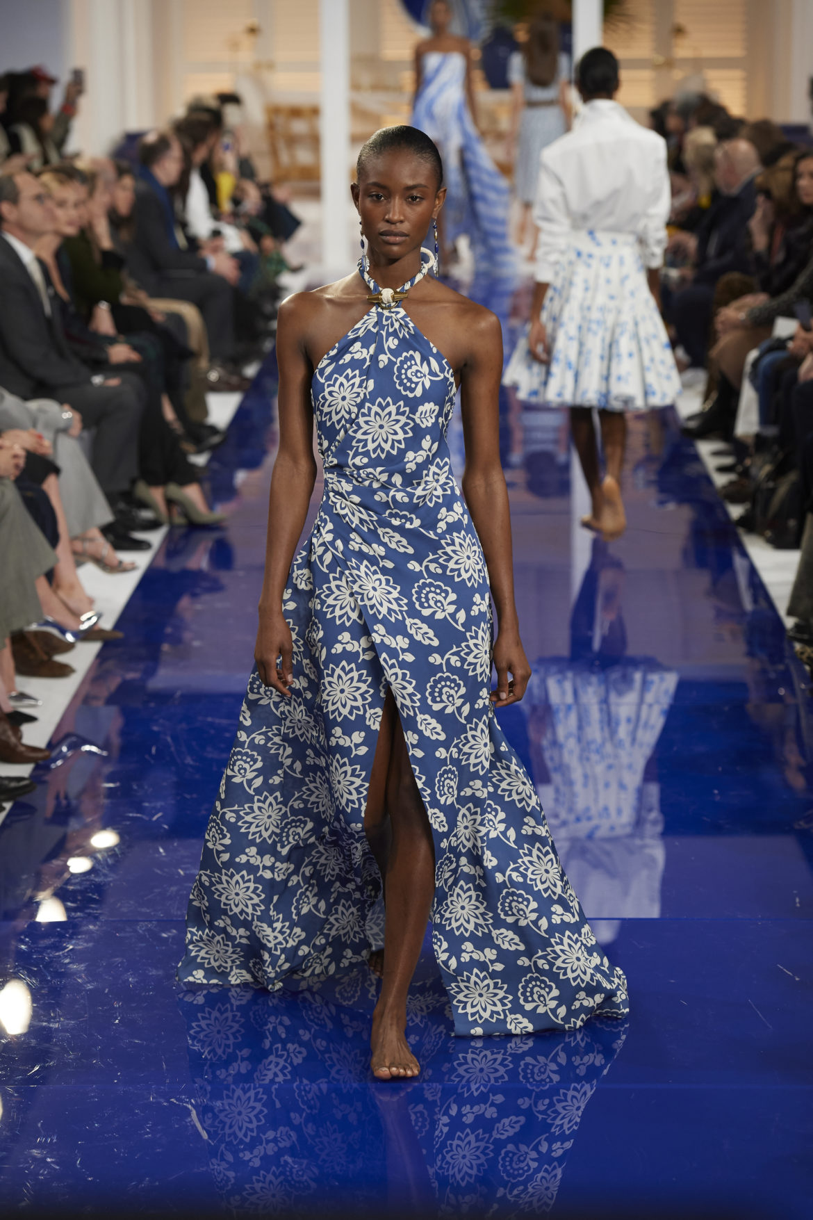 The runway presentation transported guests to a tranquil Jamaican retreat, inspired by Ralph Lauren’s iconic home in Montego Bay.