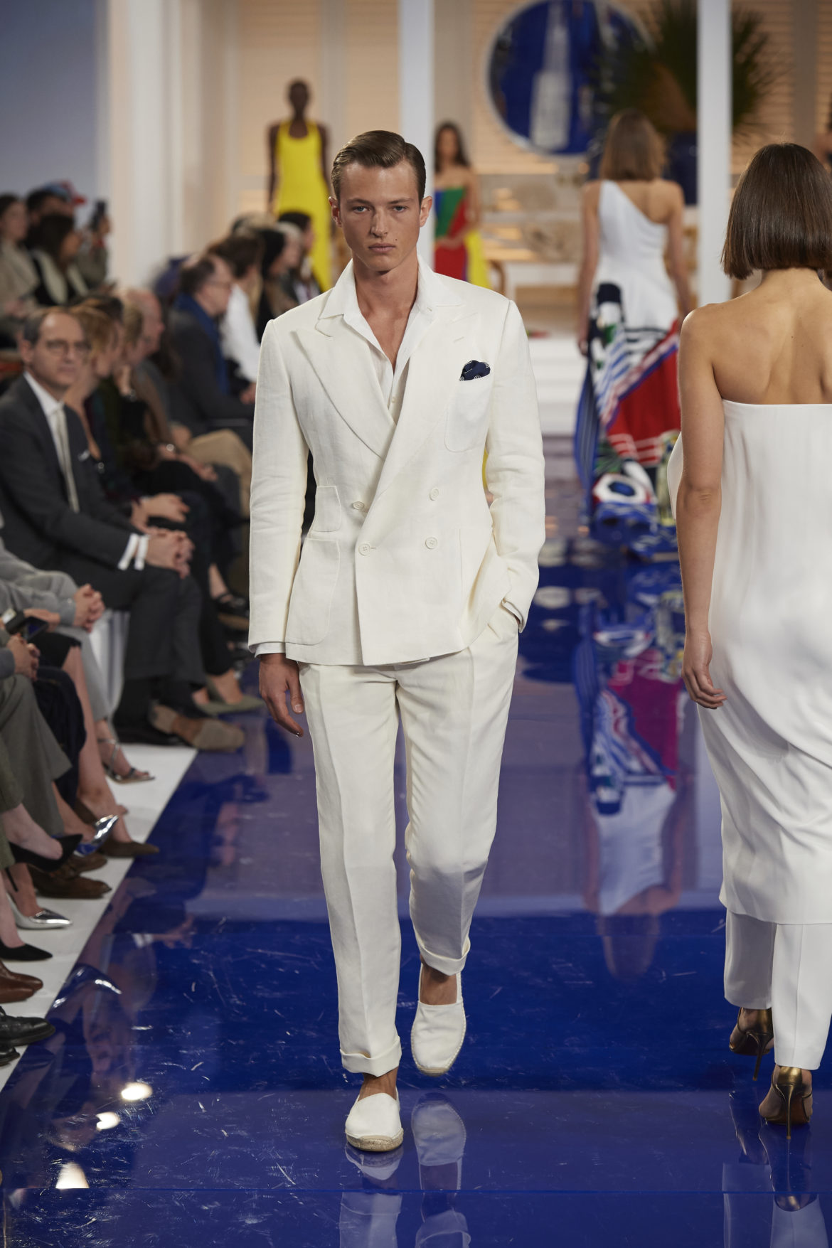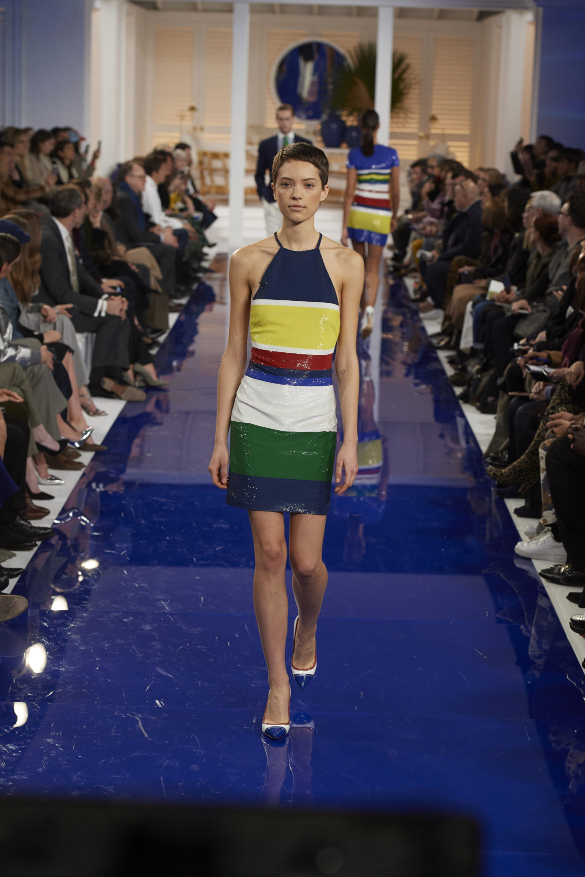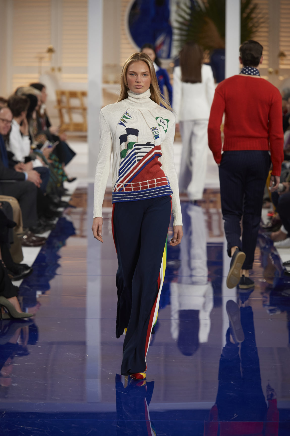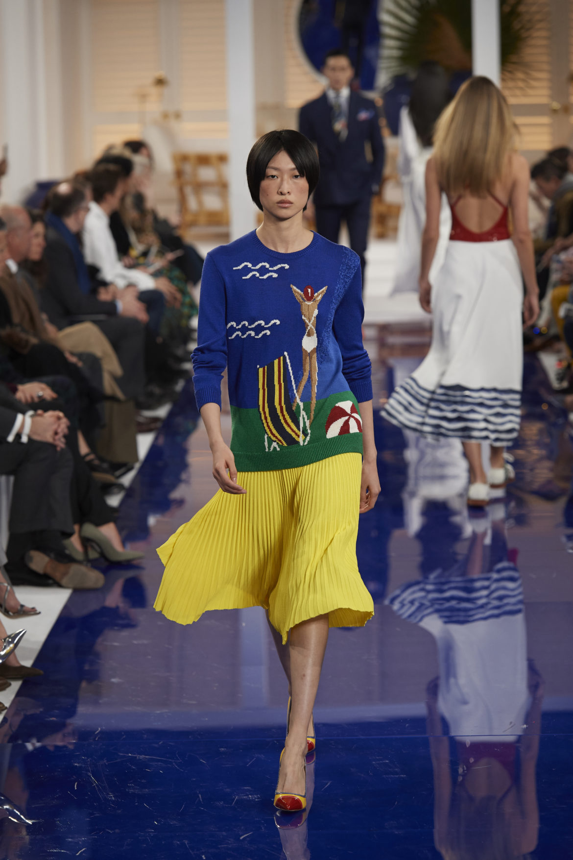 The runway presentation transported guests to a tranquil Jamaican retreat, inspired by Ralph Lauren’s iconic home in Montego Bay.