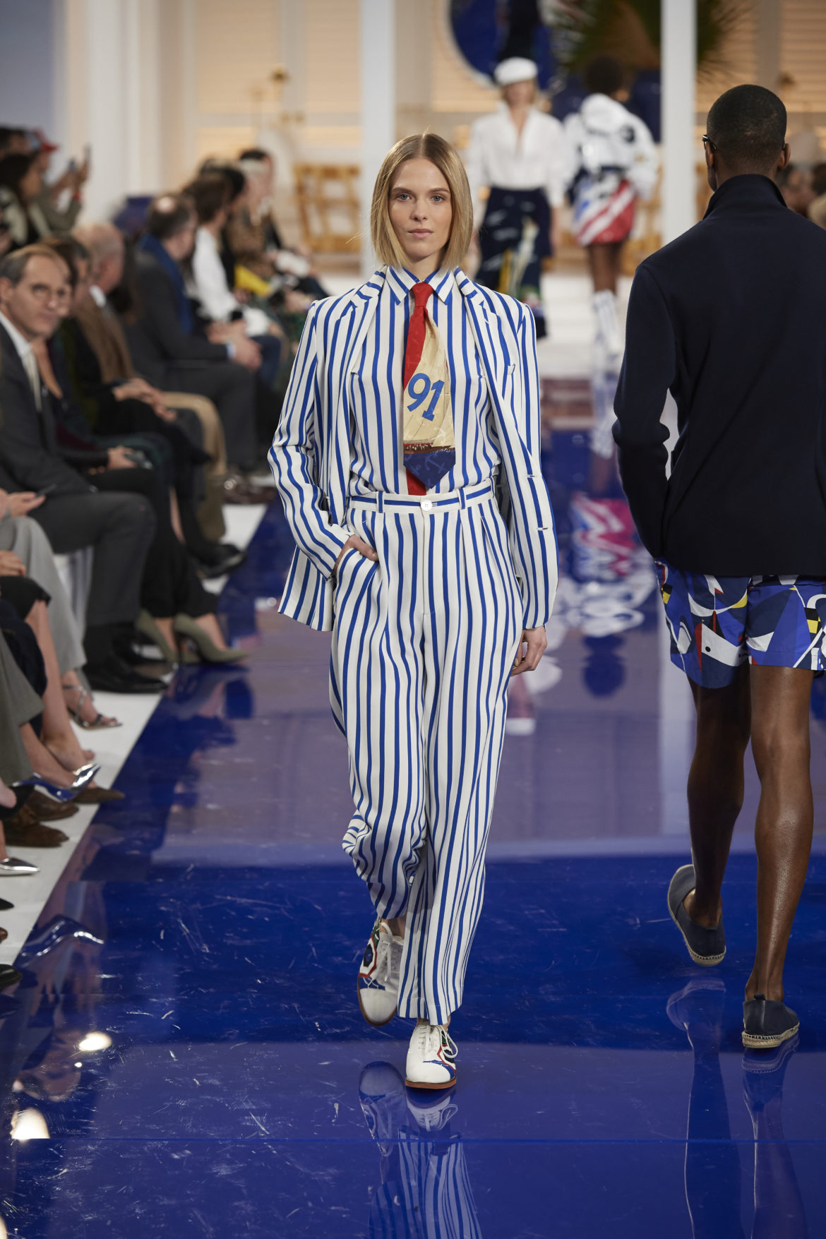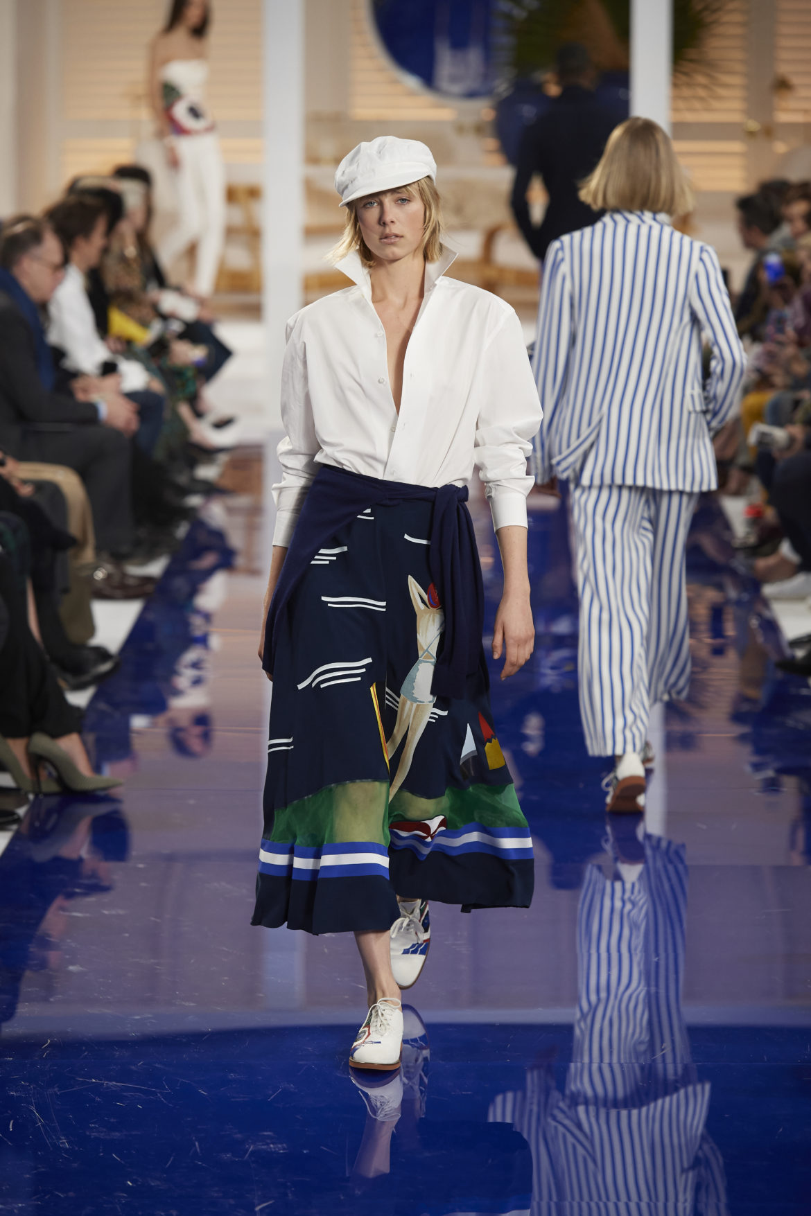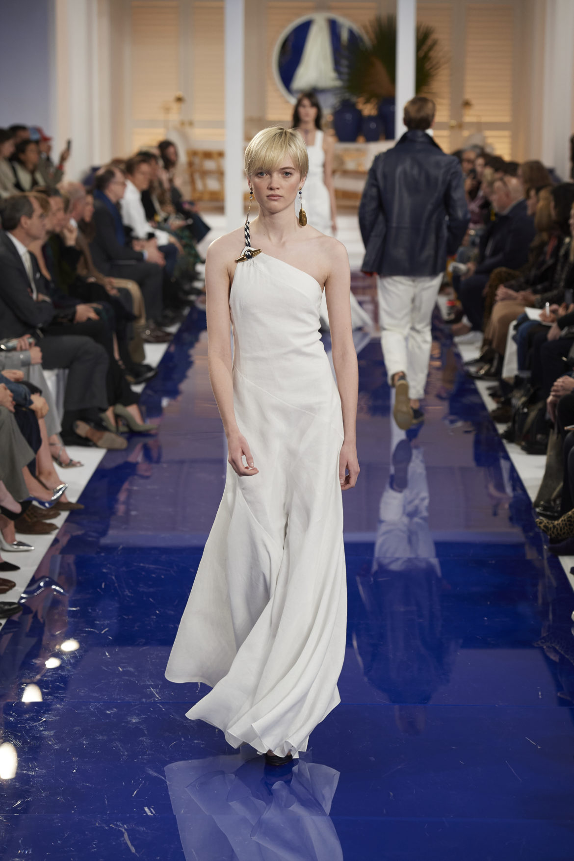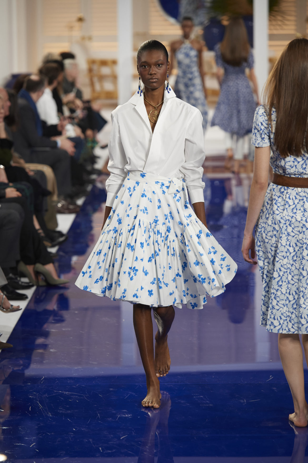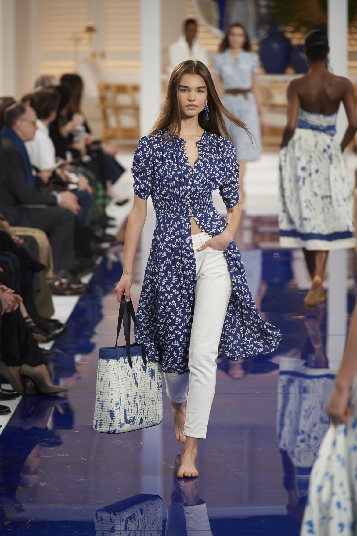 The runway presentation transported guests to a tranquil Jamaican retreat, inspired by Ralph Lauren’s iconic home in Montego Bay.