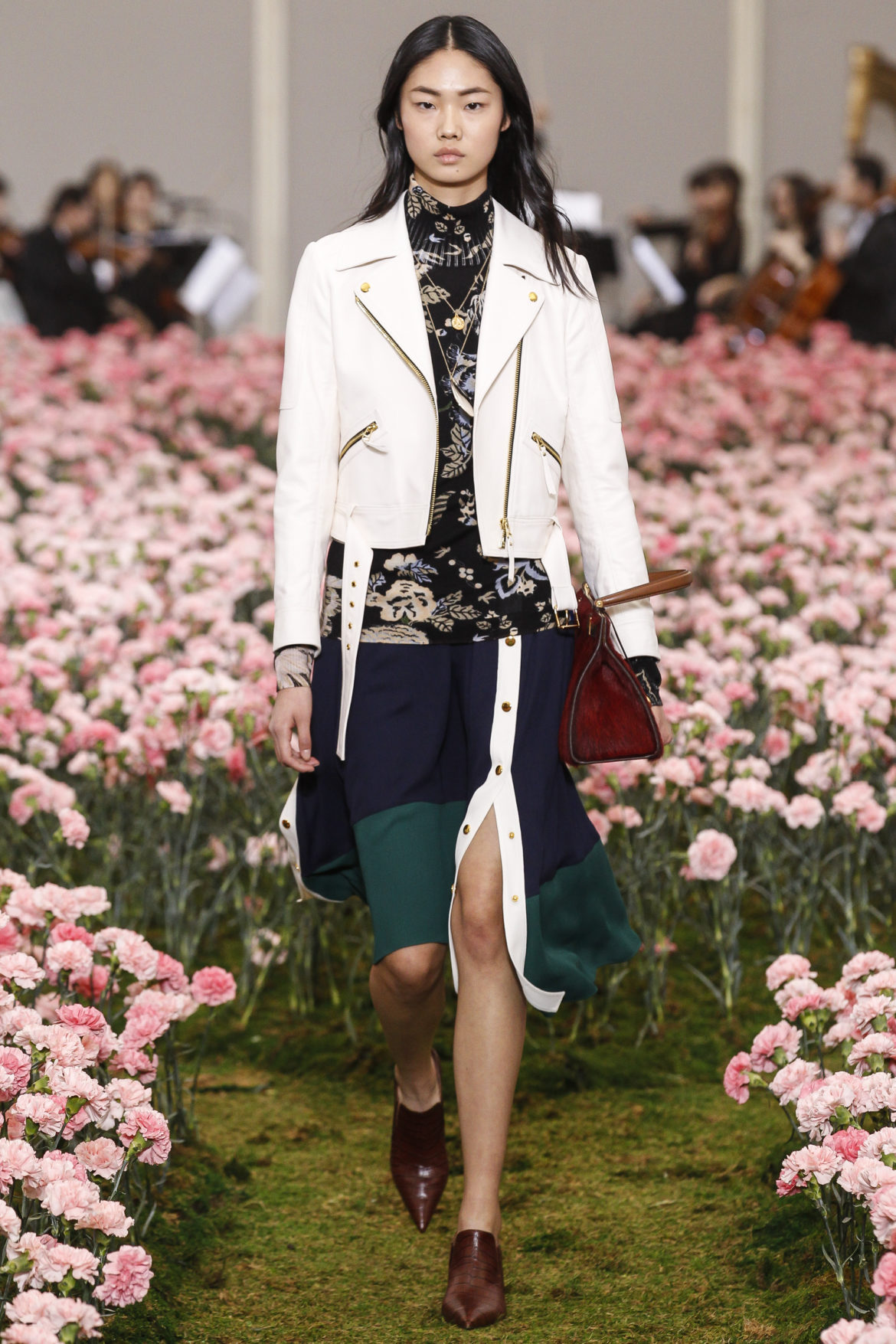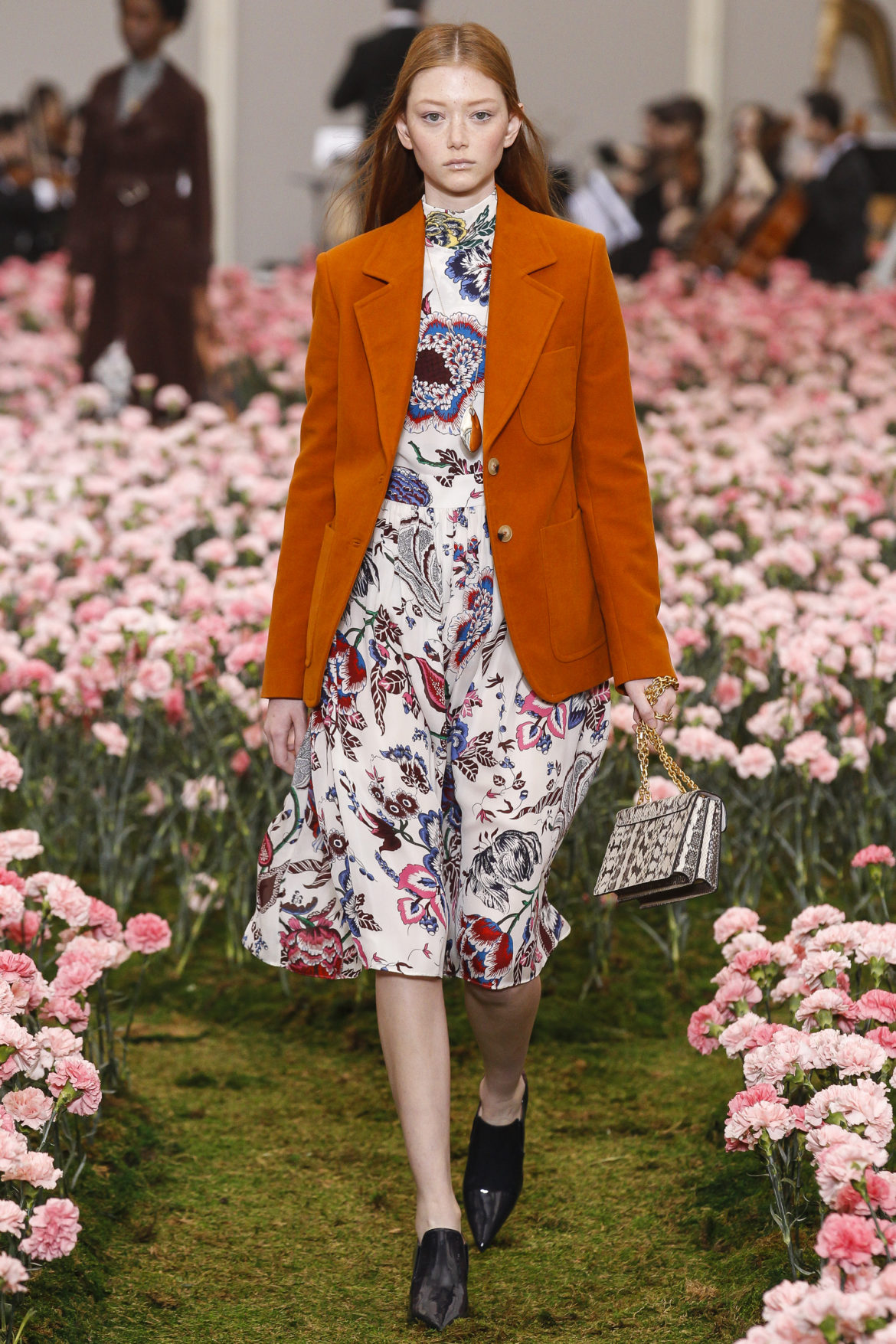 tailoring, a modern take on chintz, and contrasts of texture and print. Accessories carry these ideas