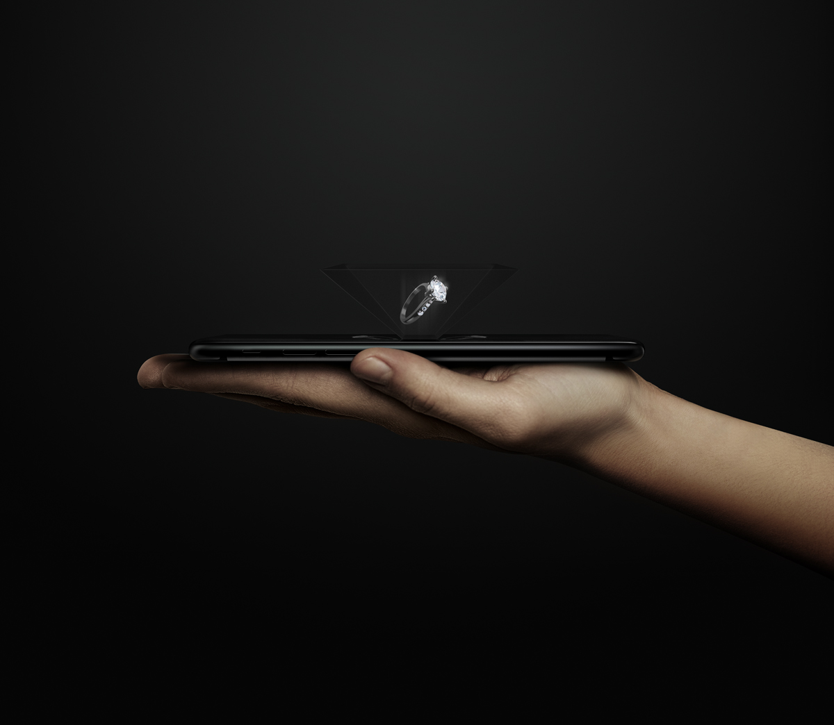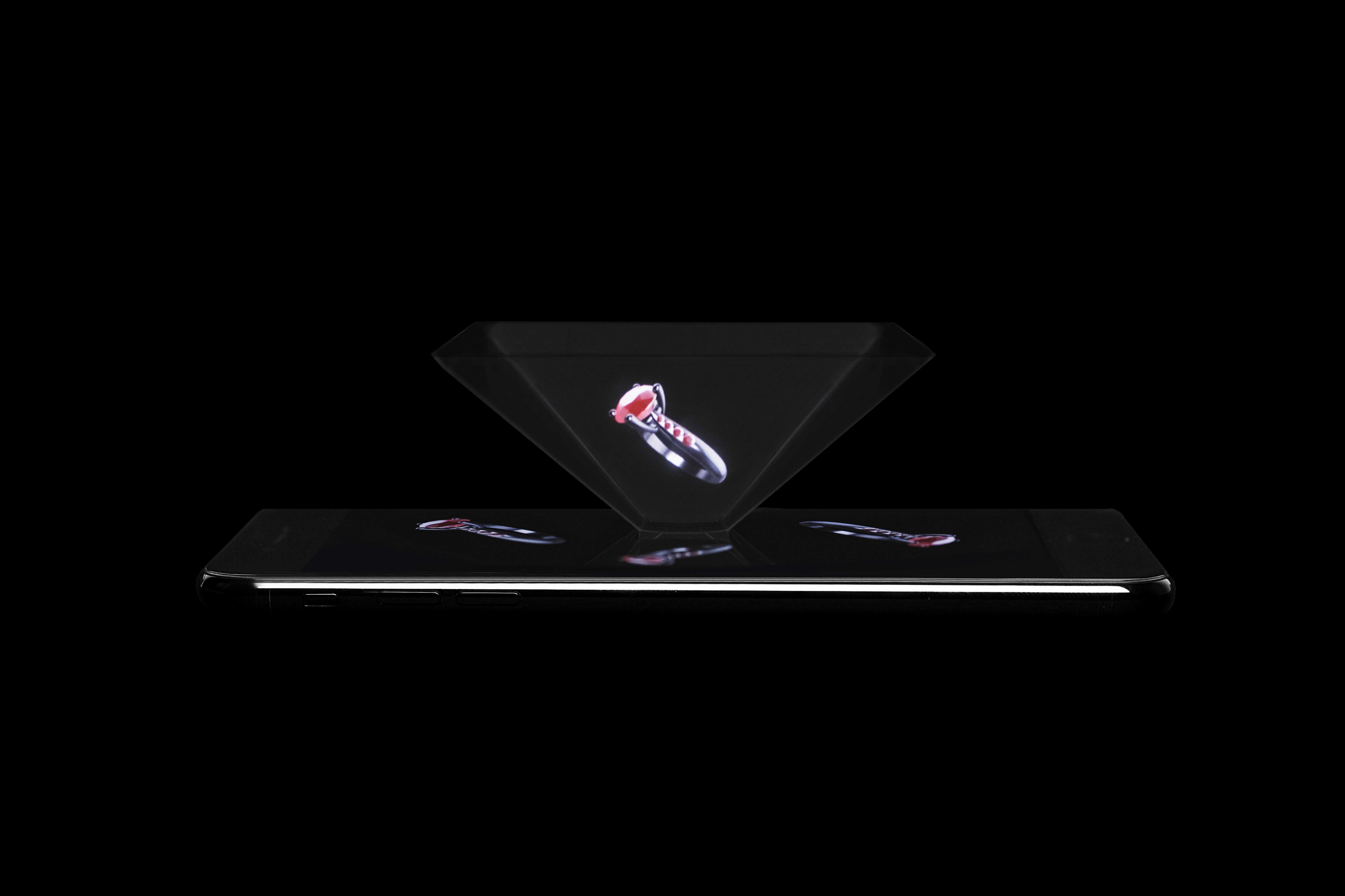 Aujourd’hui ils décident de prendre le pari de l’hologramme. Le client peut lui-même être l’artisan de son bijou en le dessinant. Il recoit chez lui un cône de projection holographique et une cire de la bague, le tout accompagné d’un lien pour consulter la vidéo via SMS. Il suffit ensuite de positionner le cône au centre de son smartphone et d’appuyer sur Play pour lire la vidéo et découvrir sa bague et se projeter avec le bijou en estimant le volume, le sertissage et la forme de sa bague.