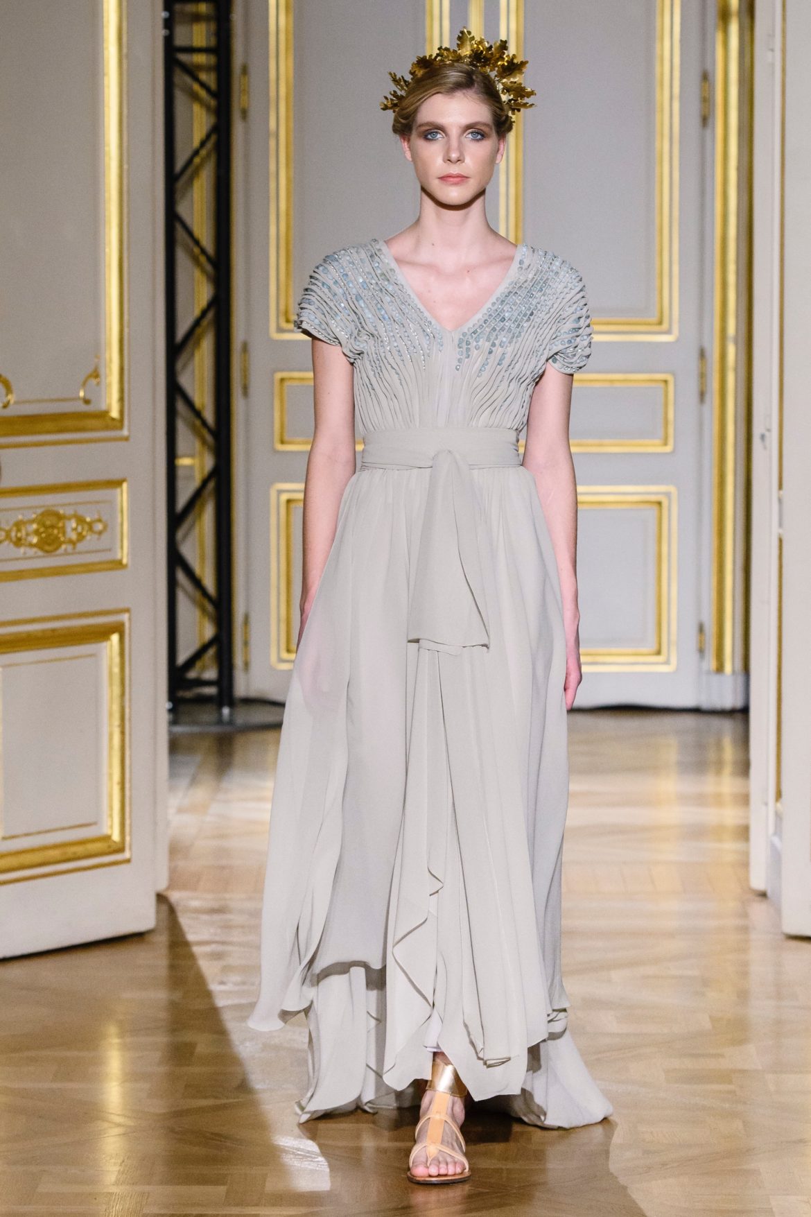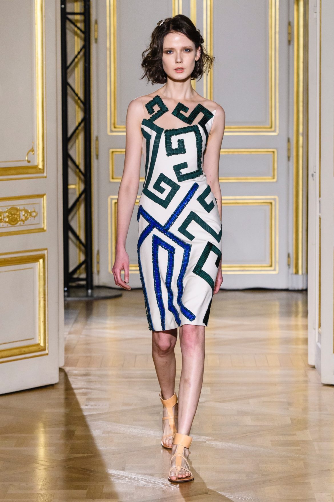 L’inspiration de la collection est basée sur le récit de voyages d’une femme forte. Il commence avec la naissance d’Olympias à Pasaronas, une ancienne ville d’Épire. Les serpents domestiques sont faits de peaux, brodés avec des émaux faits à la main ou représentés sur des vêtements avec des Swarovski. Les sandales de la collection sont traditionnellement faites à la main, fabriquées par Laskaris. L’emblème de l’Épire, un chêne, donne sa couleur verte pour marquer la collection qui est également composée d’ivoire, de pastel et de quelques pointes de noir.
