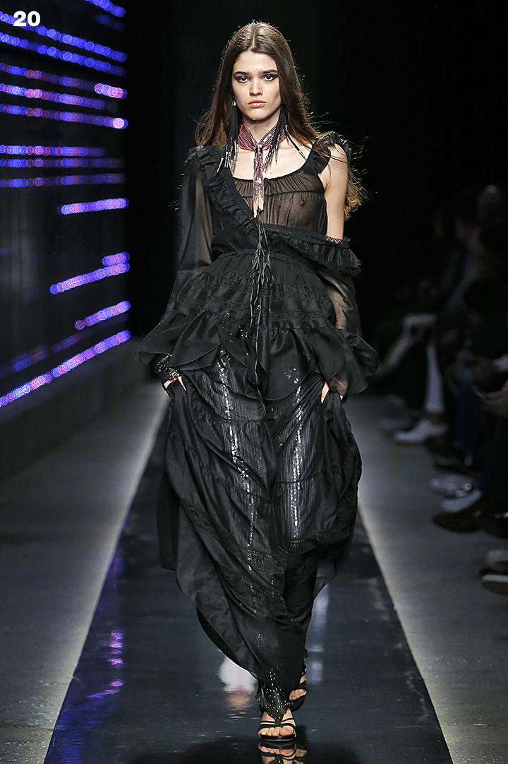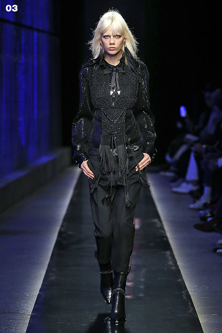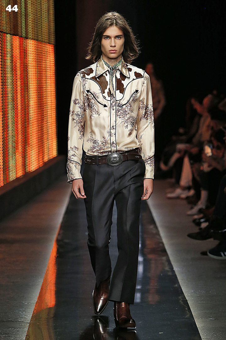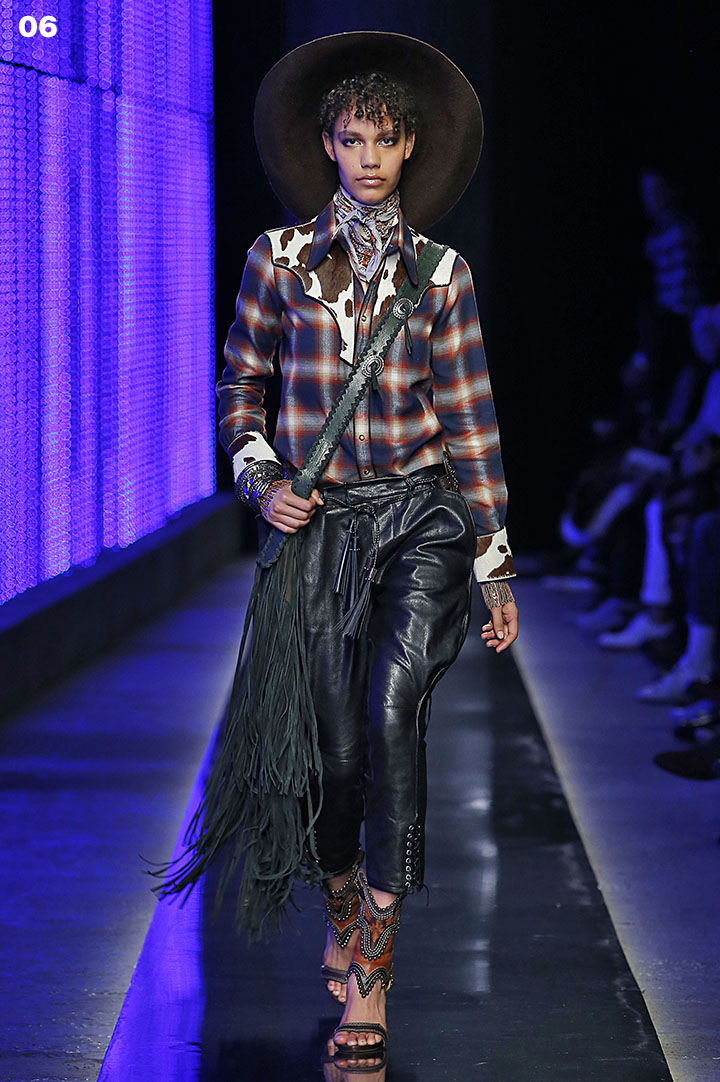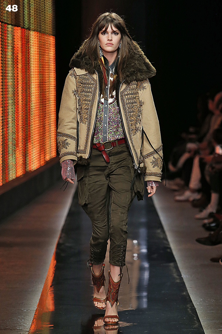 Eblouissante avec des pièces fortes signées Dsquared2, la collection Automne Hiver 2018 ajoute un nouveau chapitre à la création nomade des designers, Dean et Dan Caten.