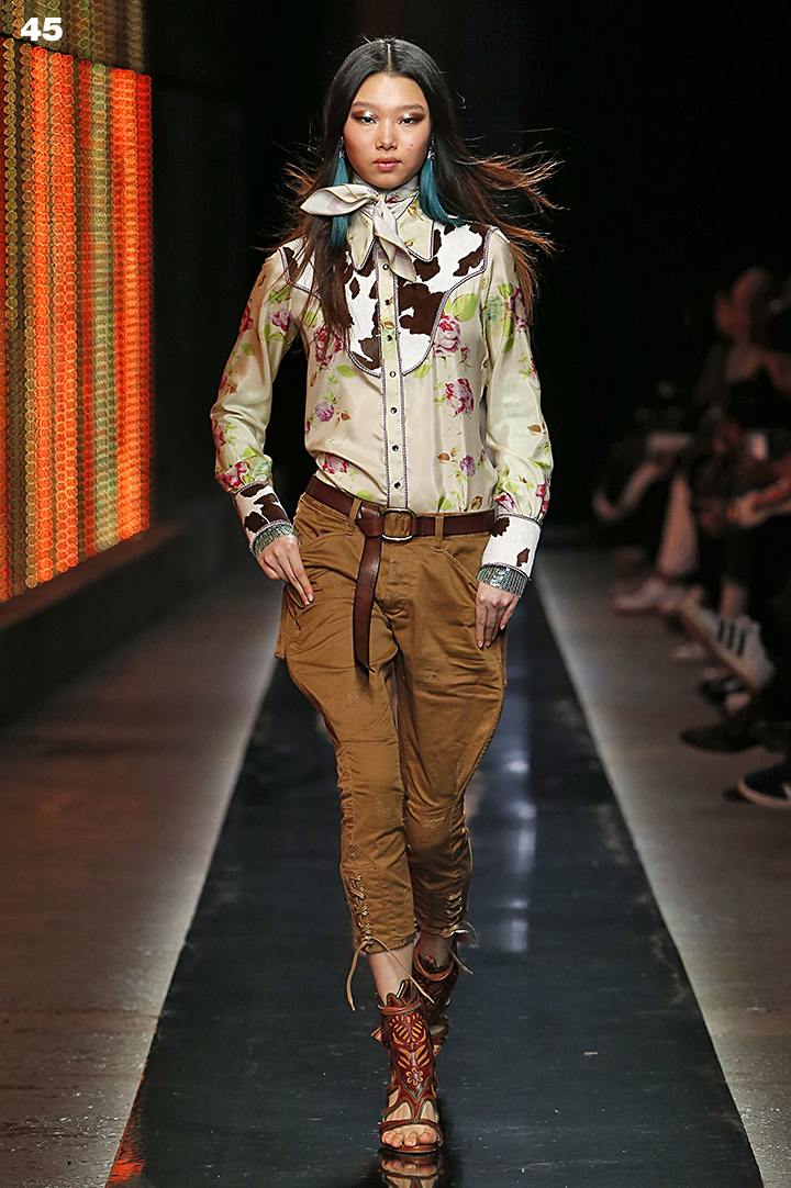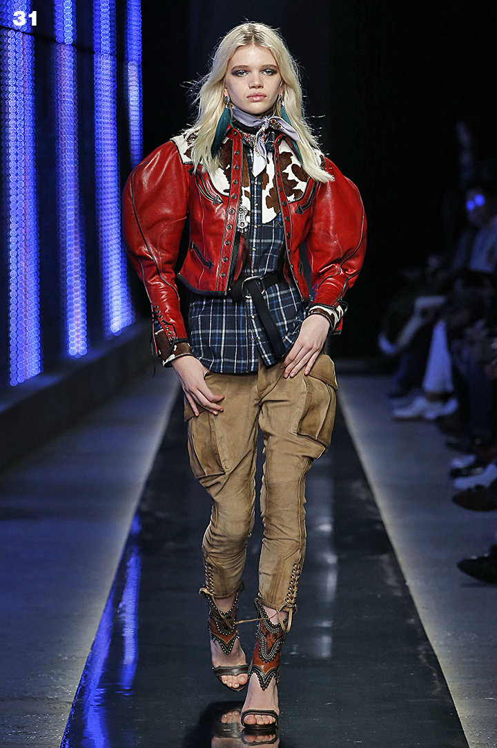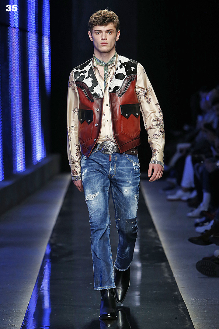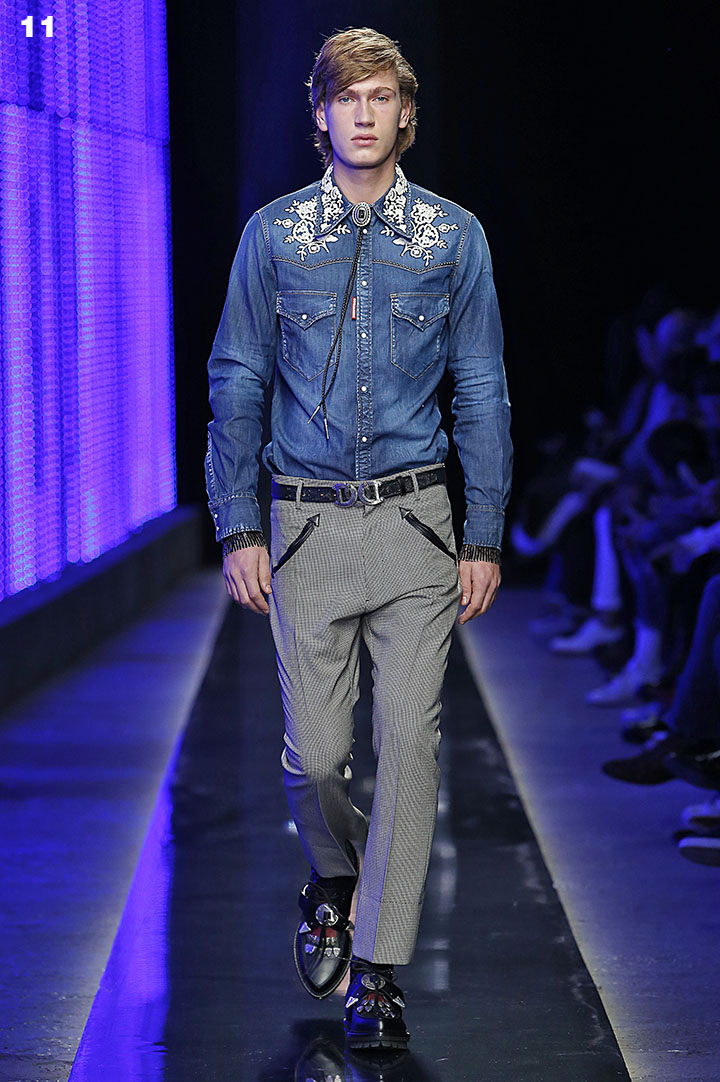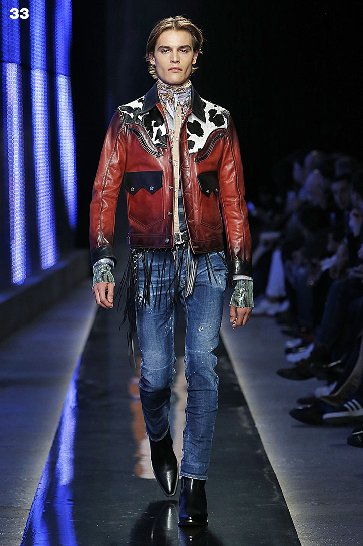 Cette saison, les silhouettes de Dsquared2 quittent le rodéo pour illuminer la ville.