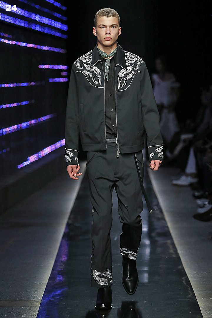 Les jeans, tailleurs et pantalons en cuir arborent une nouvelle silhouette; une taille haute qui s’arrête à la cheville, pour montrer des bottes de cow-boy brodées.