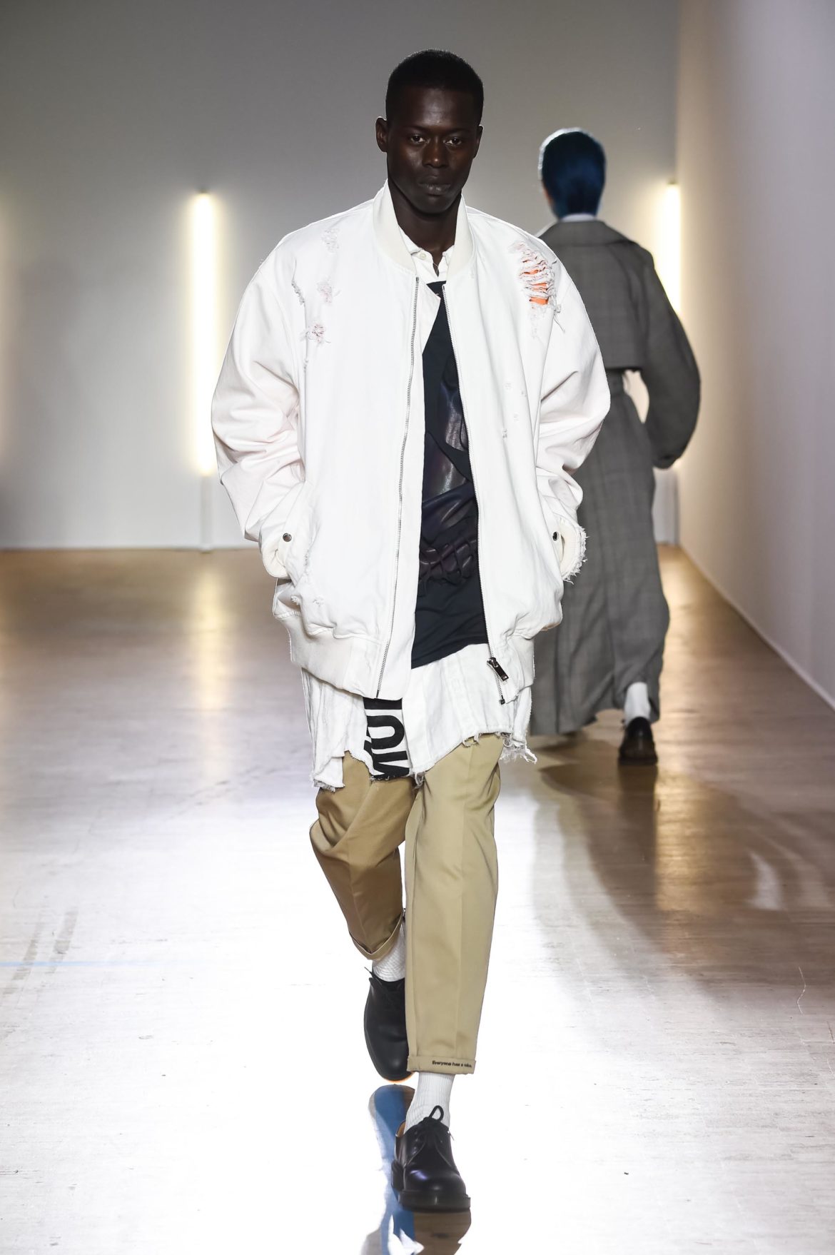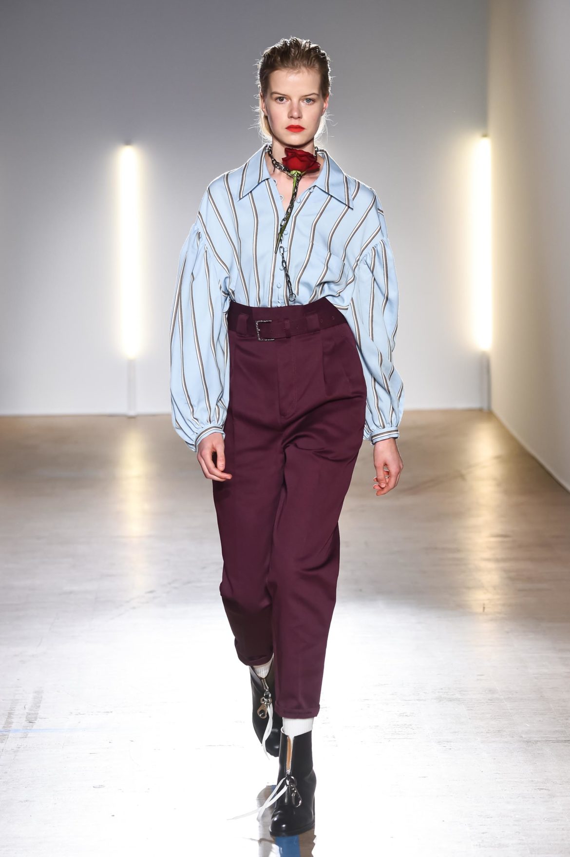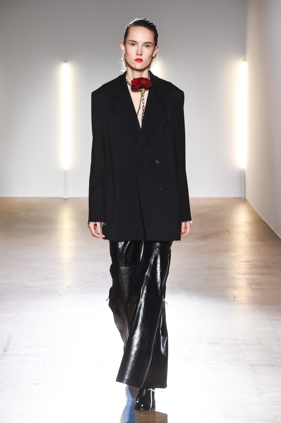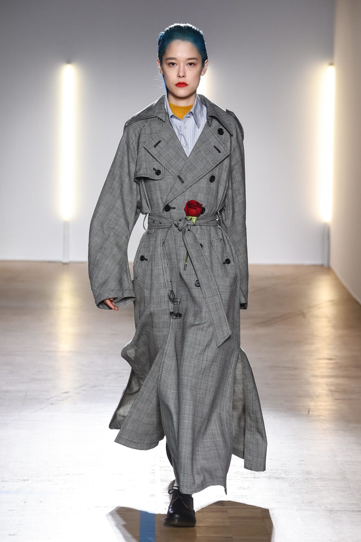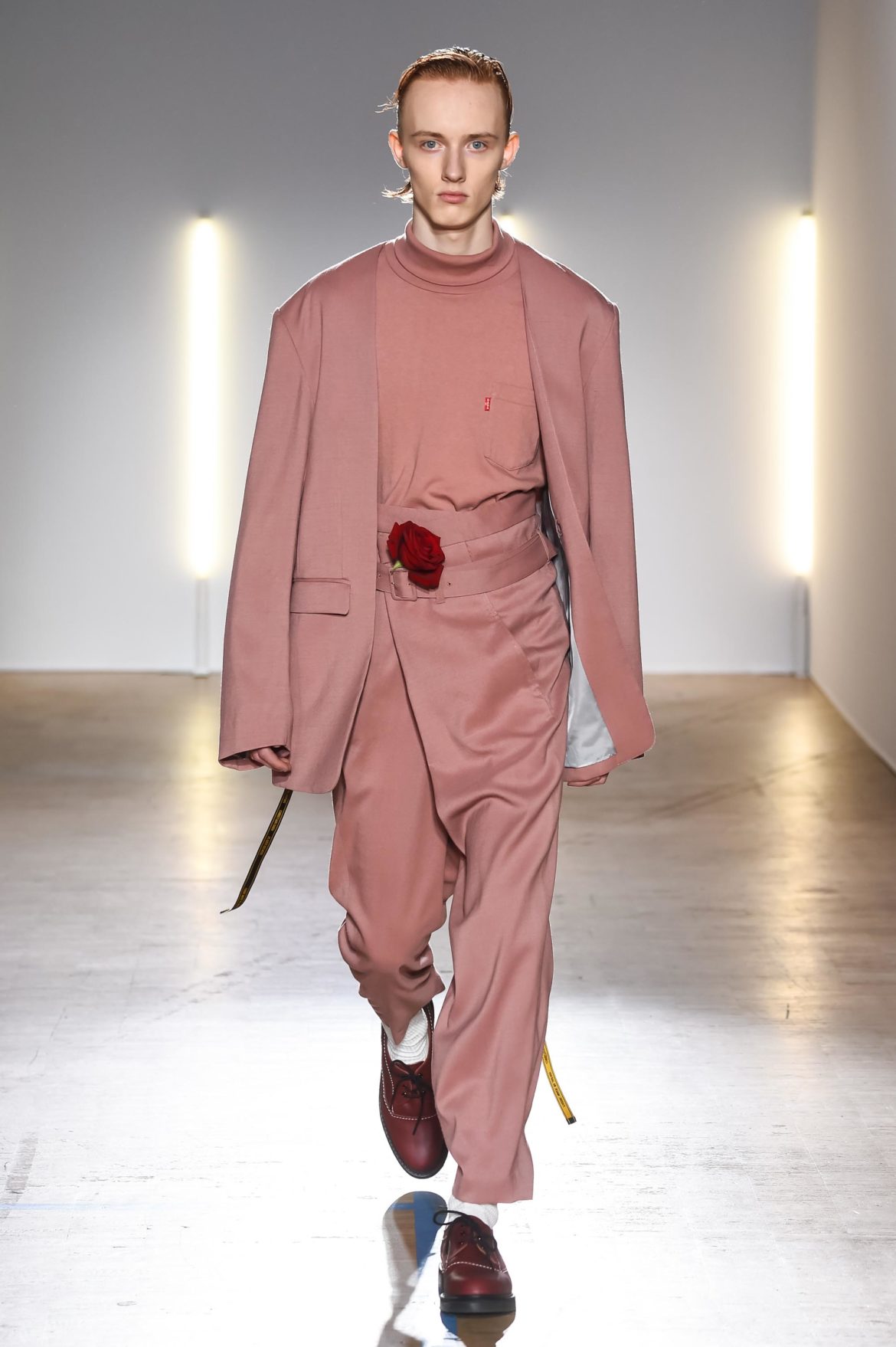 L’œuvre de l’artiste américain a initié nombre des motifs marquants de la collection : un motif de roses rouges brodé sur les blousons de satin ou tricoté sur des pulls reprend le graphisme d’une affiche du film Blue Velvet. Développant toujours un vocabulaire esthétique personnel, Masanori Morikawa mixe les influences du vestiaire asiatique avec les classiques d’une garde-robe occidentale. Les vestes de tailleurs sont coupées avec des cols de kimonos et les larges pantalons se drapent sur le devant dans un geste élégant empreint d’un chic ethnique.
