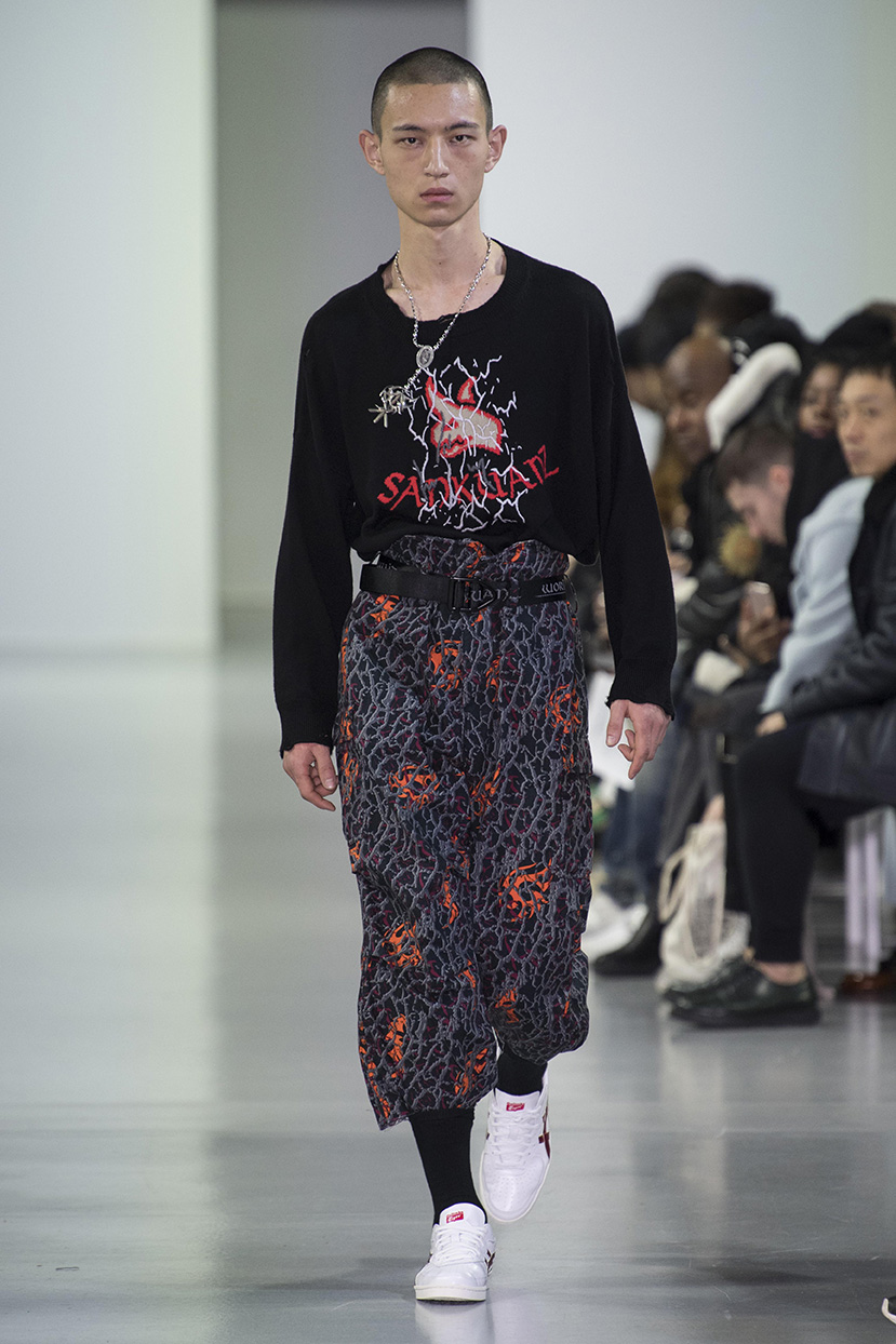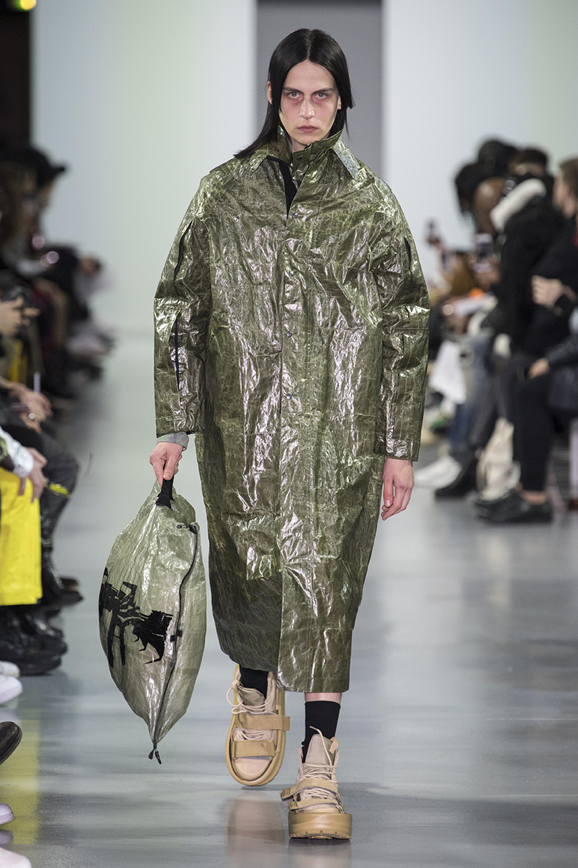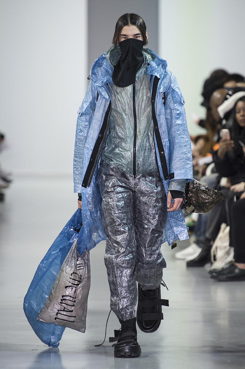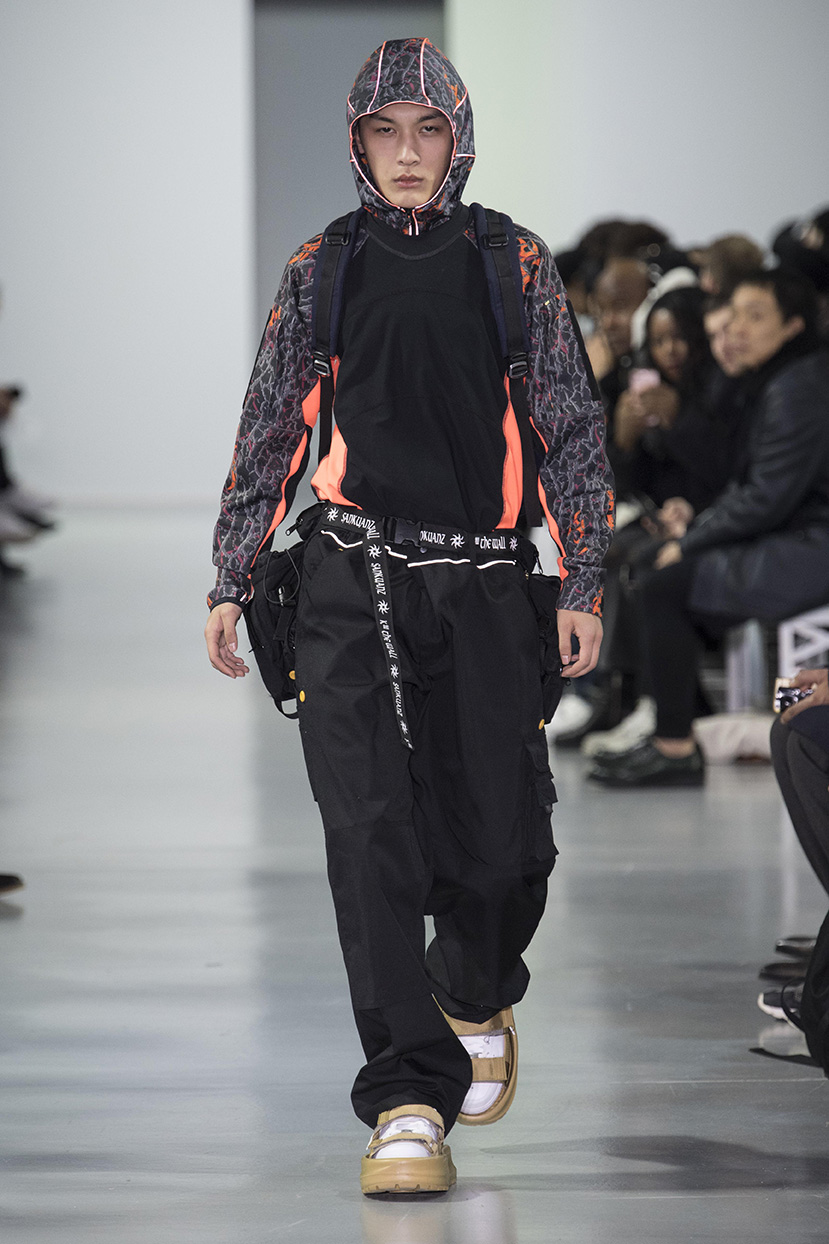 Un fort accent technologique enrichi cette saison le style aux accents militaires et utilitaires de Shangguan Zhe. Avec une collection A/H 2018 recentrée sur des matières techniques innovantes et des pièces d’extérieur élaborées, les silhouettes traduisent une forte allure martiale. L’expression du combat personnel que chacun d’entre nous peut mener pour dépasser les obstacles physiques ou abstrait qui nous empêche d’avancer.