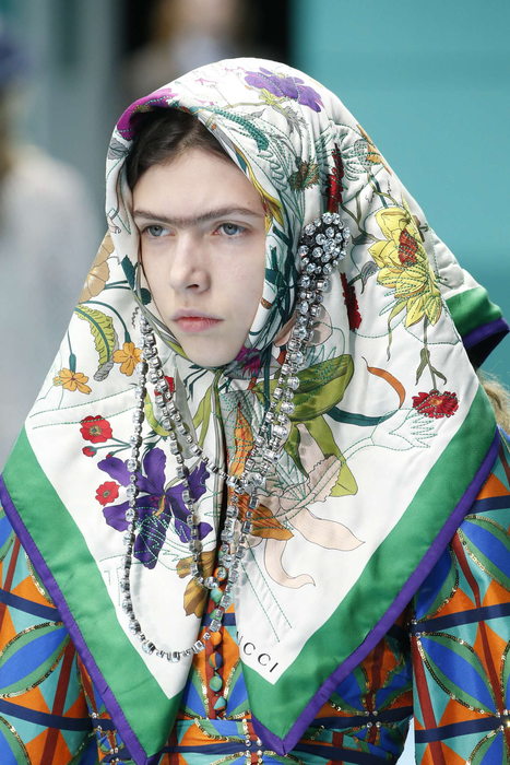 À Milan, les drones, le léopard, le fluo le nylon et les chaussures plate-forme colorent le paysage. Un tableau baroque : une époque ou les référence se mêlent sans que personnes ne crient » oh !Vol culturel ! «
