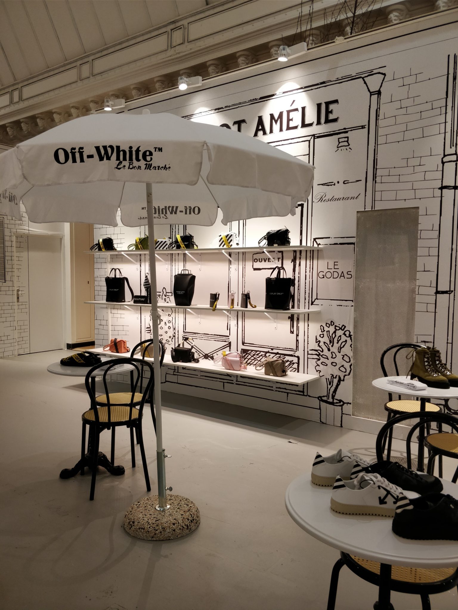Situé au deuxième étage, le label streetwear Off-White c/o Virgil Abloh™, signe « Rive Gauche » et réécrit l’esprit attaché à ce titre avec une scénographie inspirée des rues de Paris, une capsule exclusive et un tout premier café en collaboration avec Wild & the Moon.