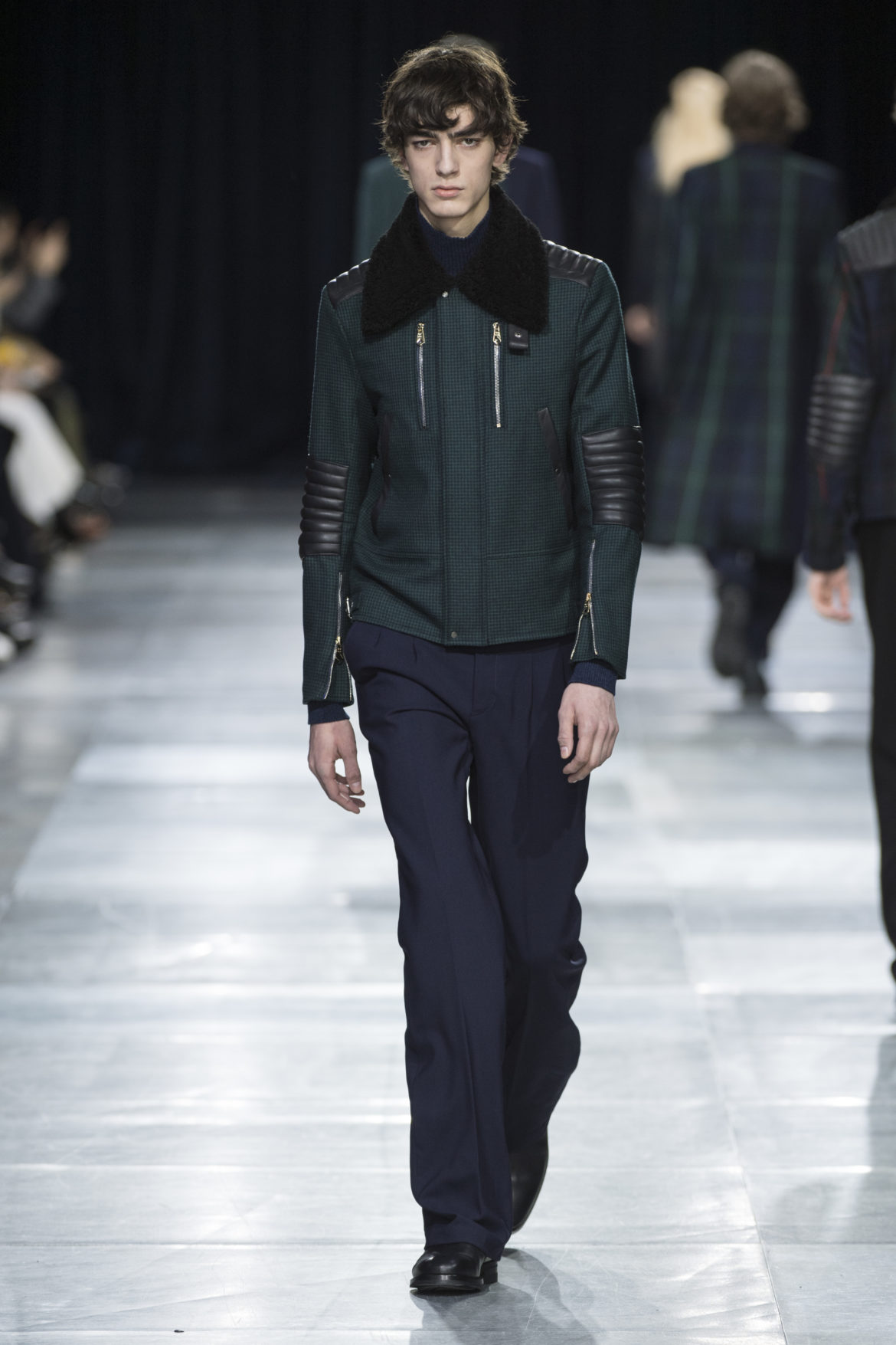 is panelled alongside Prince of Wales check and leather juxtaposed with hardy British tailoring cloths. The
